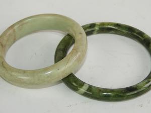 2 jade bangles, 2 1/8" across, 2 1/2" across