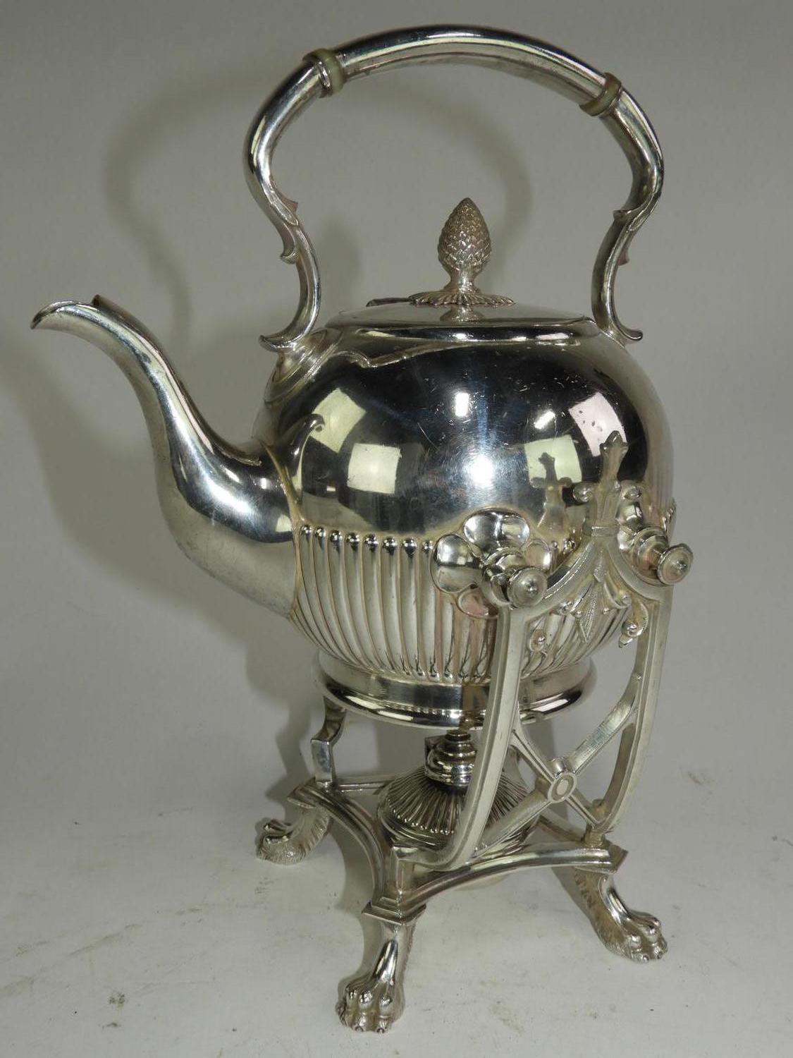 james dixon & sons silver plate tea pot on stand, ht. 11 1/2"