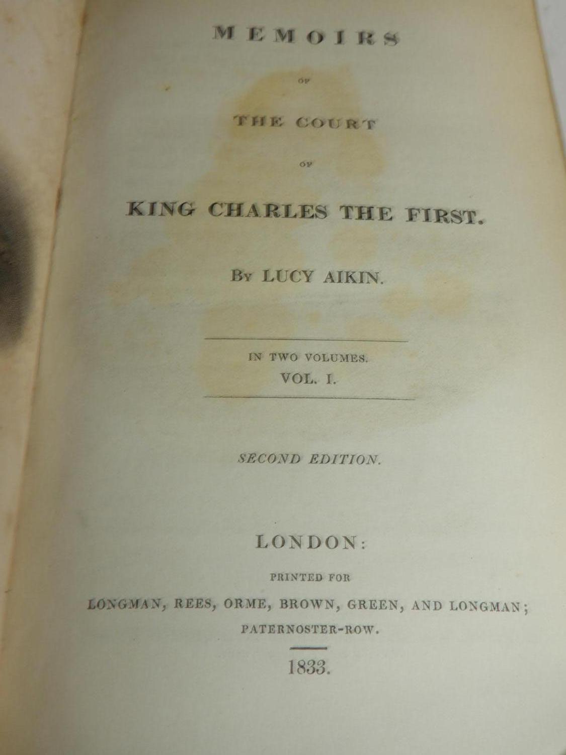 king charles the first, 2 vols, by lucy aikin, 1833, upper canada college presentation set