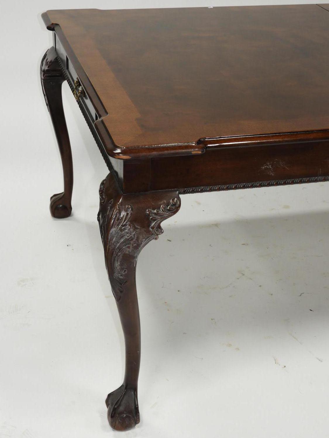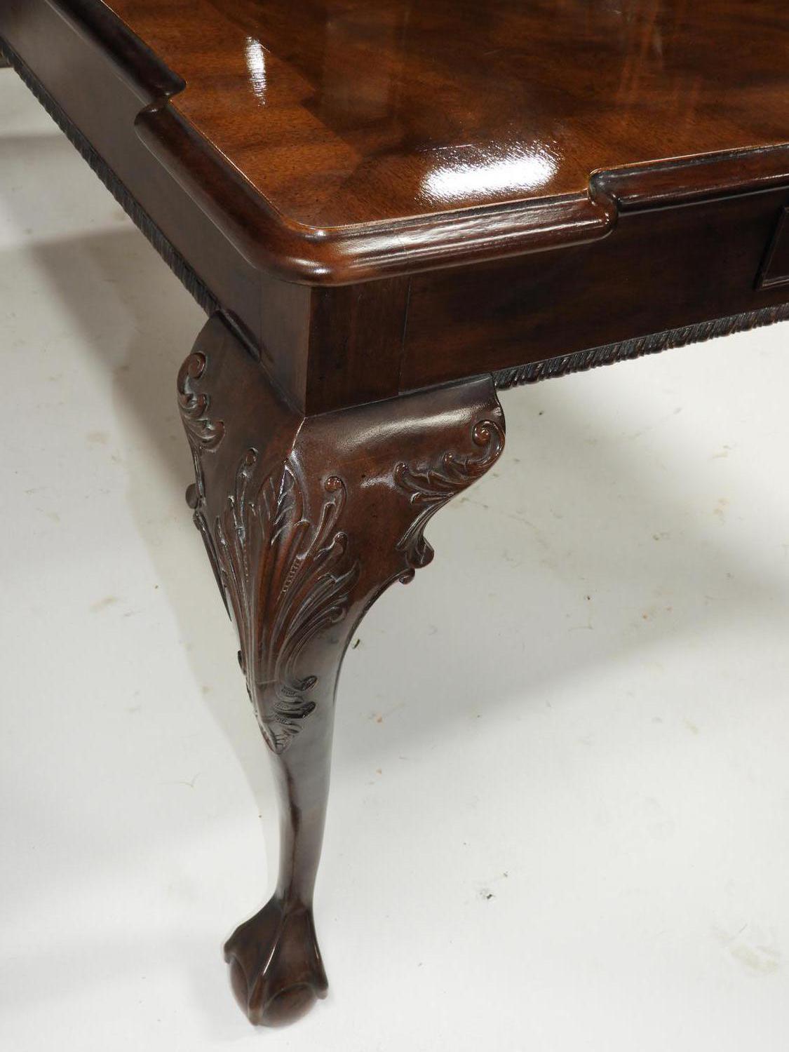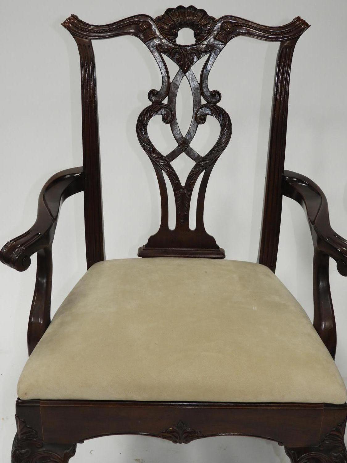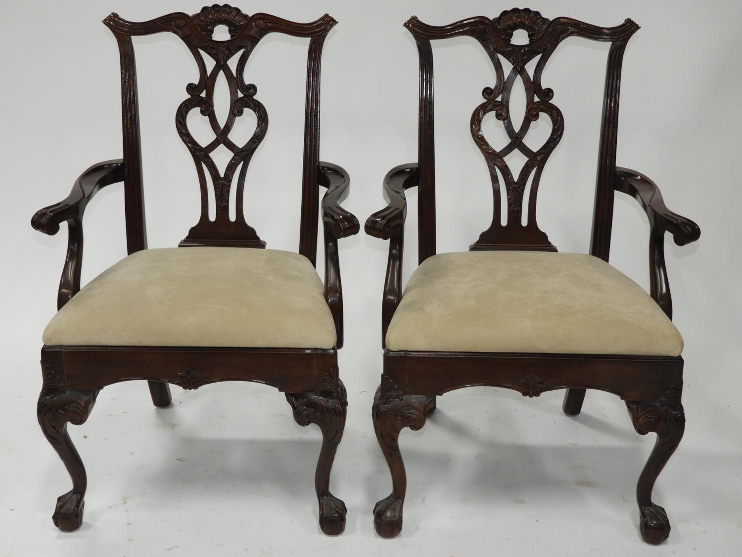chippendale style inlaid mahogany extending dining table with two leaves and ten matching chairs including two armchairs, rittenhouse square by henredon, late 20th century, 30" x 75" x 44"