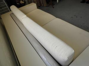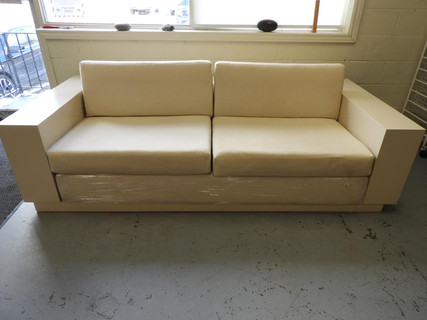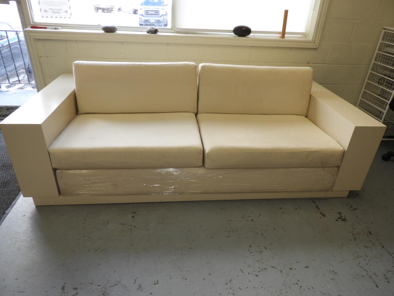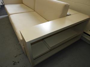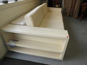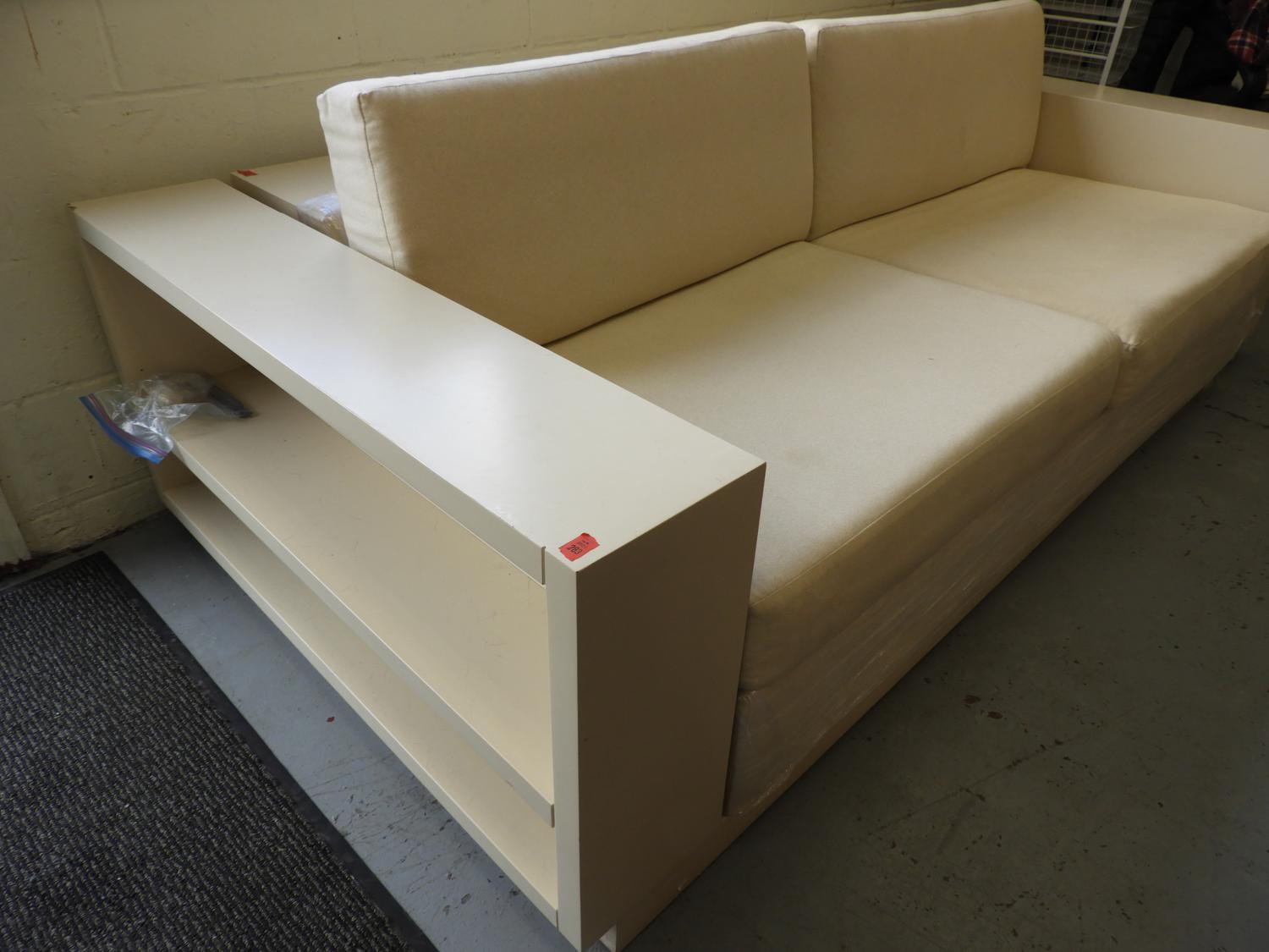 designer modern sofa with bookcase sides and back, 33" x 95" x 45"