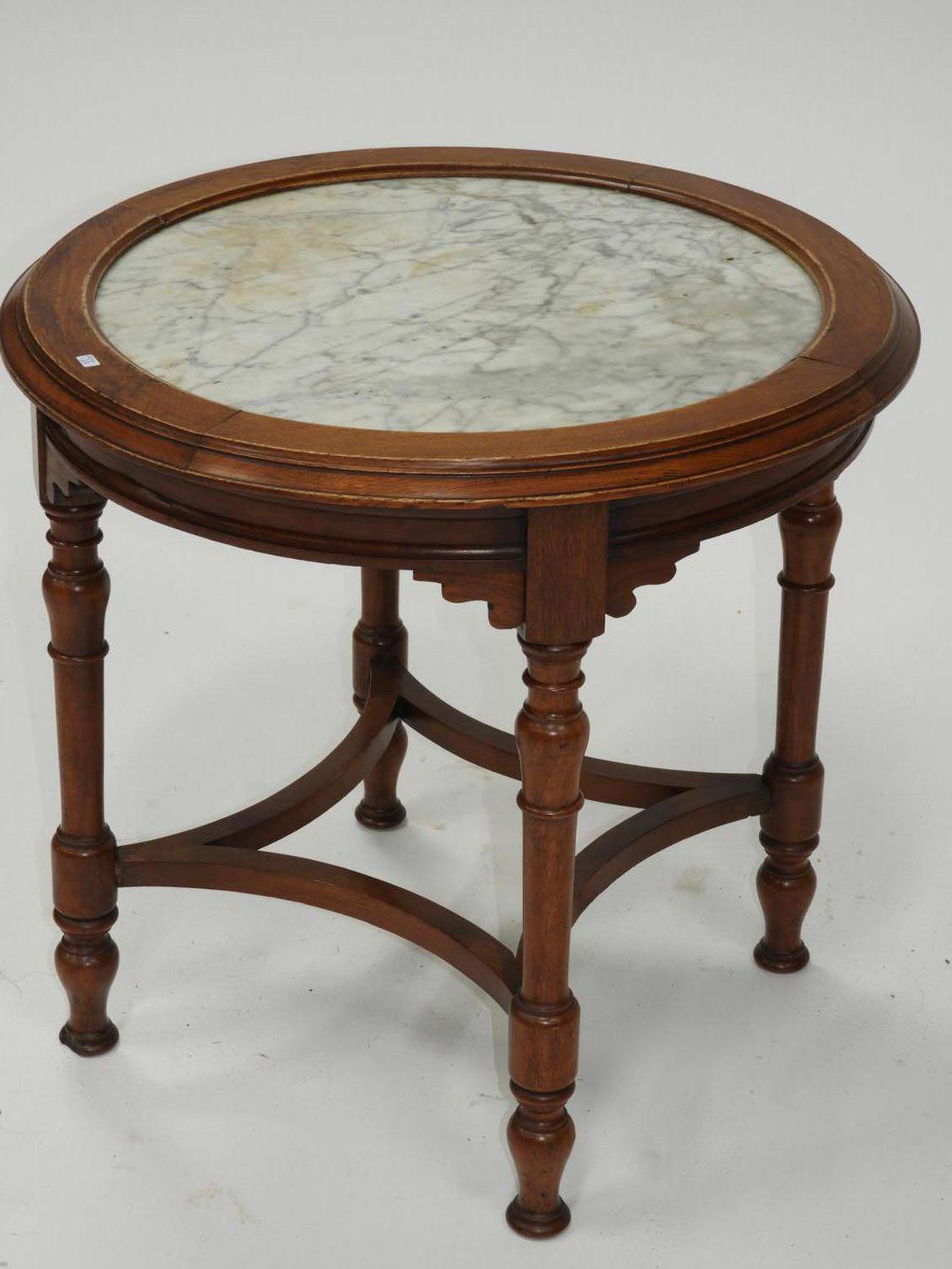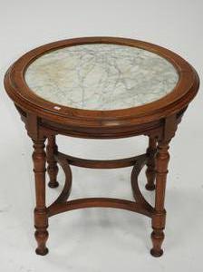 marble inset late 19th century walnut side table, 20 3/4" x 21 3/4"