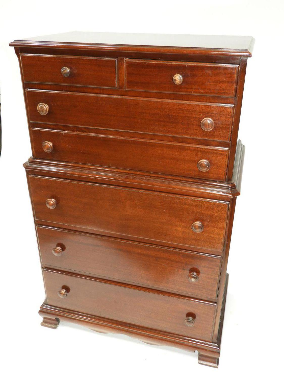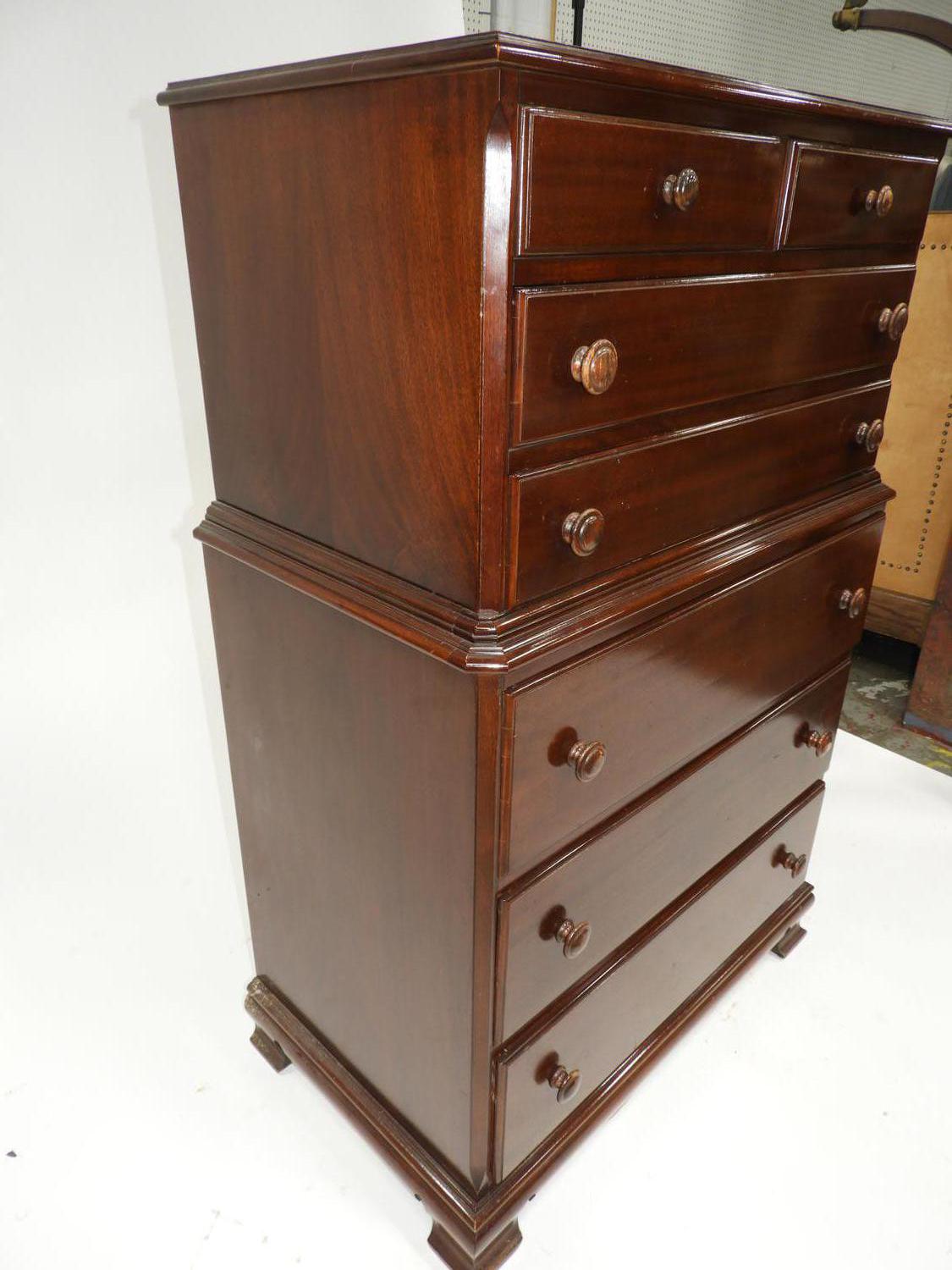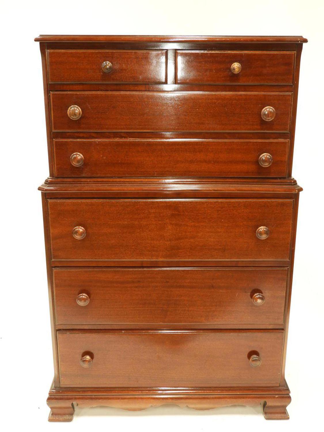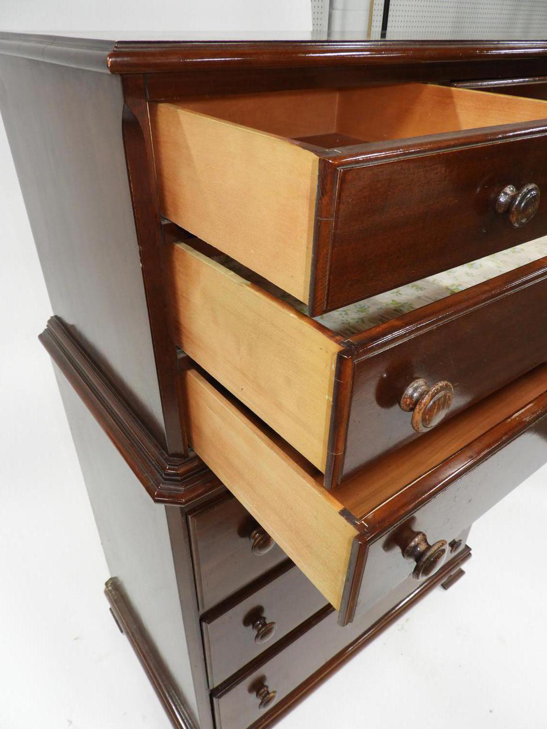 mahogany highboy chest of drawers, c.1920, 53" x 34" x 21"