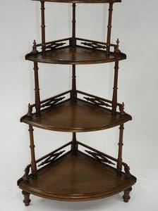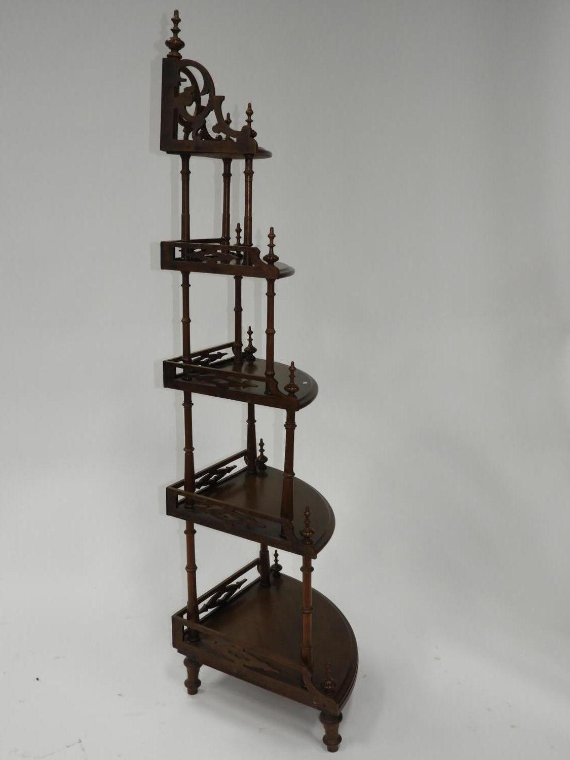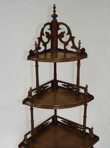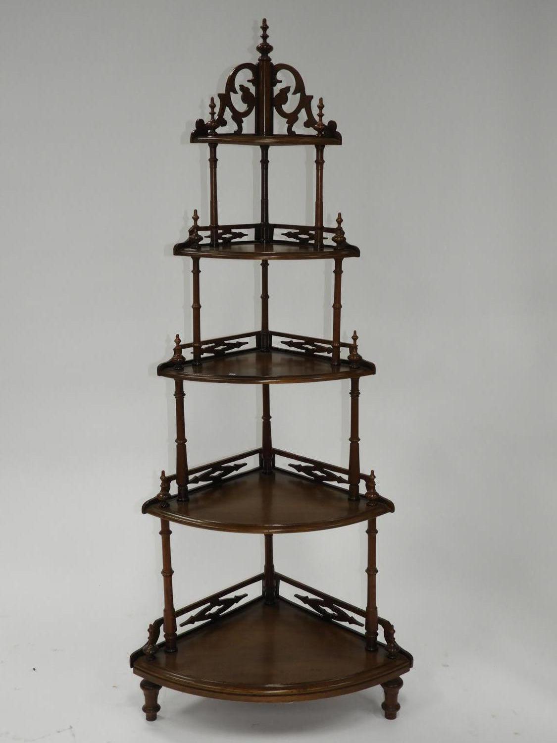 late 19th century walnut finish corner what-not, 70" x 29" x 21"