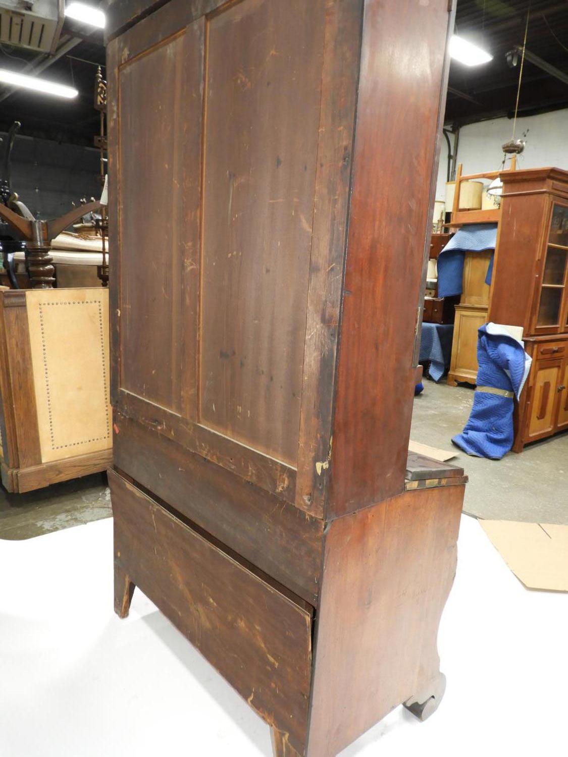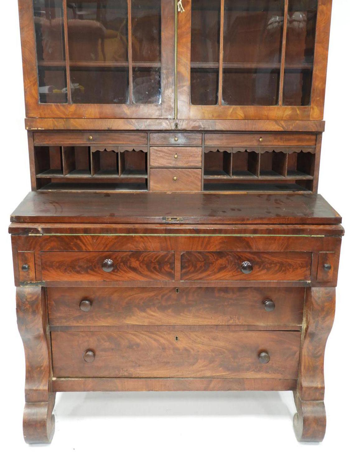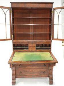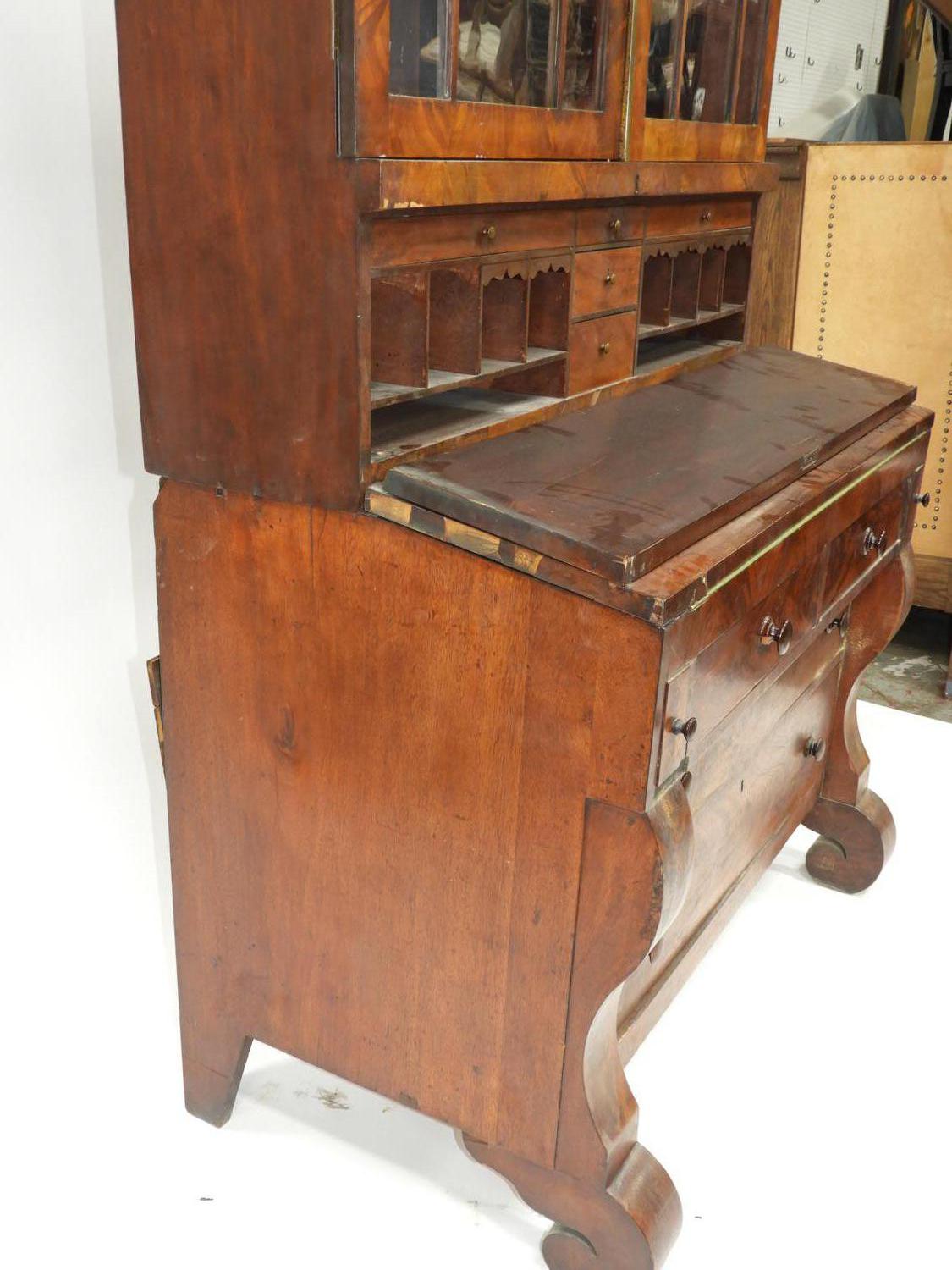 19th century mahogany bureau bookcase with gothic glazed doors, canadian, 87" x 36" x 28"