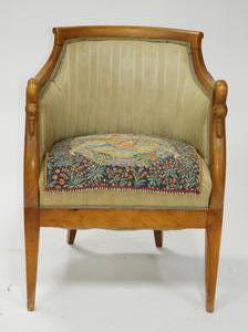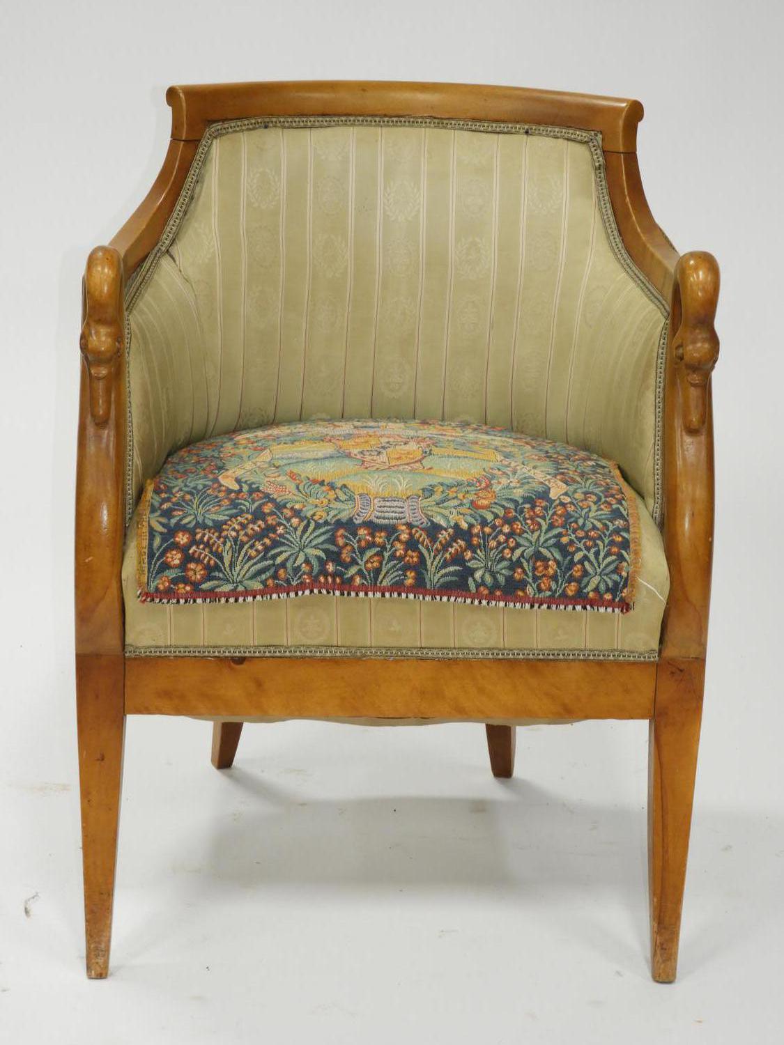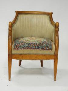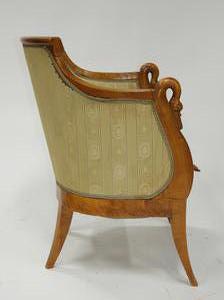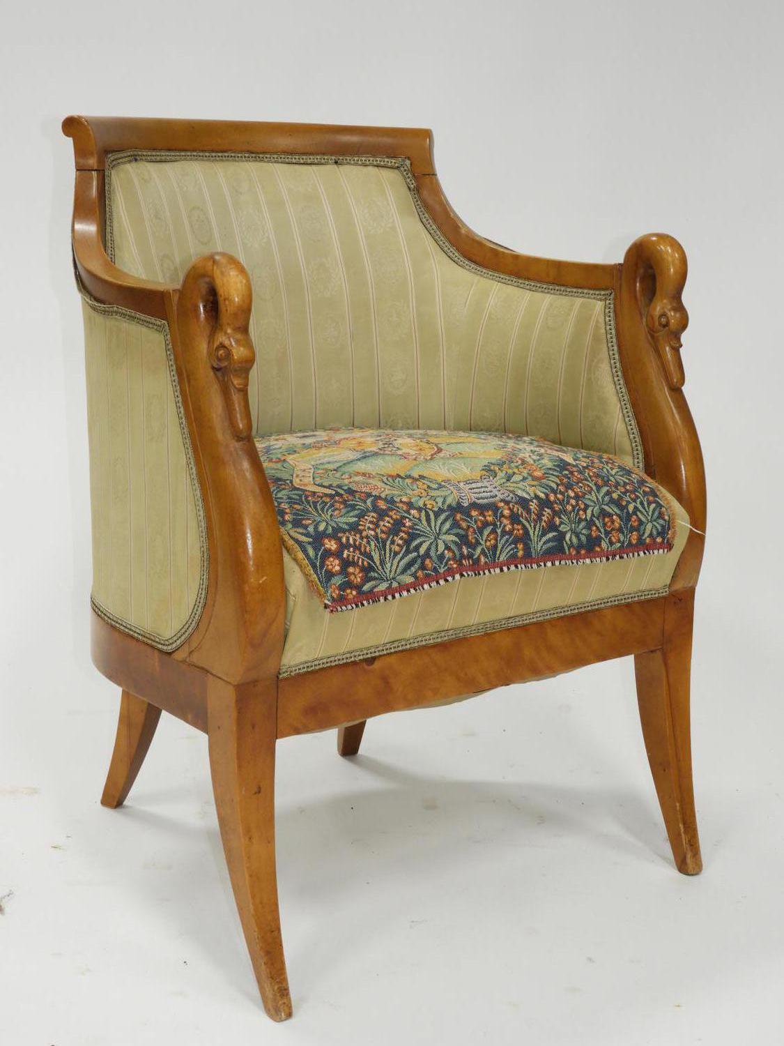 french empire satinwood armchair with swans' head carved arms, mid 19th century