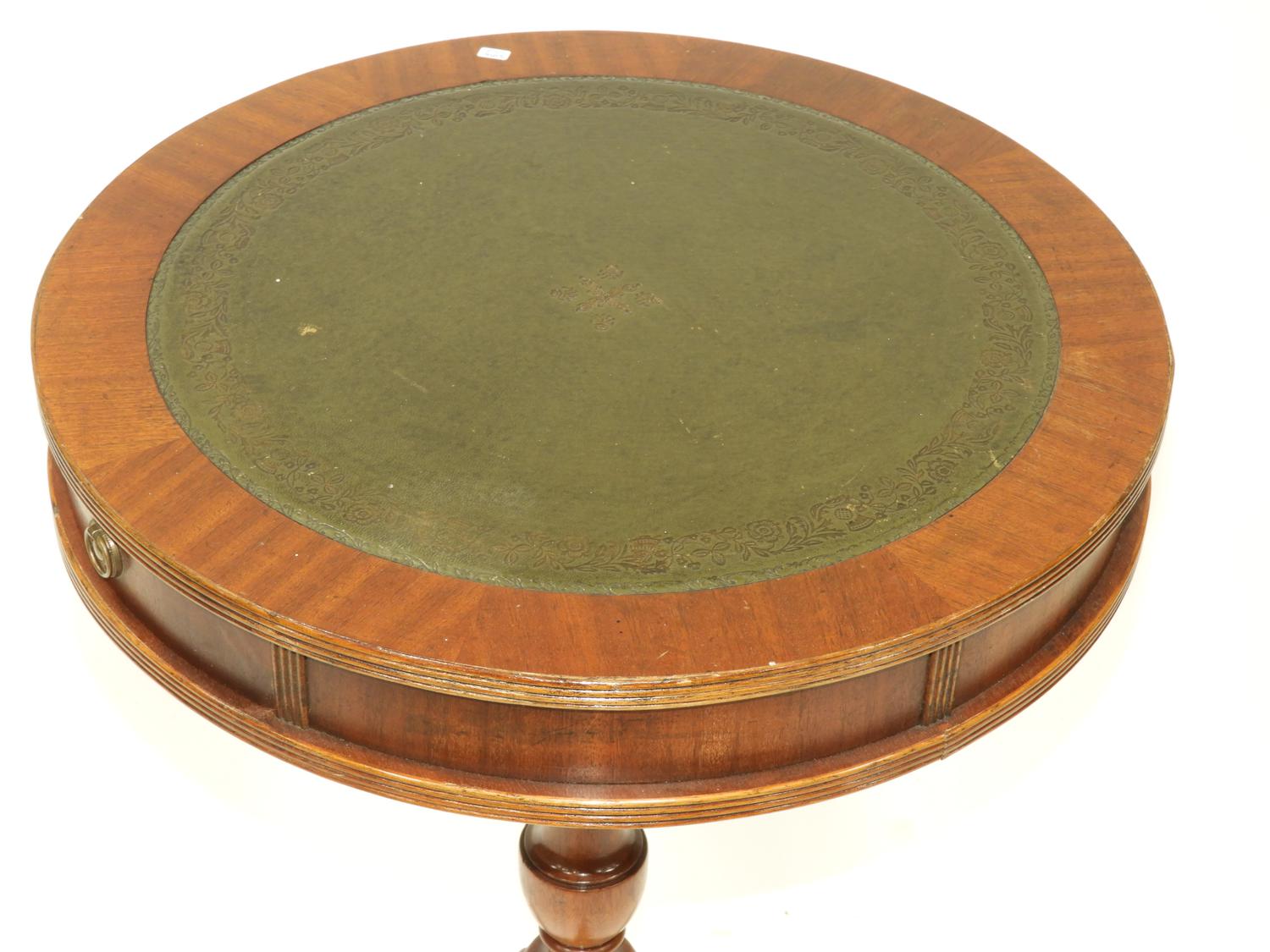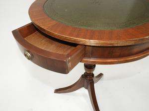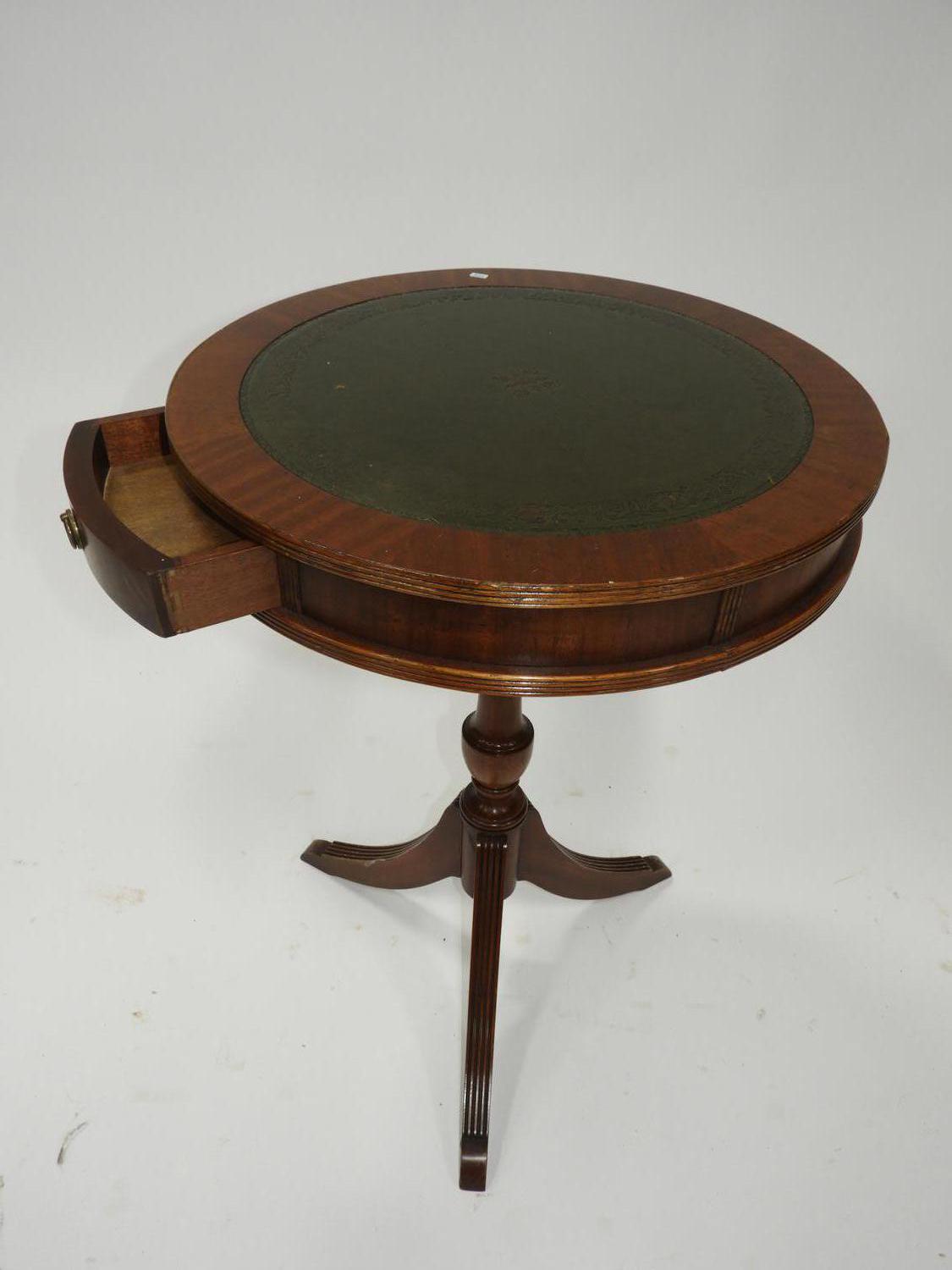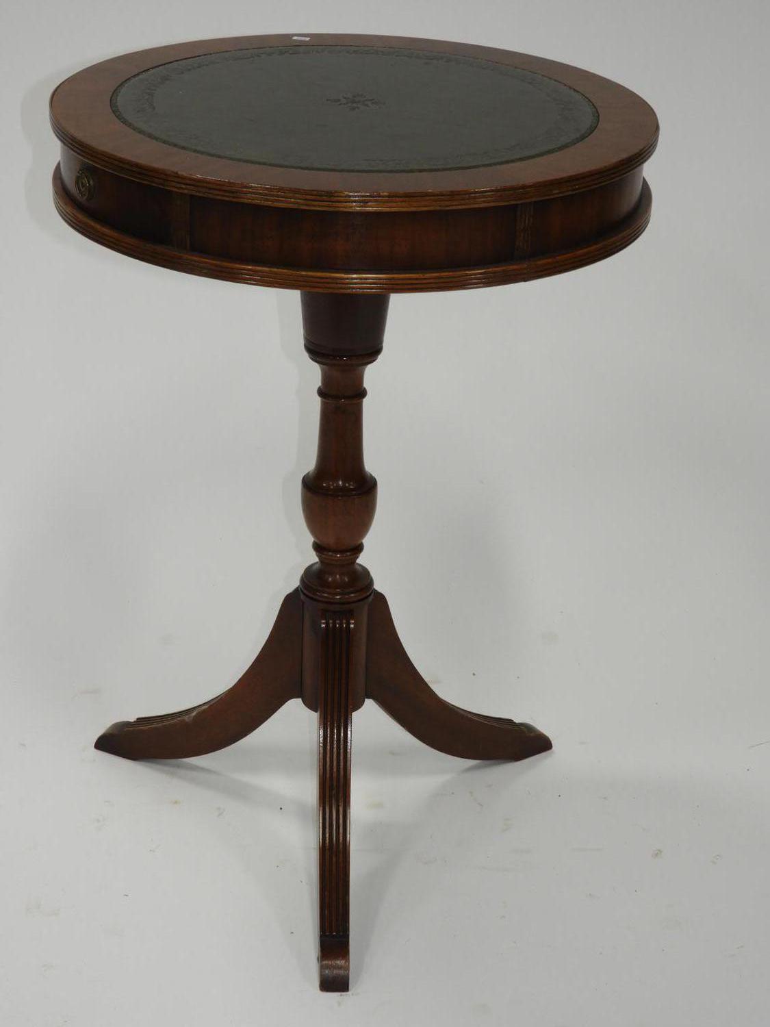 leather inset mahogany finish pedestal table, mid 20th century, 28 1/2" x 20"
