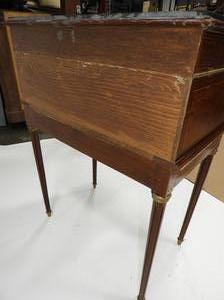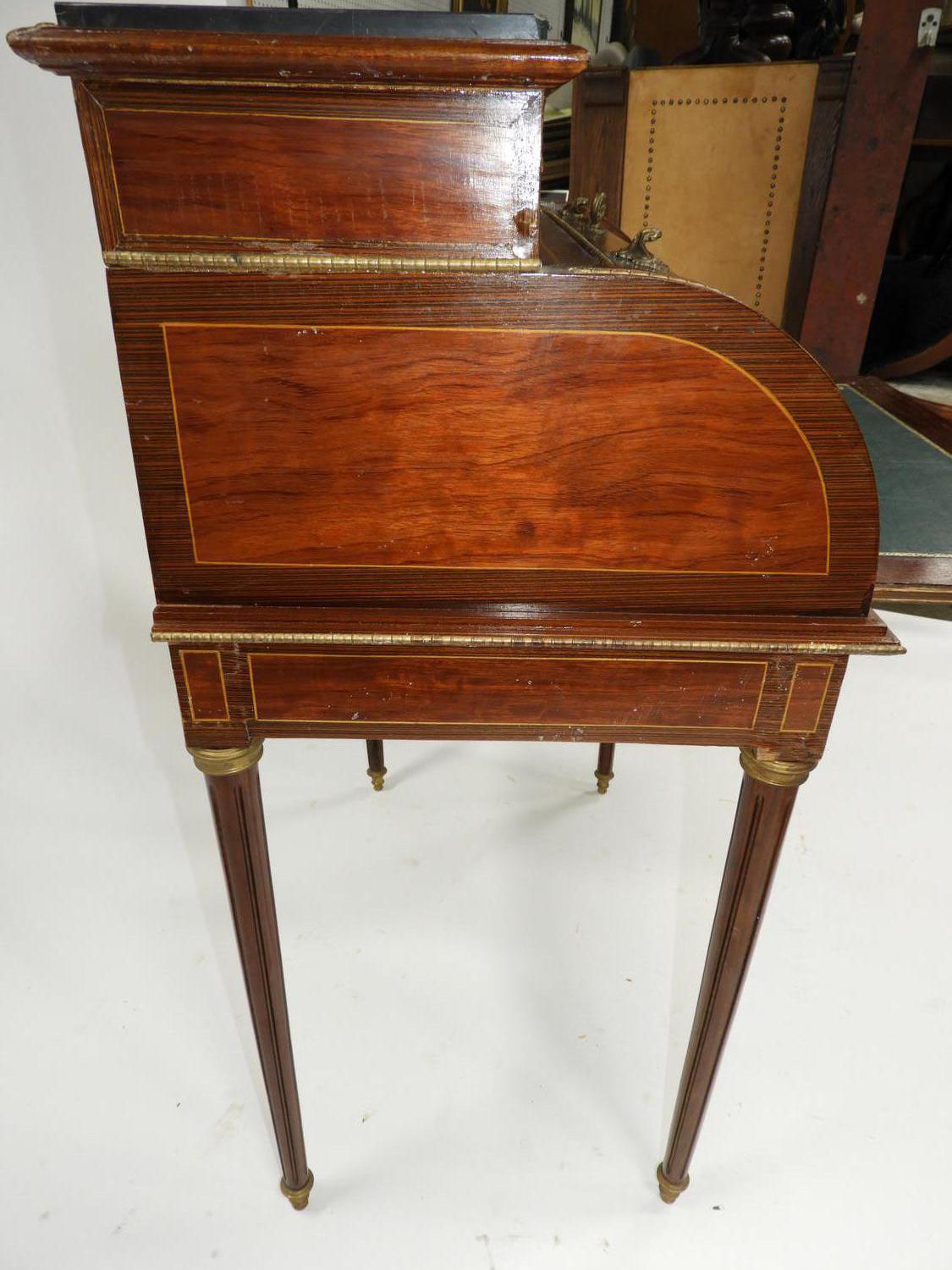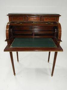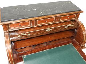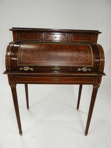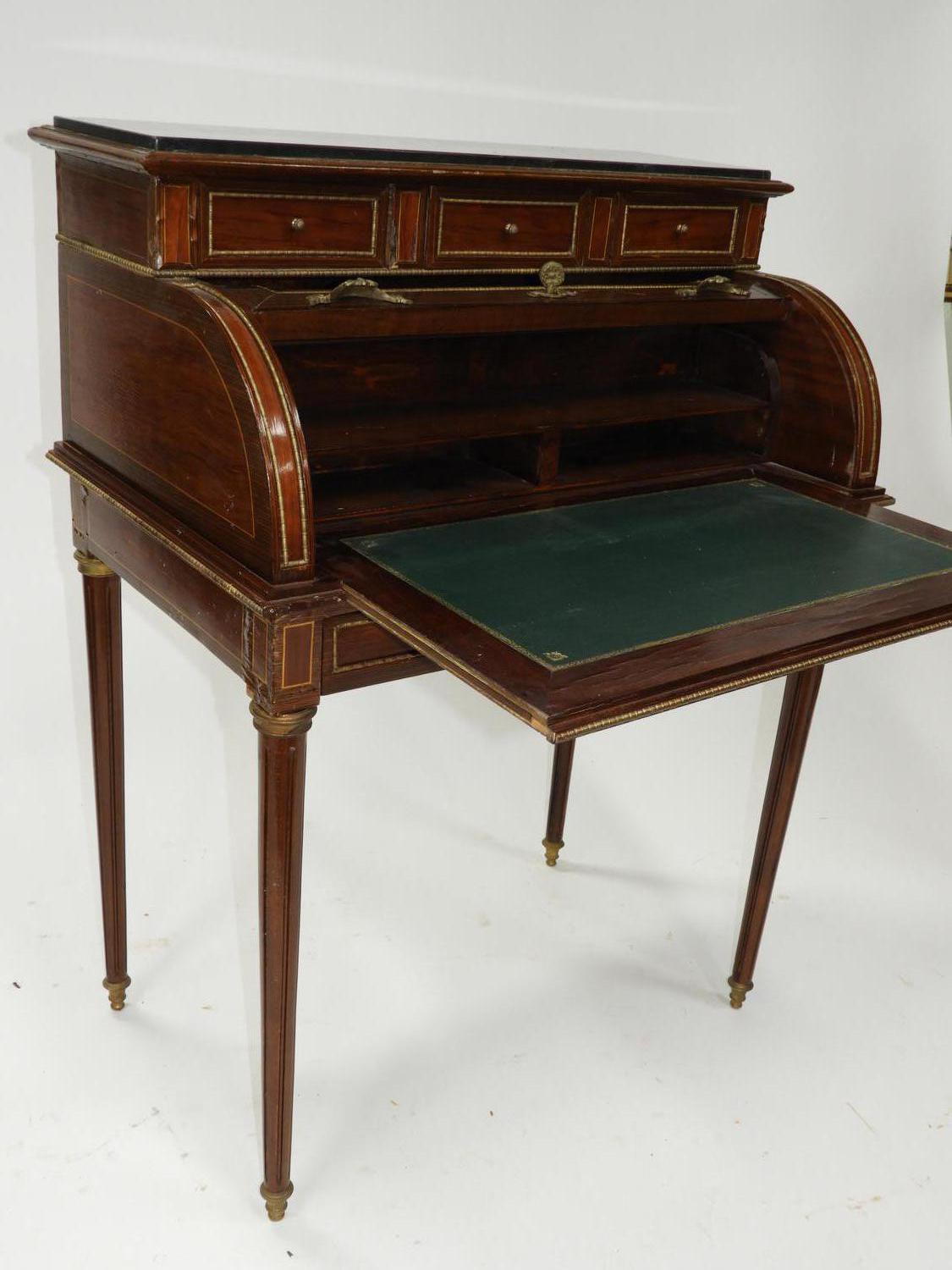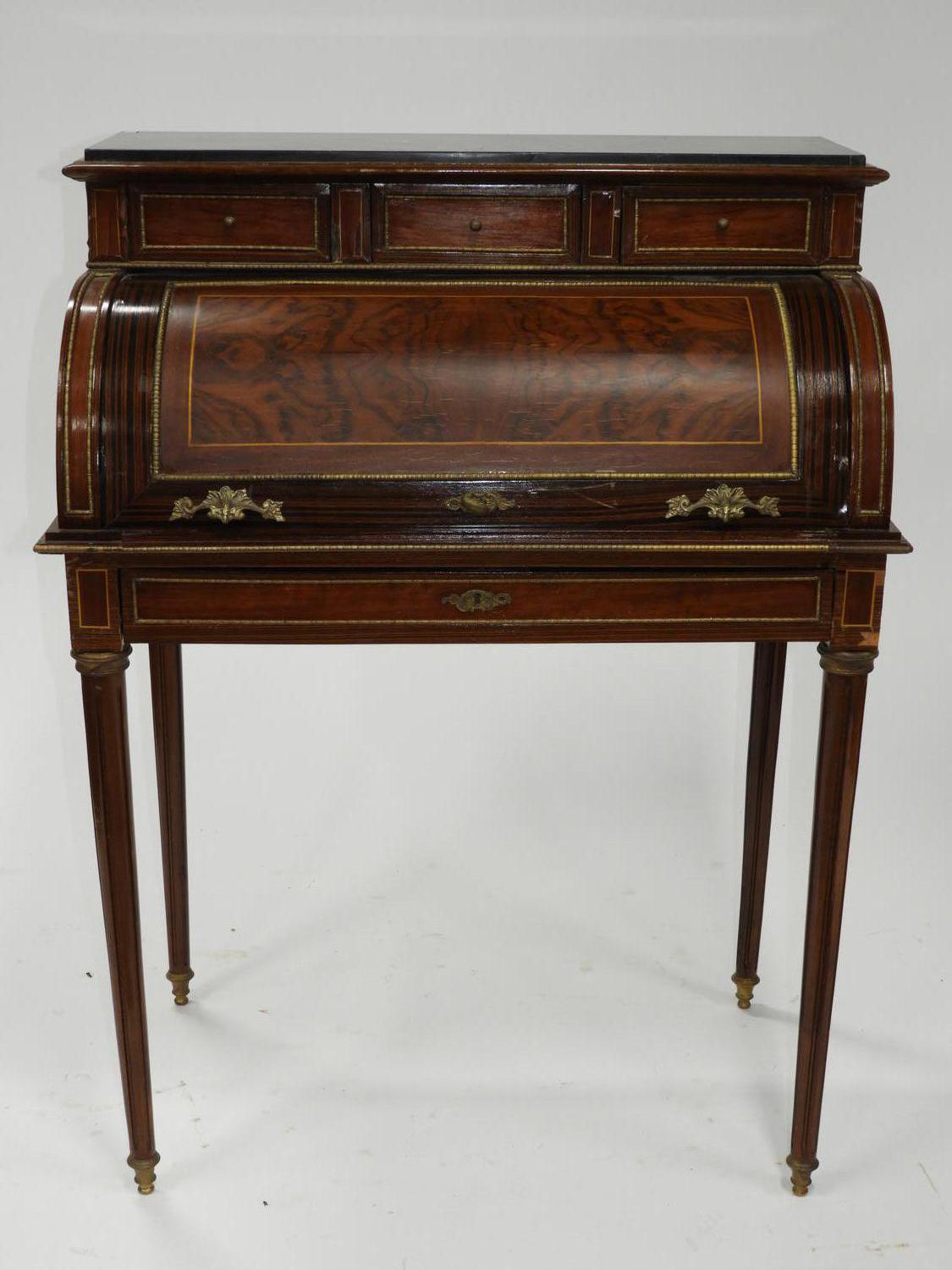 louis xvi style rosewood and walnut ormolu mounted crylindircal writing desk, 20th century, 44 1/2" x 34 1/2" x 20"