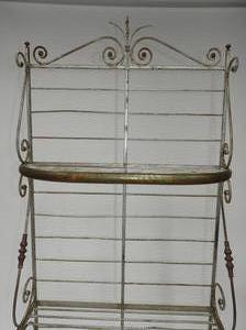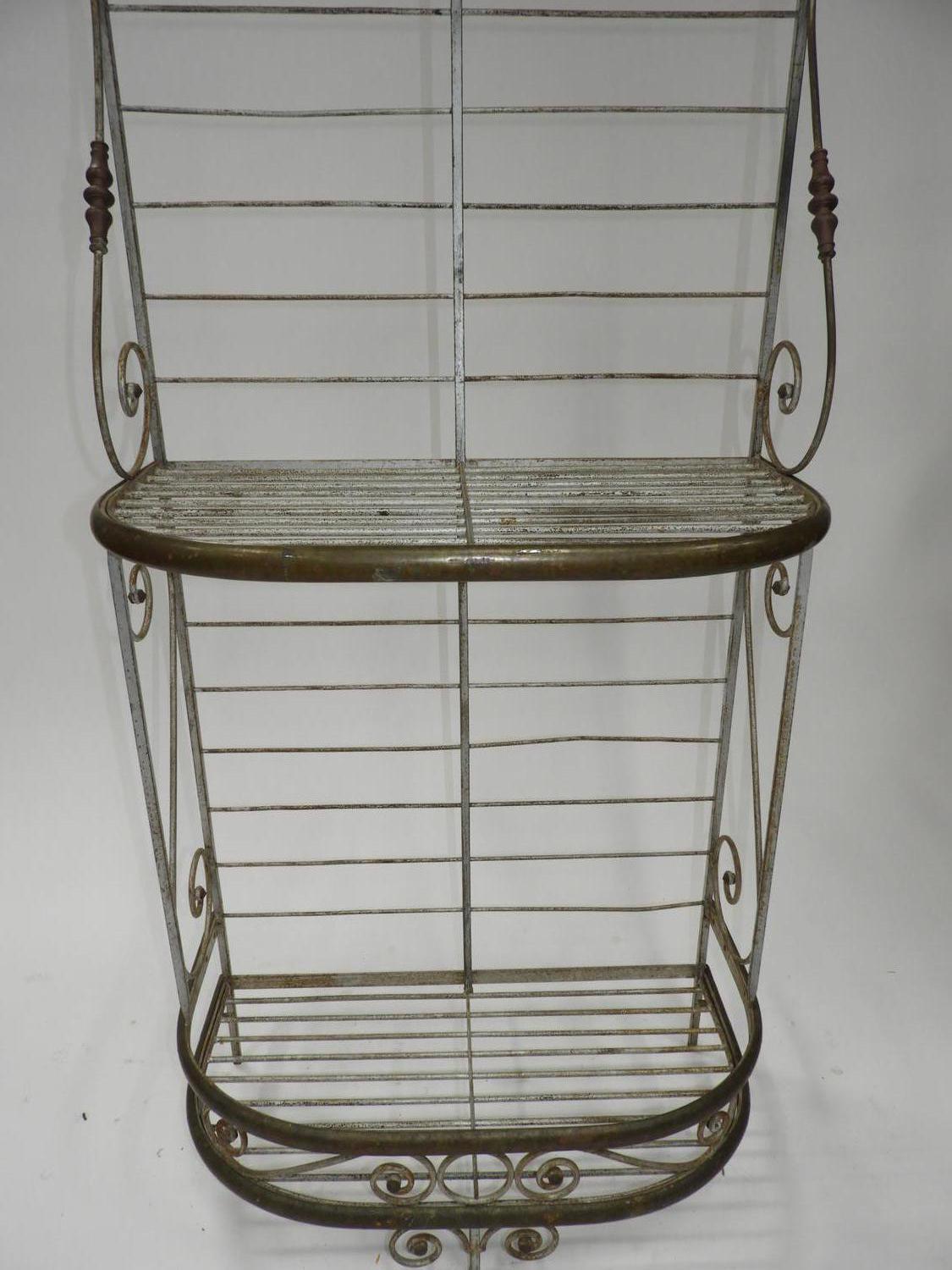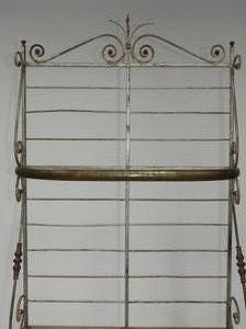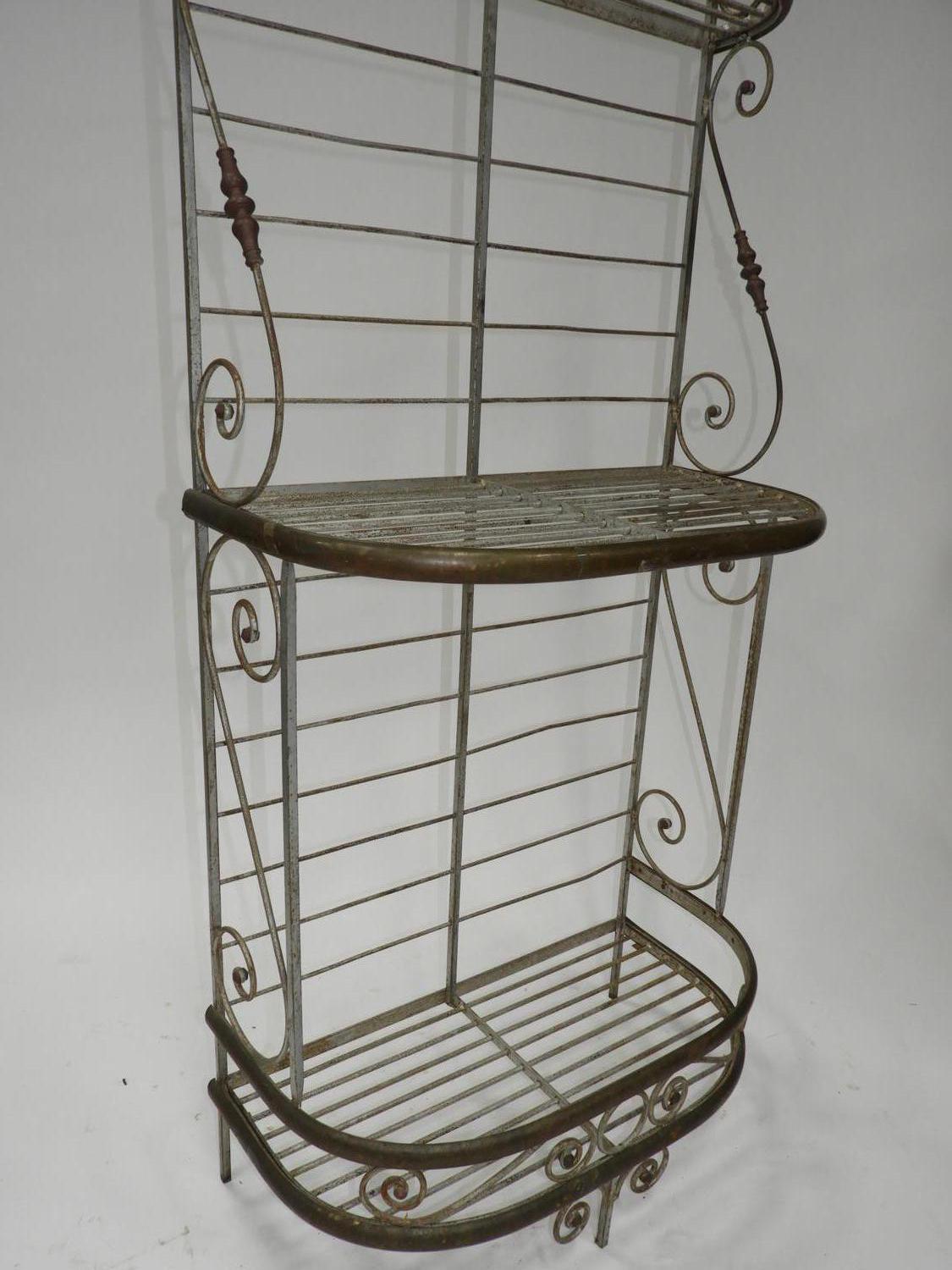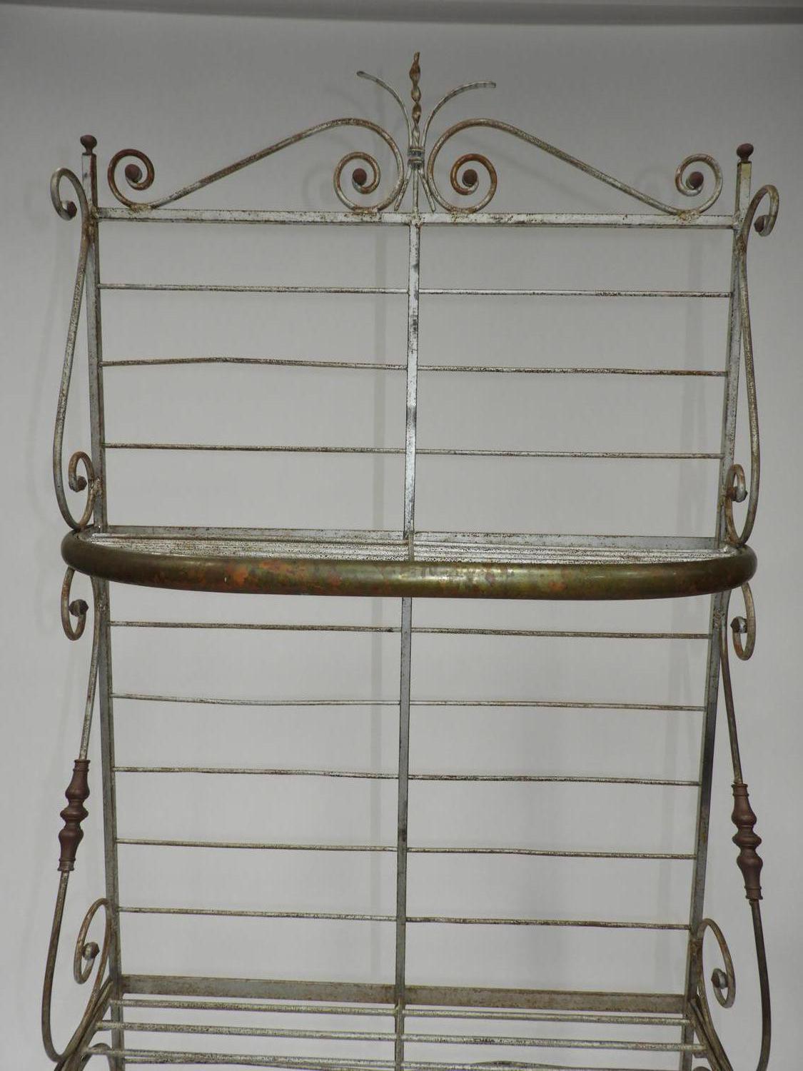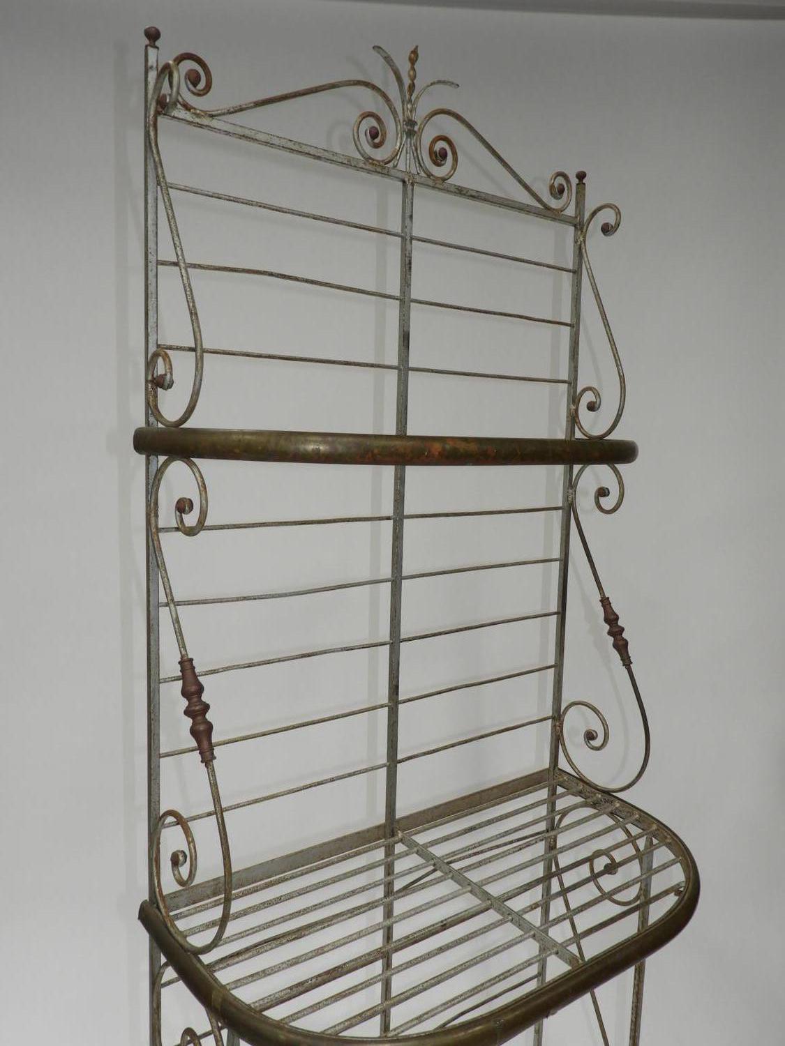 silvered wrought iron and brass bakers rack, 19th century, 84" x 31" x 17"