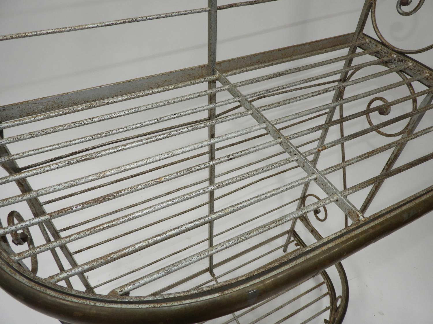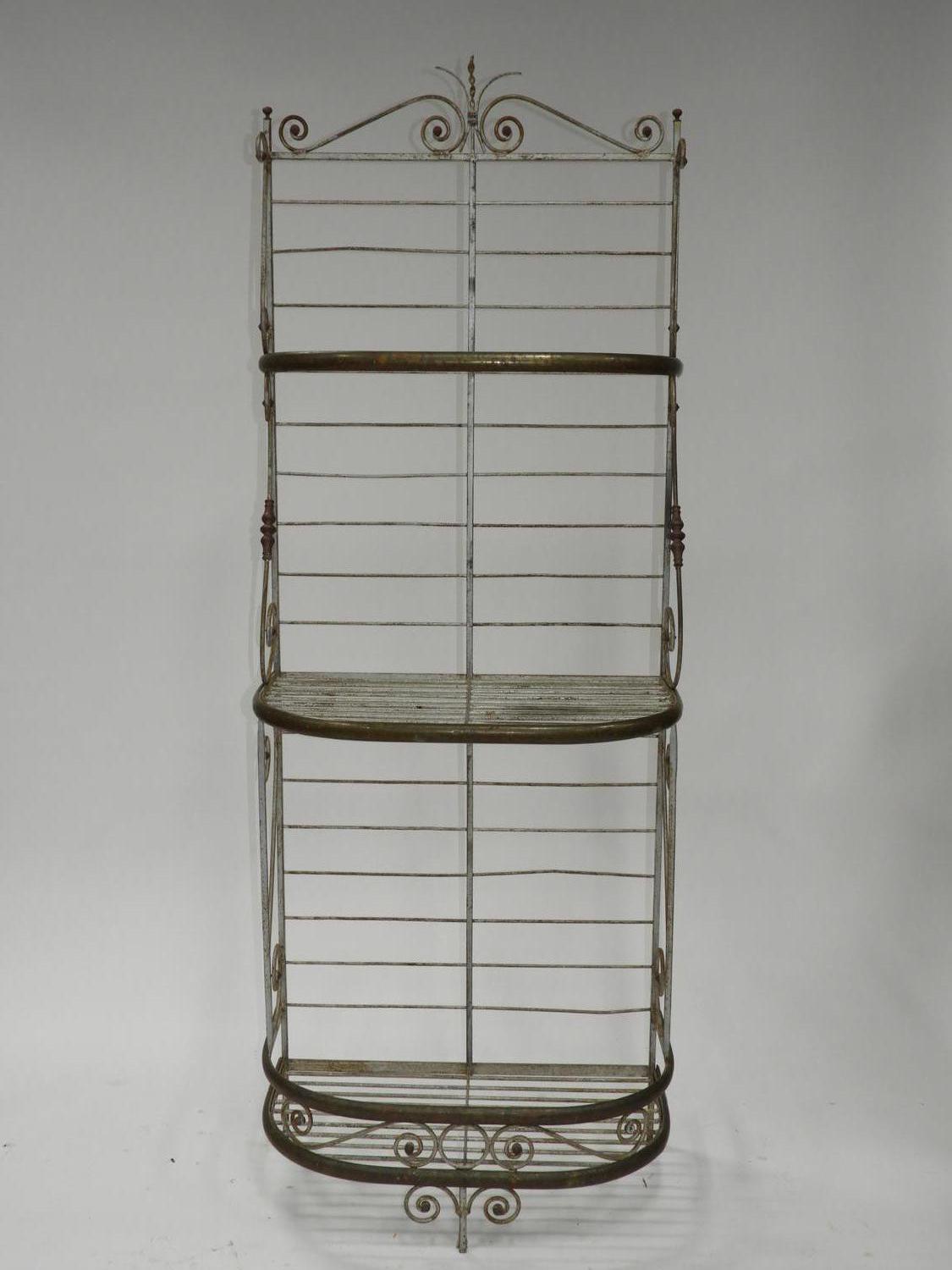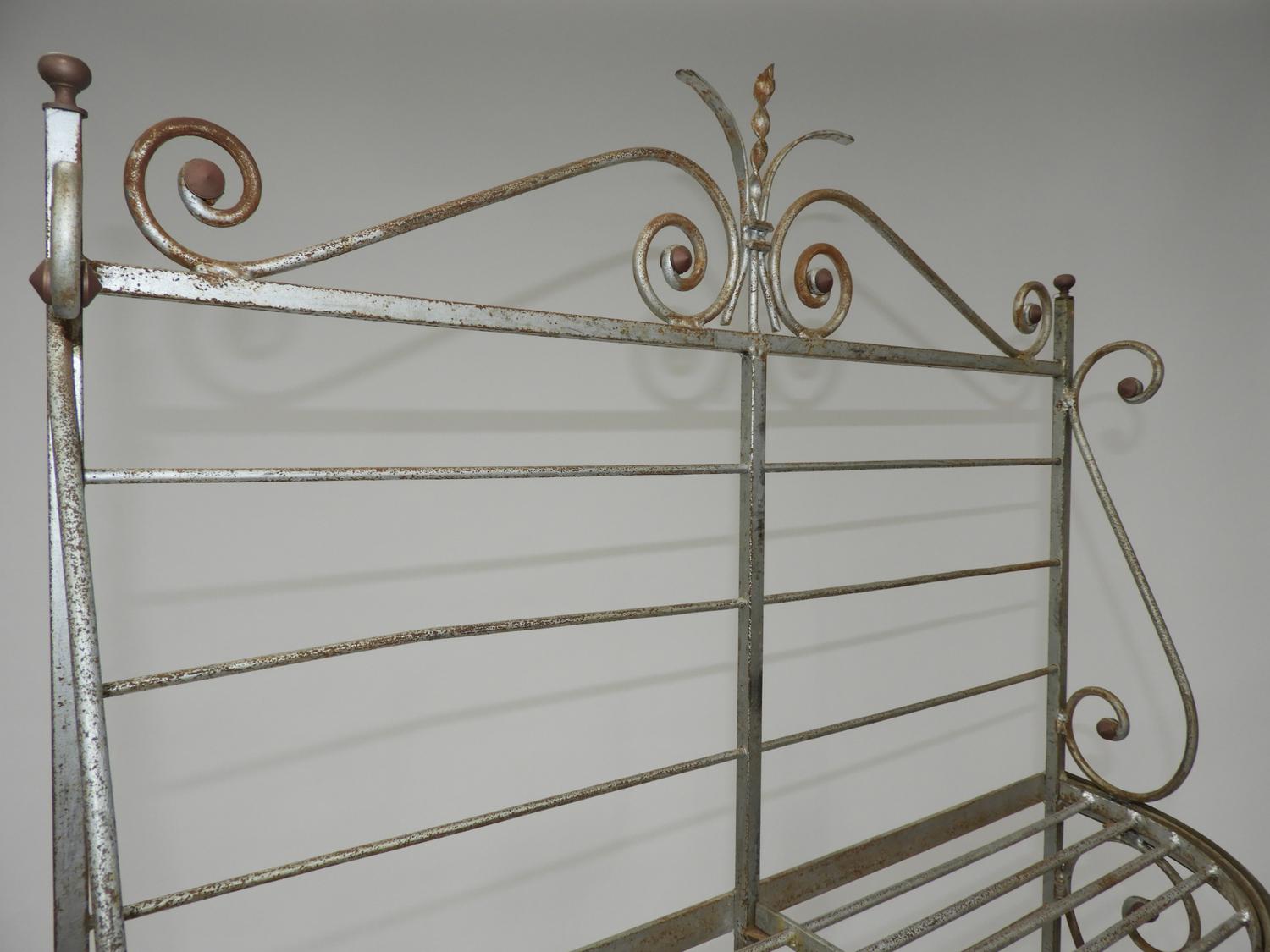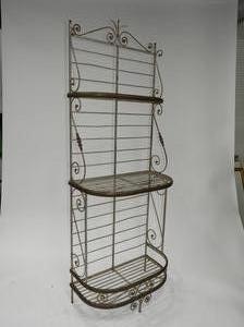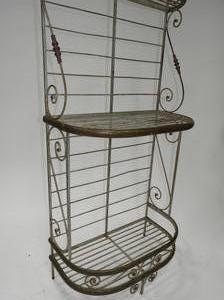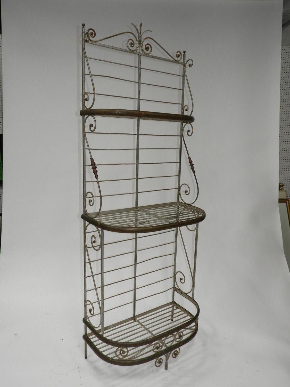 silvered wrought iron and brass bakers rack, 19th century, 84" x 31" x 17"