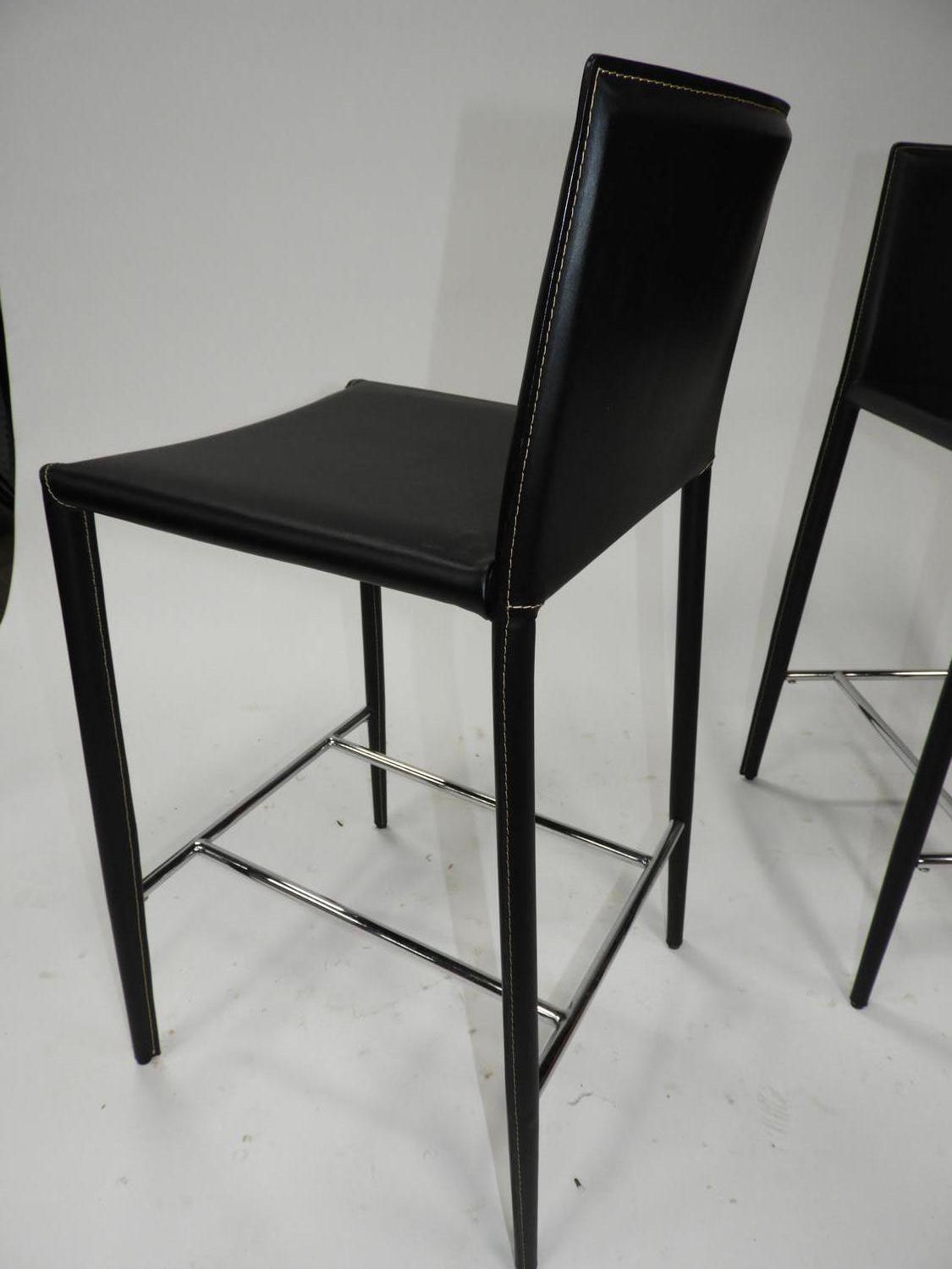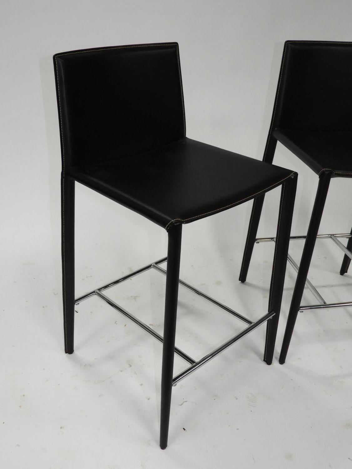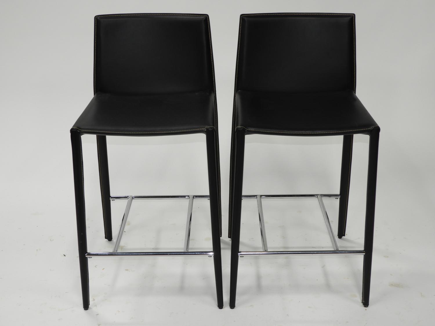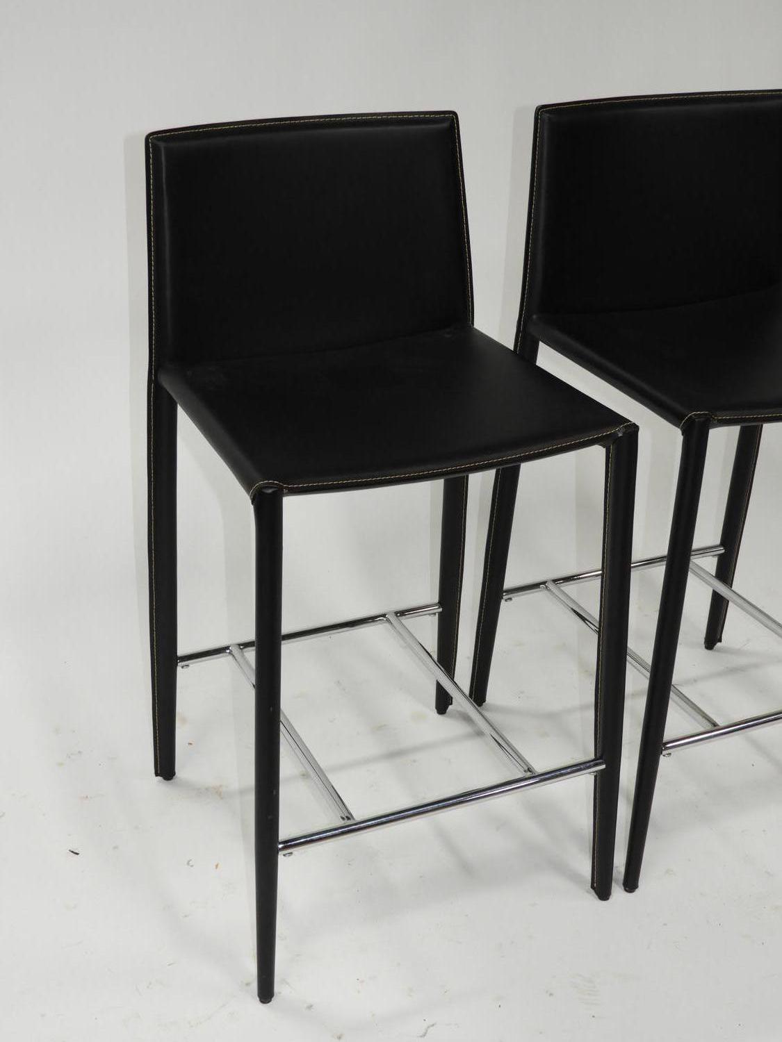 pair of contemporary designer leather steel upholstered stools, late 20th century