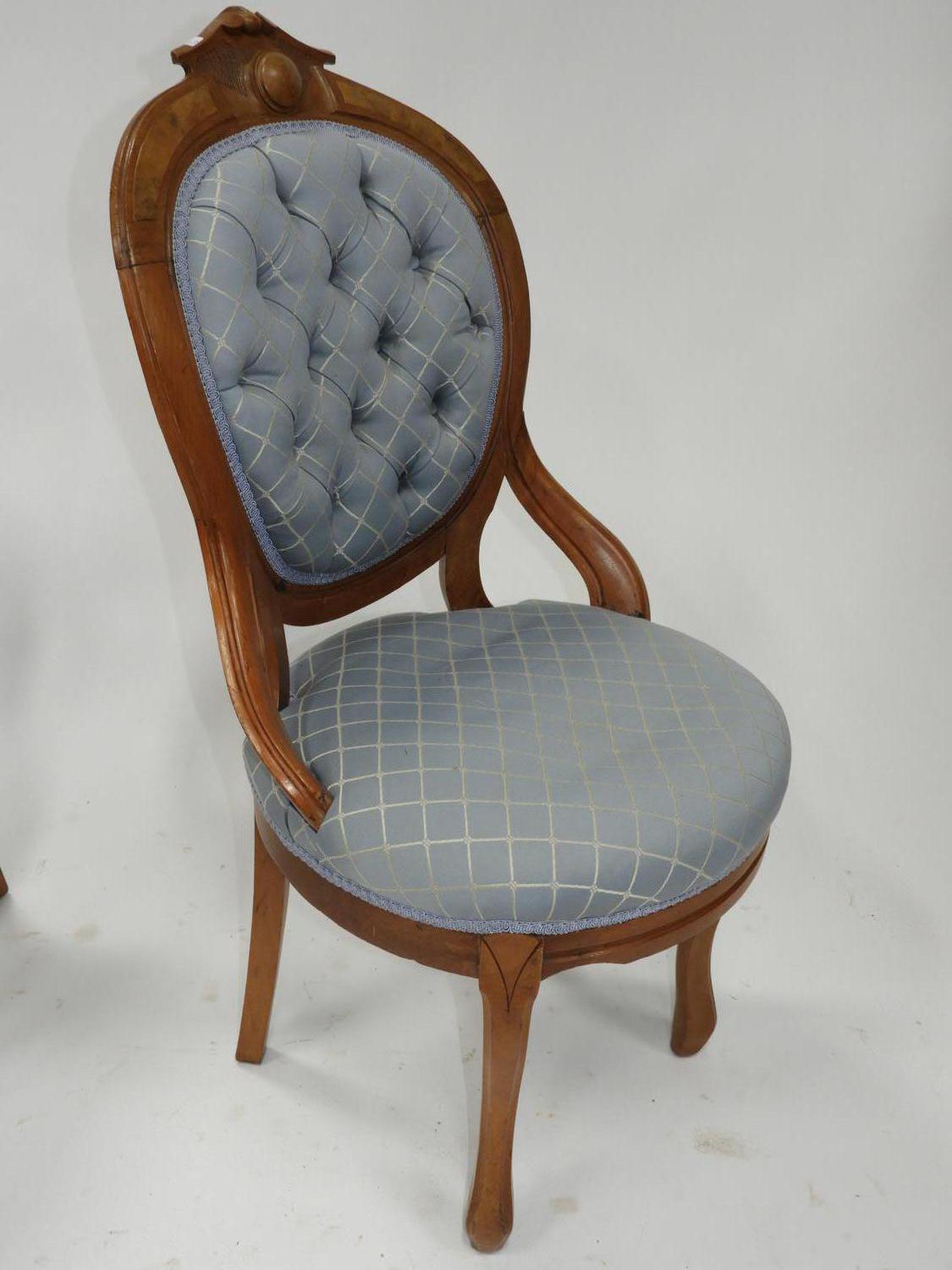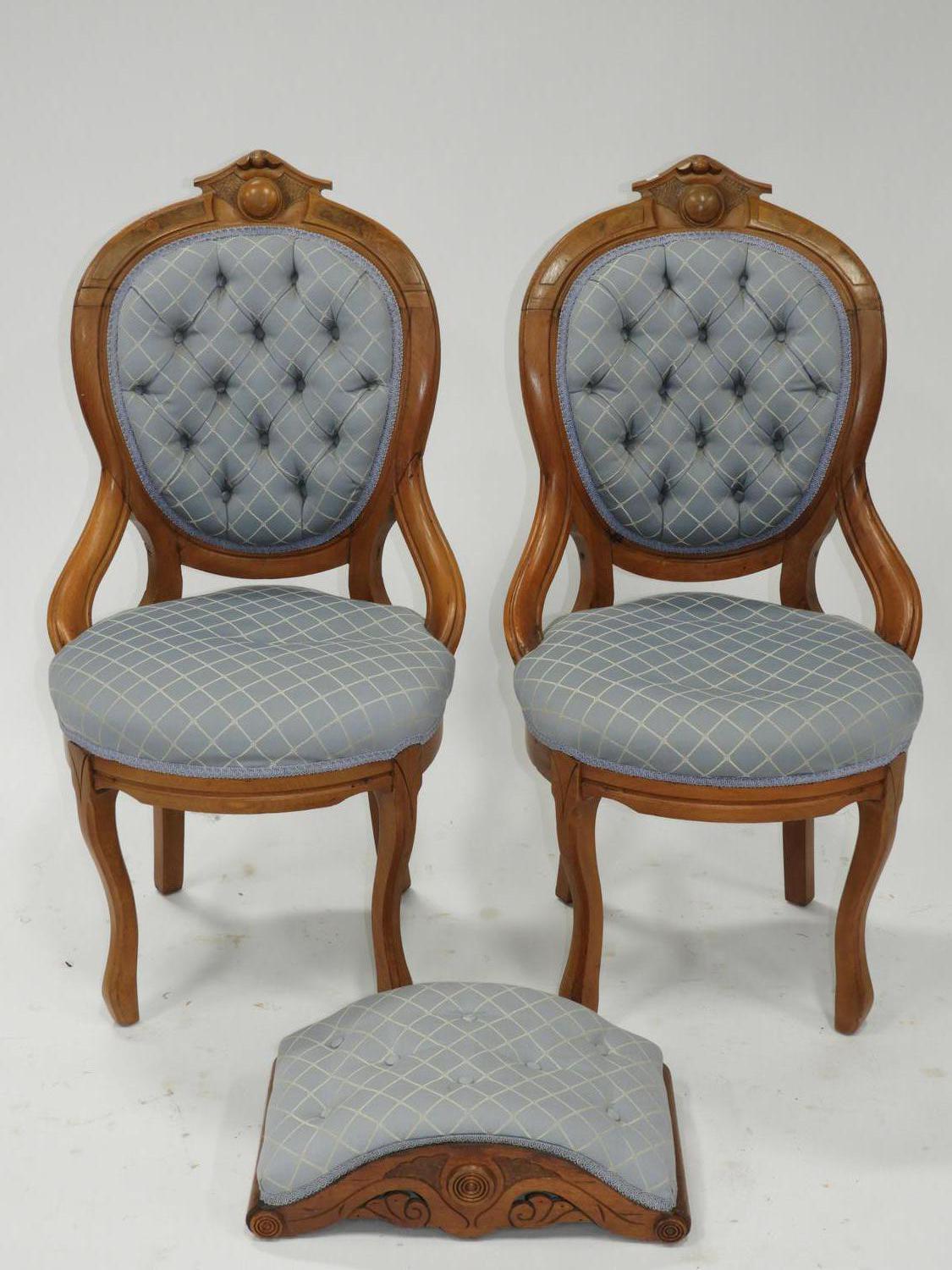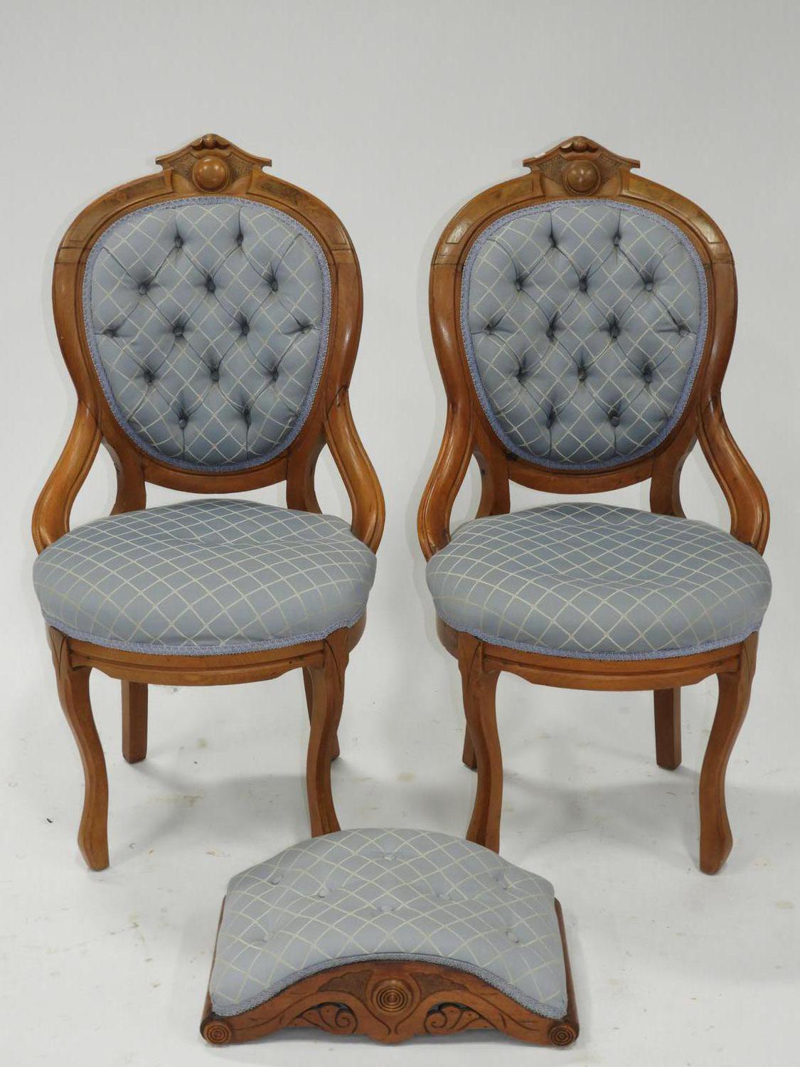 pair of late 19th century walnut upholstered parlor chairs with matching footstool