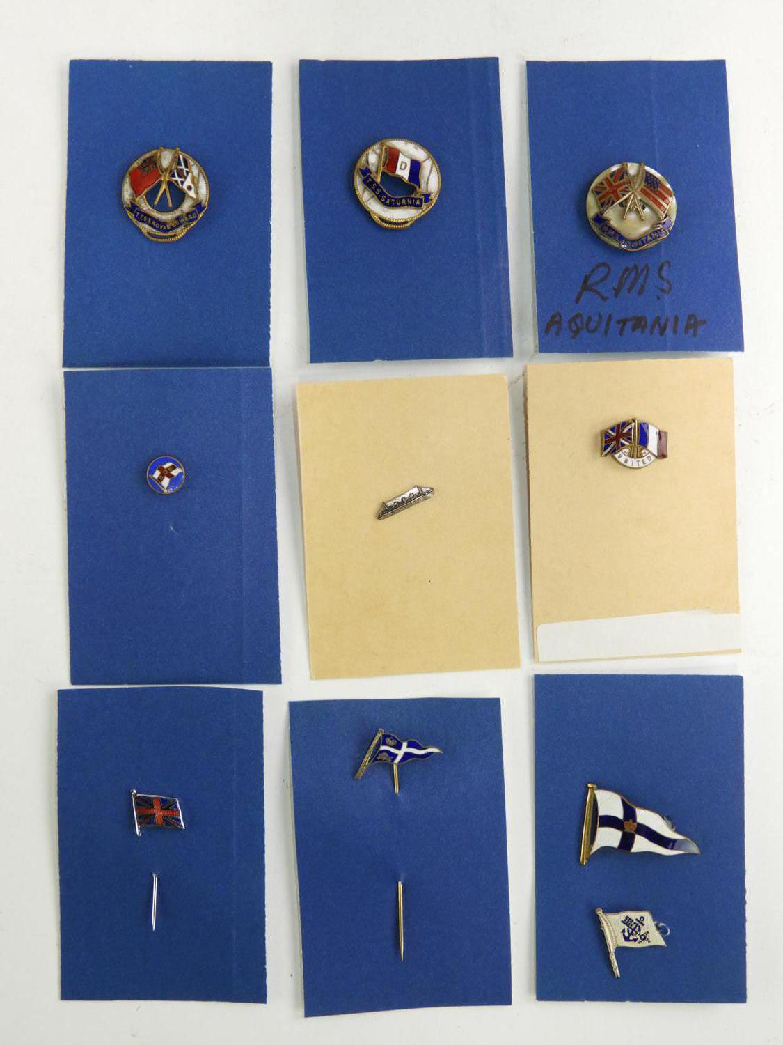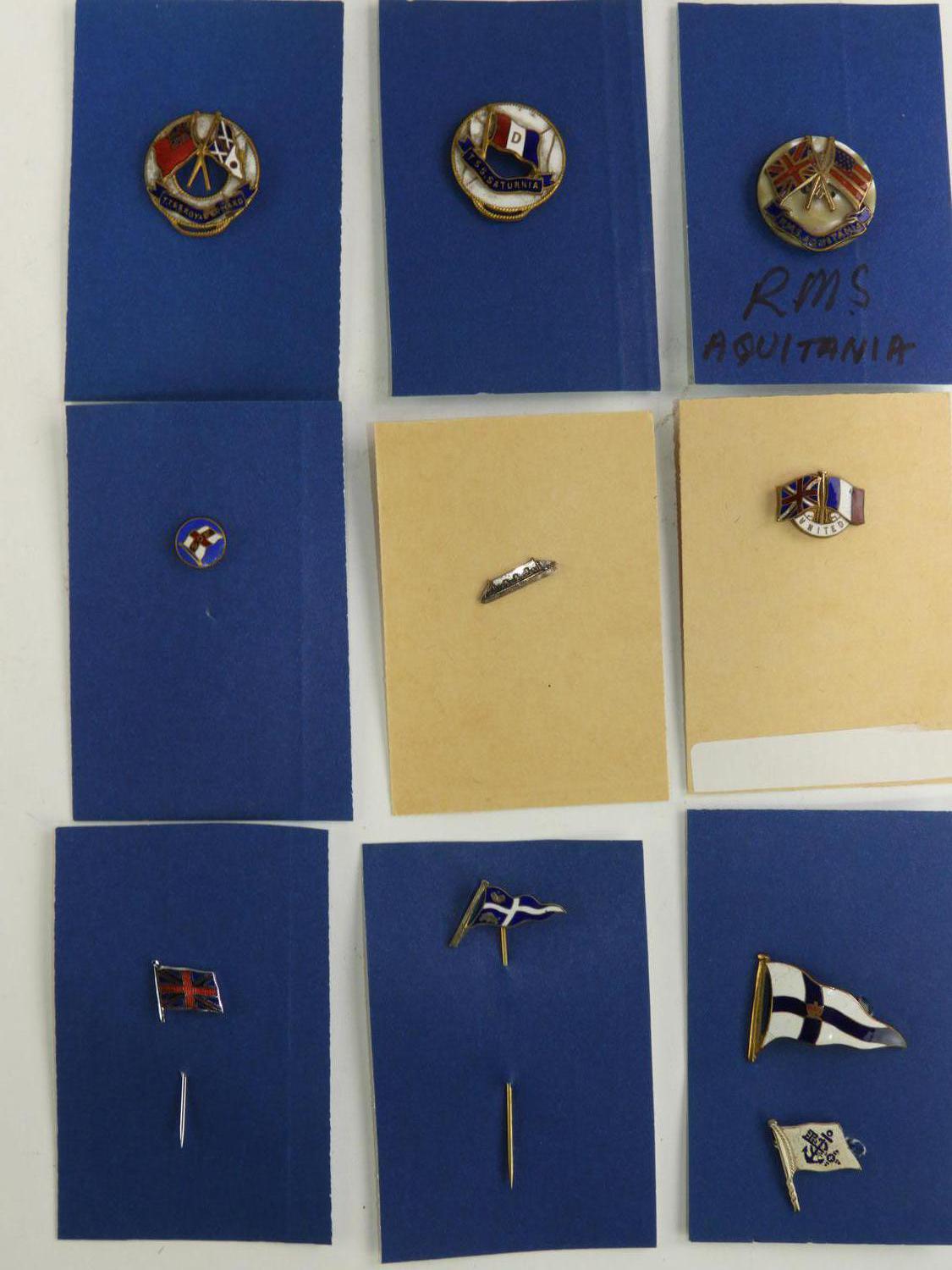 10 vintage navel pins - rms aquitania, t.s.s. saturnia - t.t.s.s. royal edward, etc