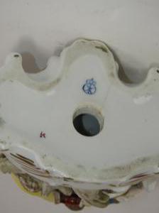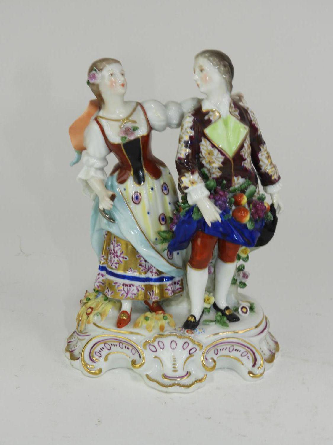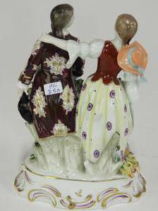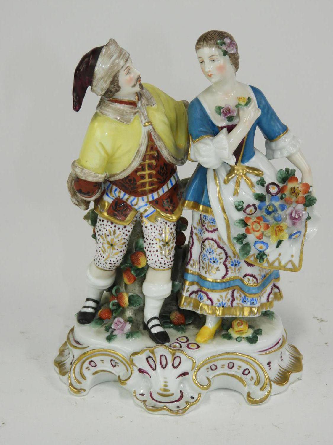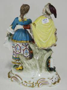 pair of hand painted porcelain figural groups, ht 7"
