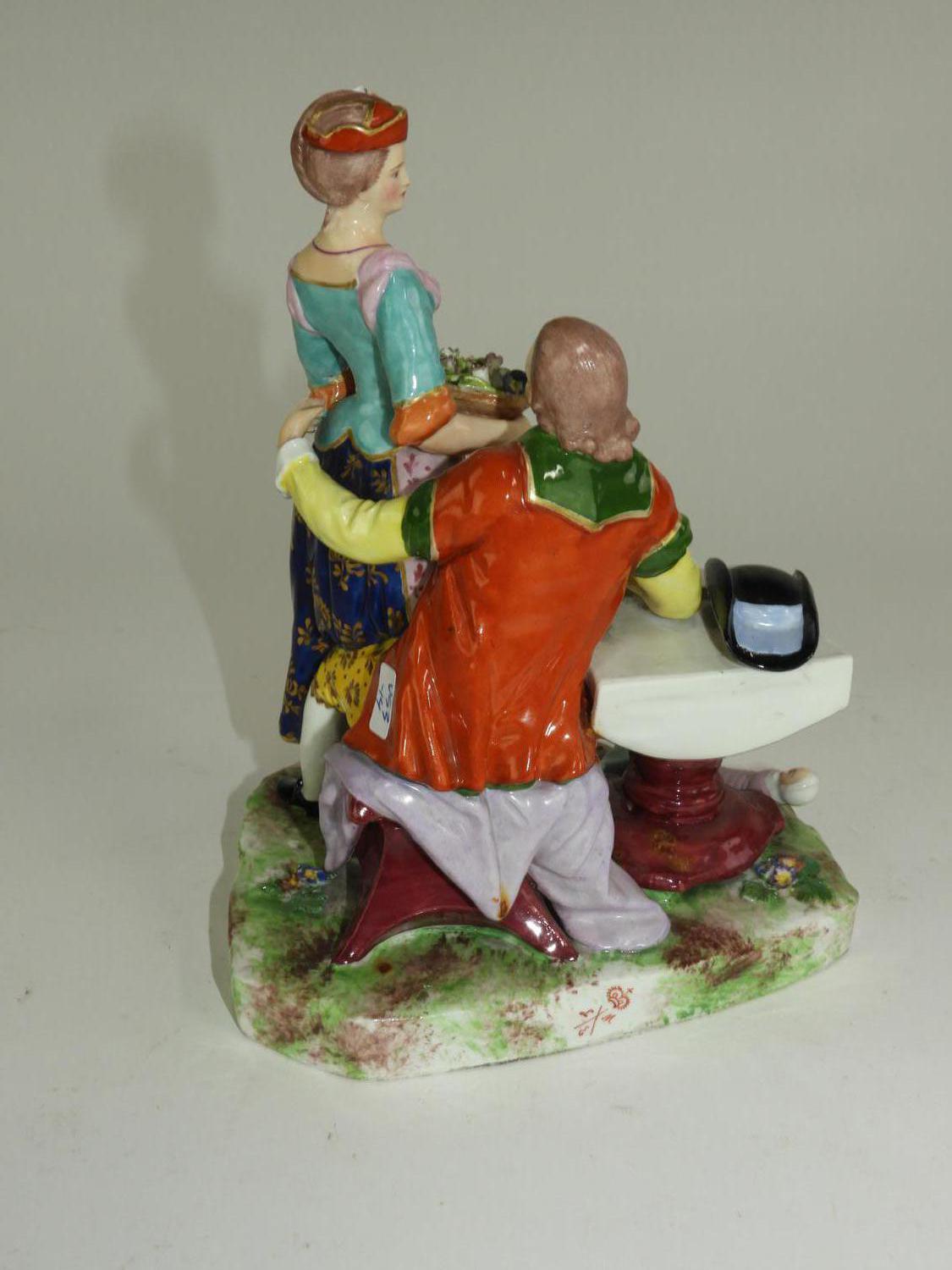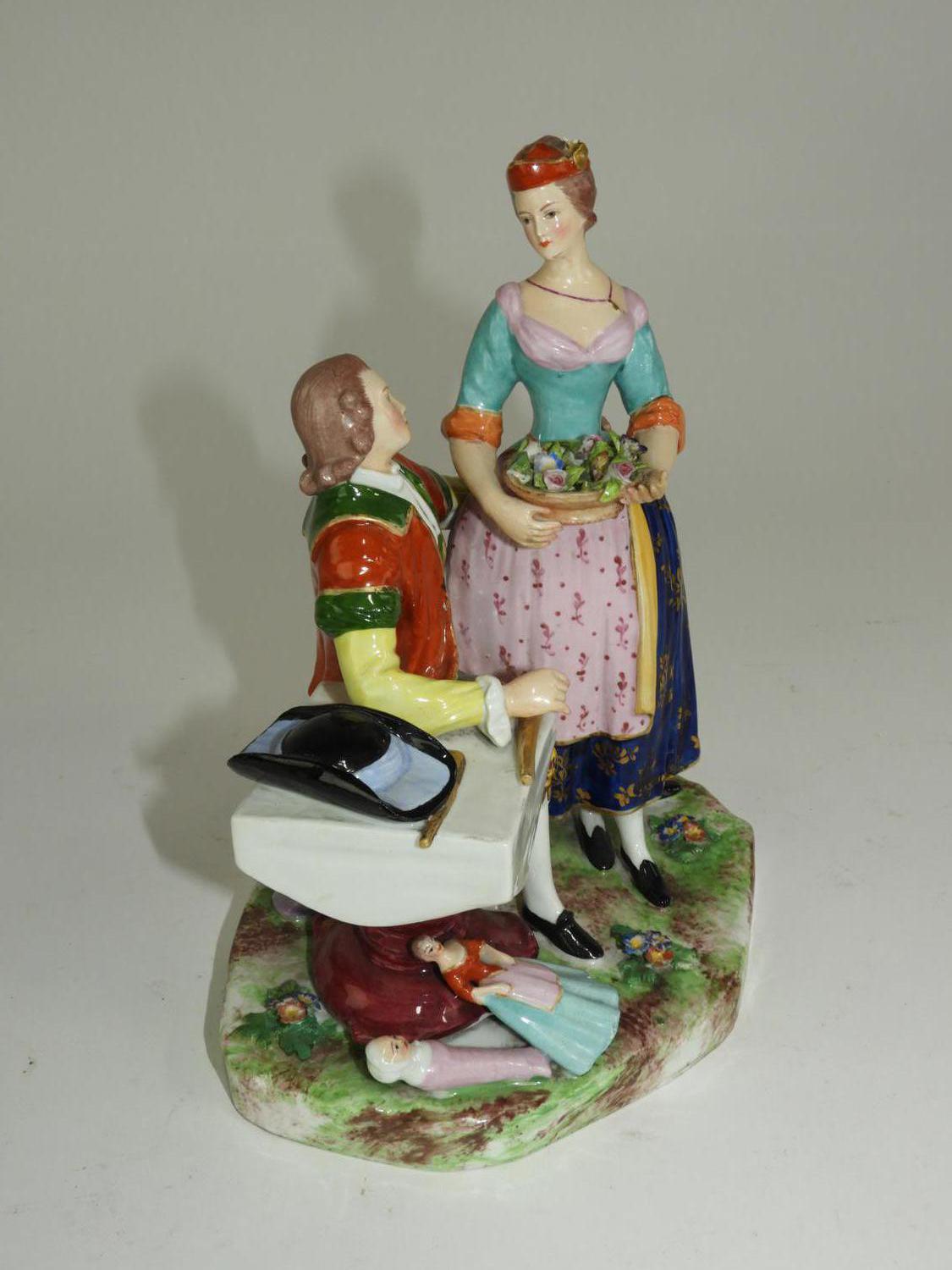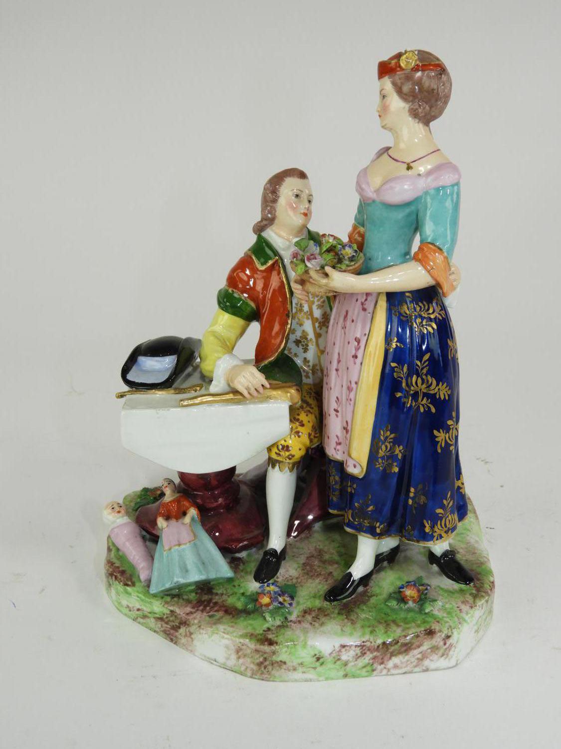 handpainted porcleain figural group, ht 8 1/2"