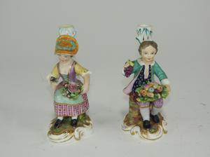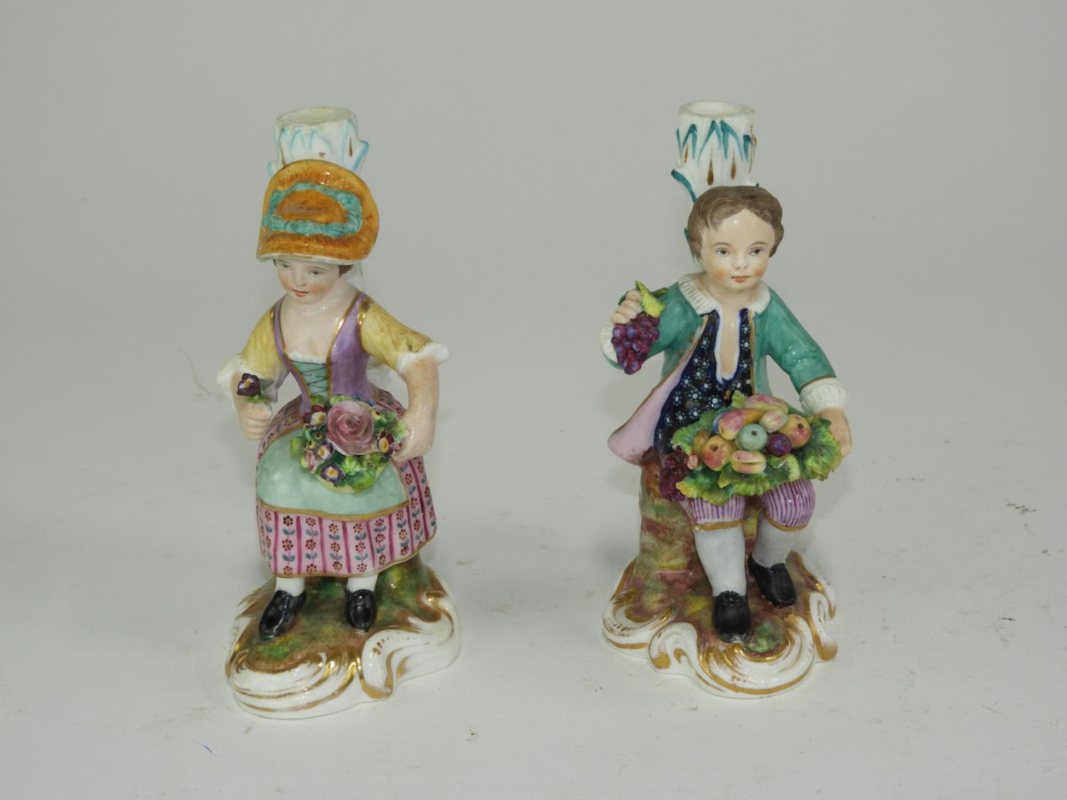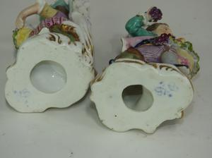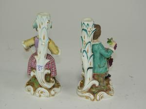 pair of handpainted porcleain figural candle sticks, ht 5 1/2"