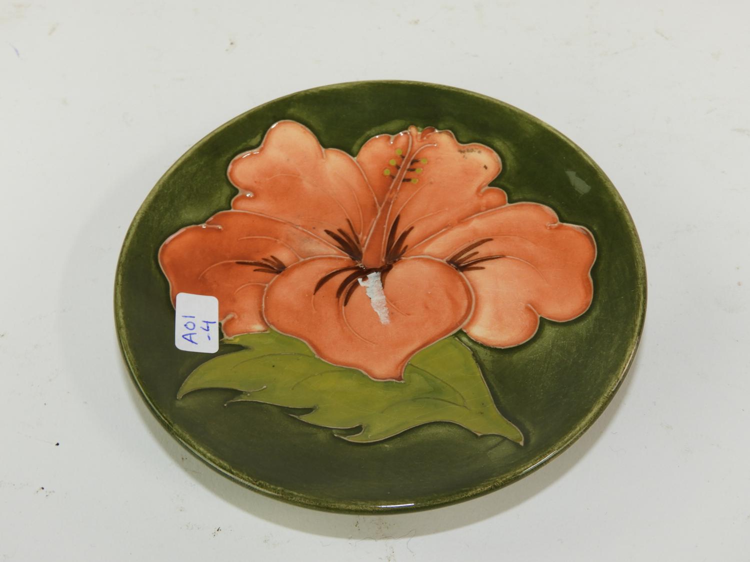 moorcroft art pottery pansy pattern dish, dia. 4 1/2"