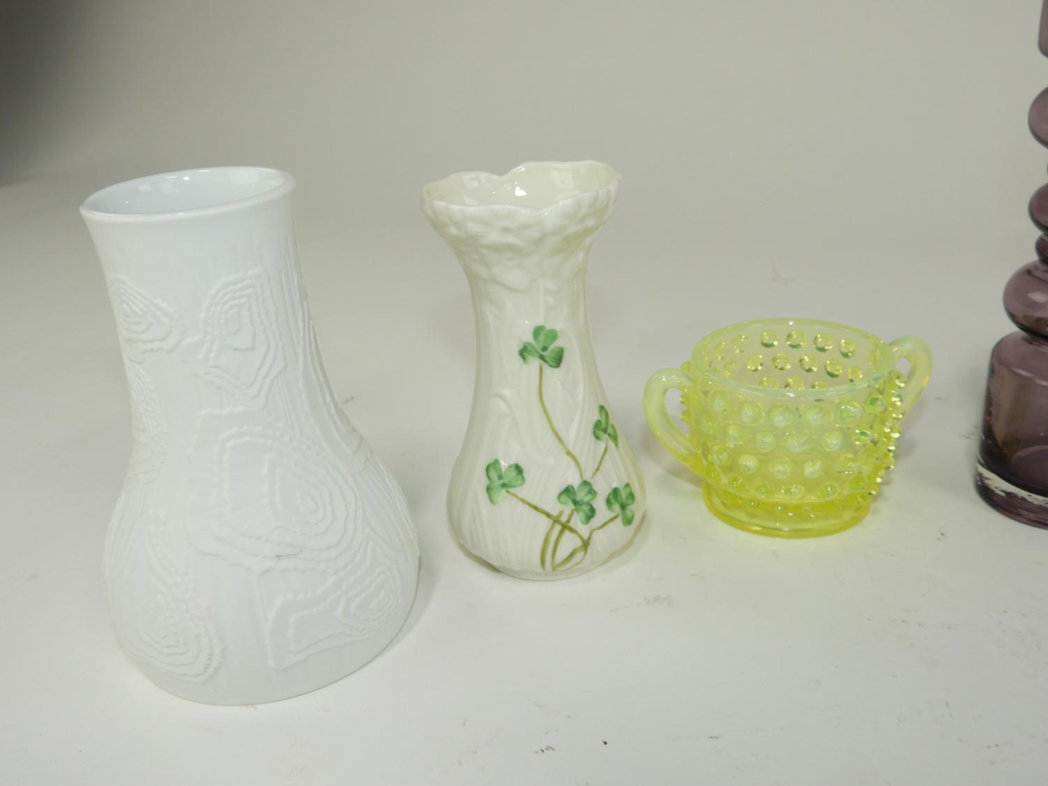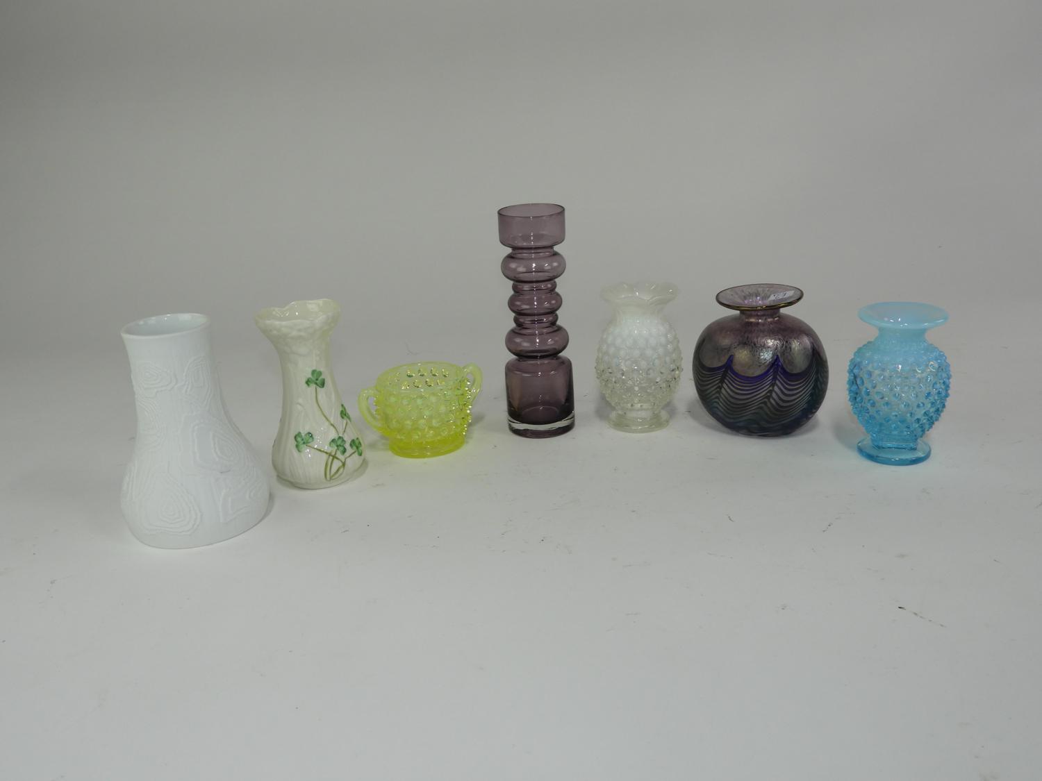 robert held art glass vase, belleek vase and others
