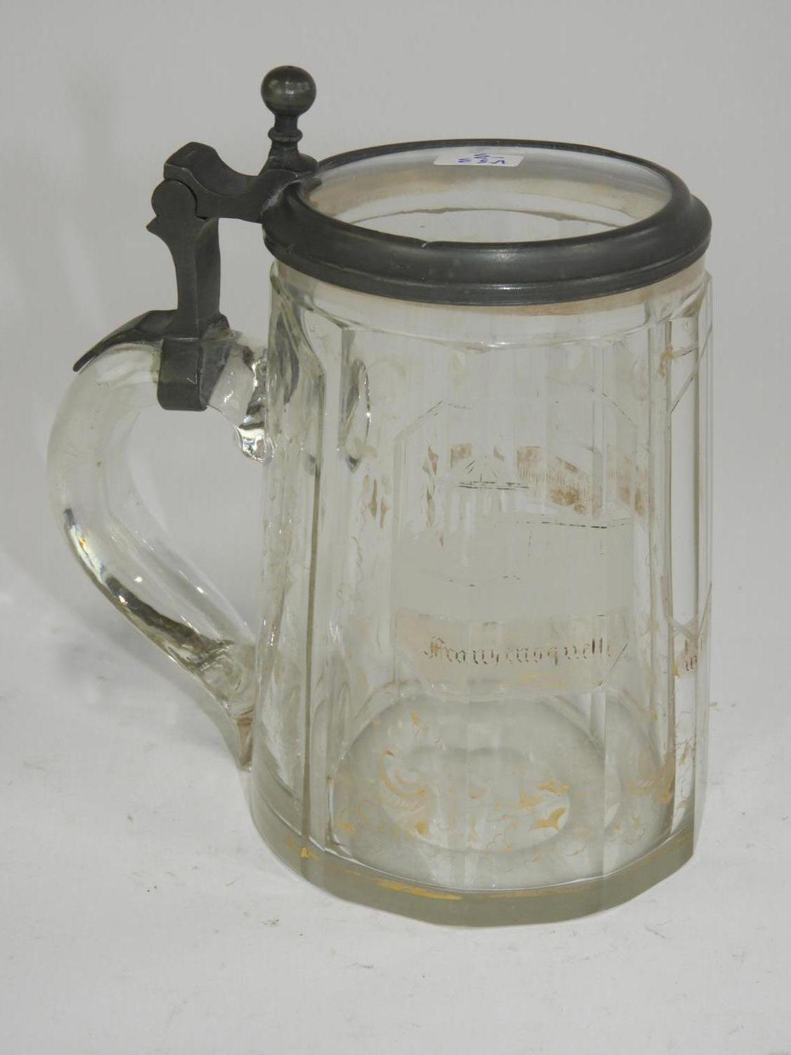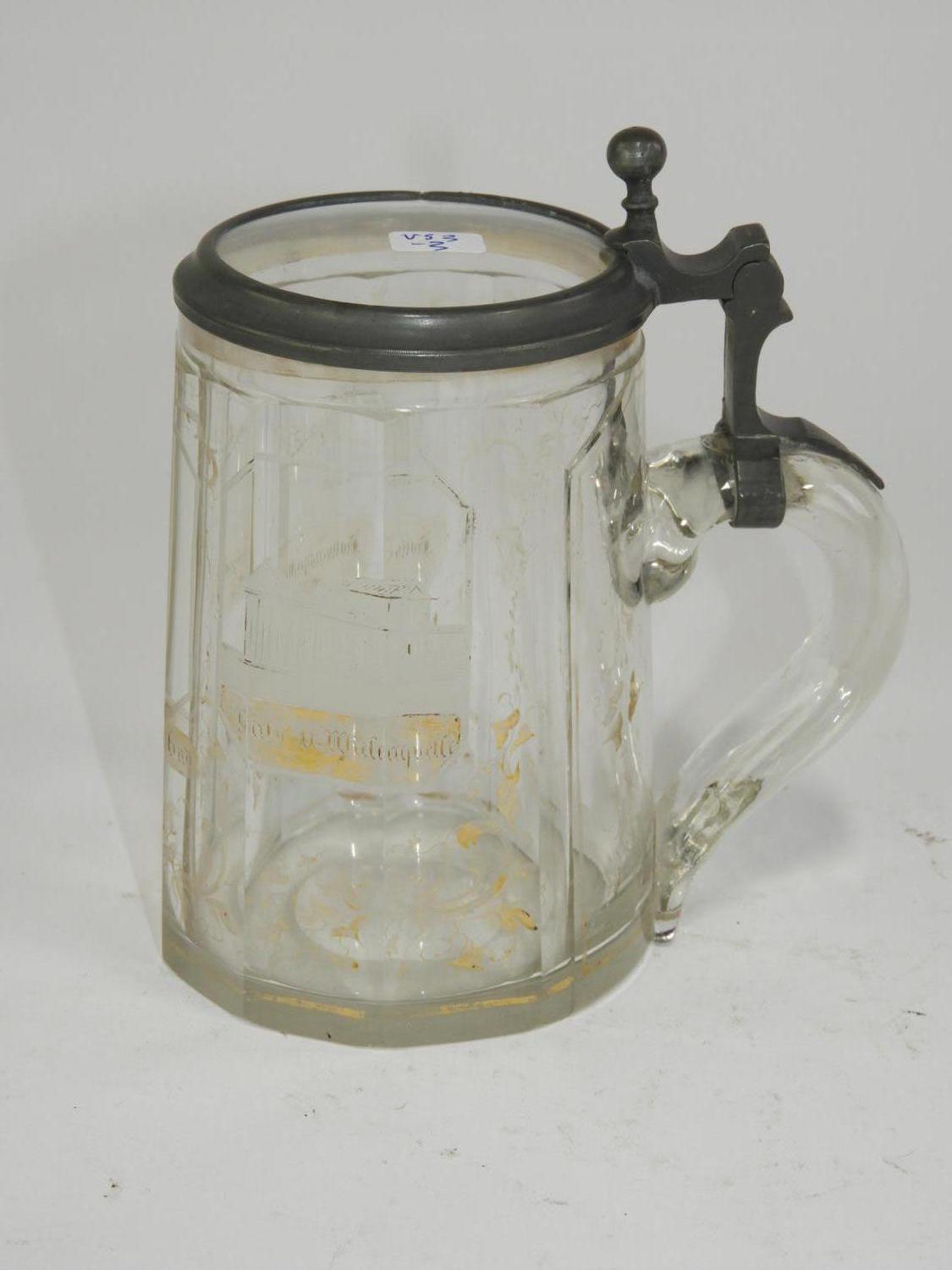 etched and gilded glass stein, ht. 6"