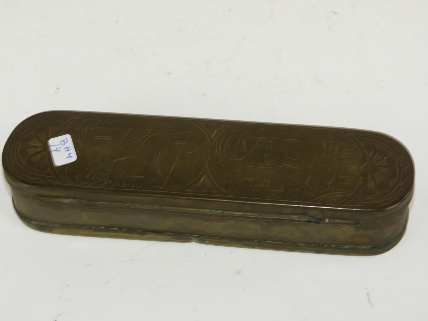 18th century dutch brass scribes box, 1 1/4" x 6 3/4" x 2"