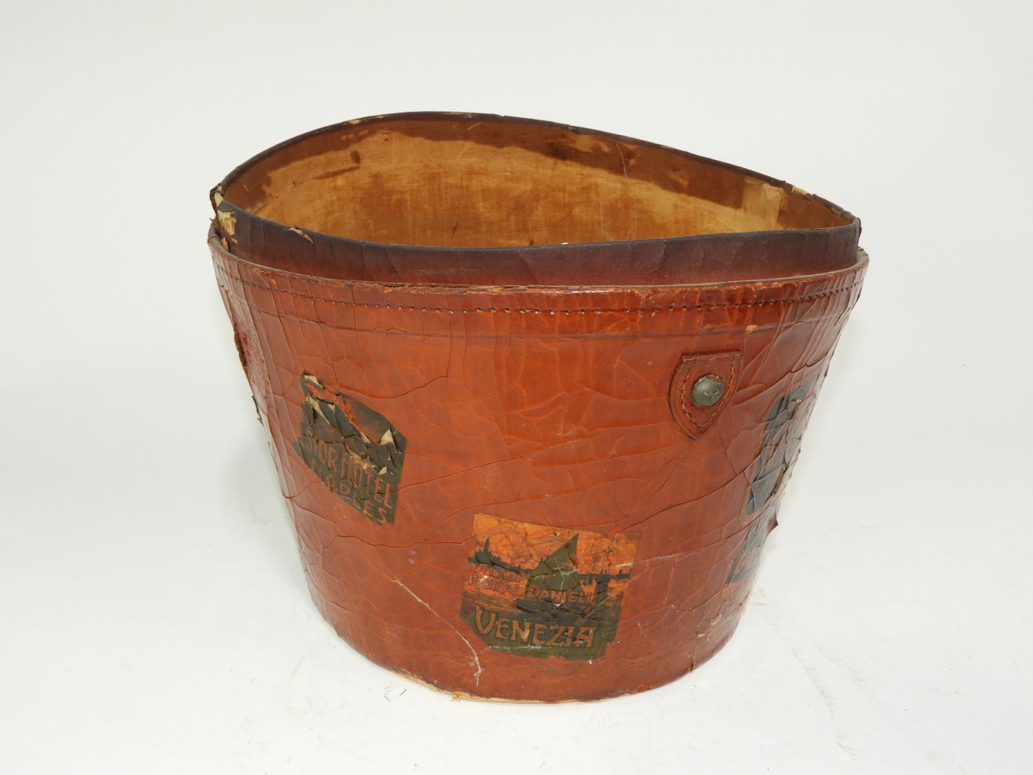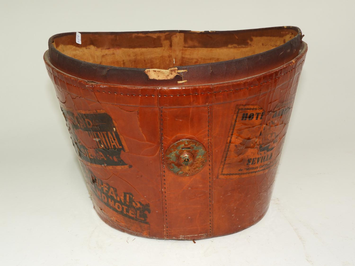 leather hat box, condition noted