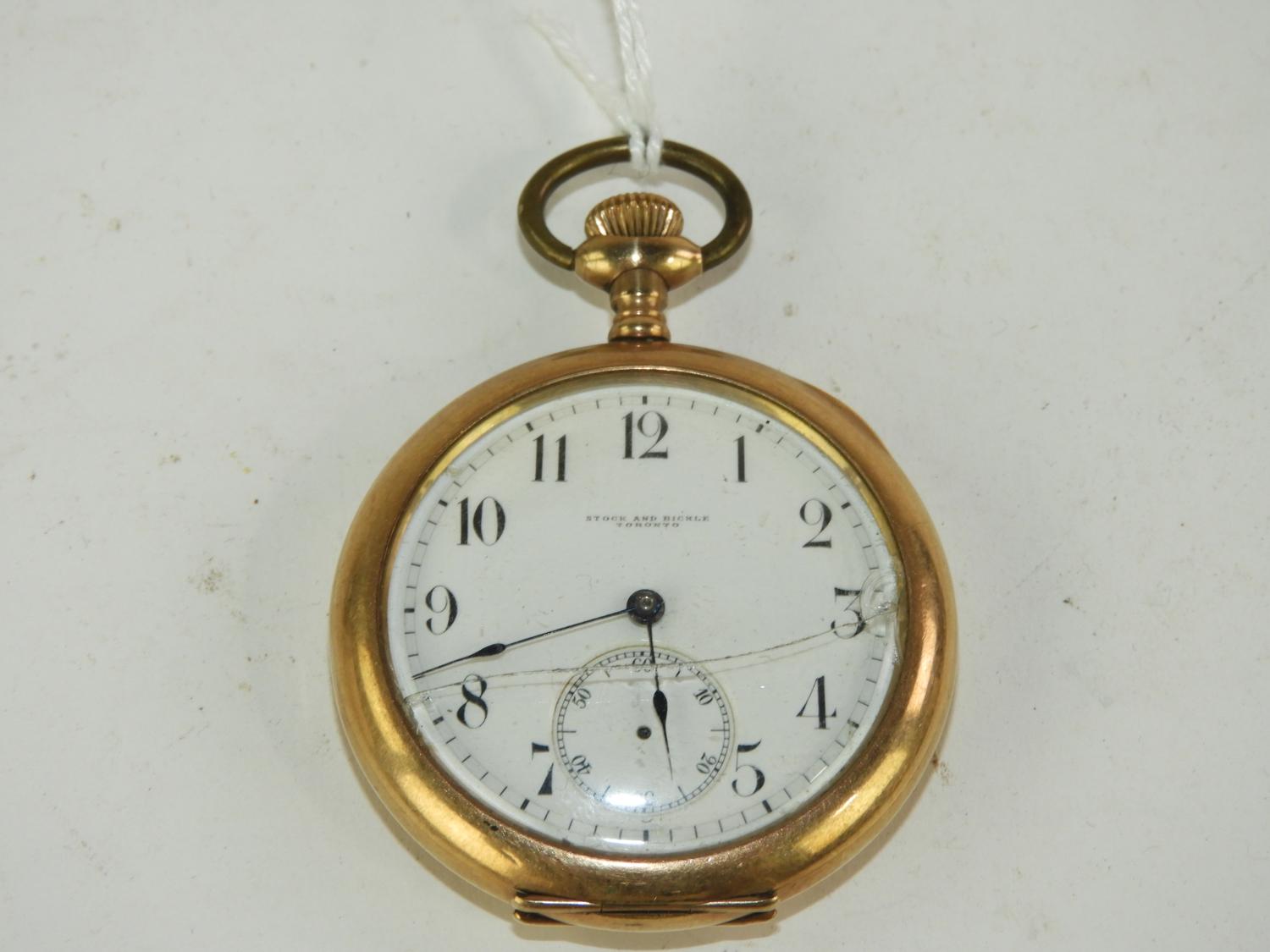 stock & bickle gold filled open face pocket watch, mvmt #3013717