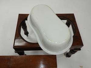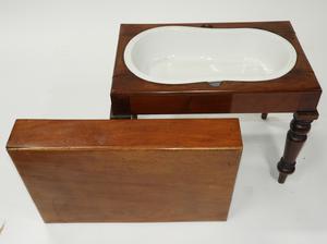19th century mahogany bidet table with ironstone basin, 18 x 23" x 15"