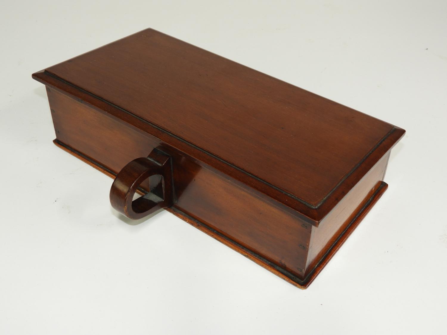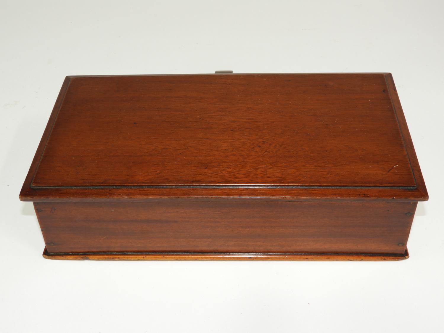 19th century mahogany 3-section cigar box, 3 1/2" x 12 1/2" x 8 1/2"