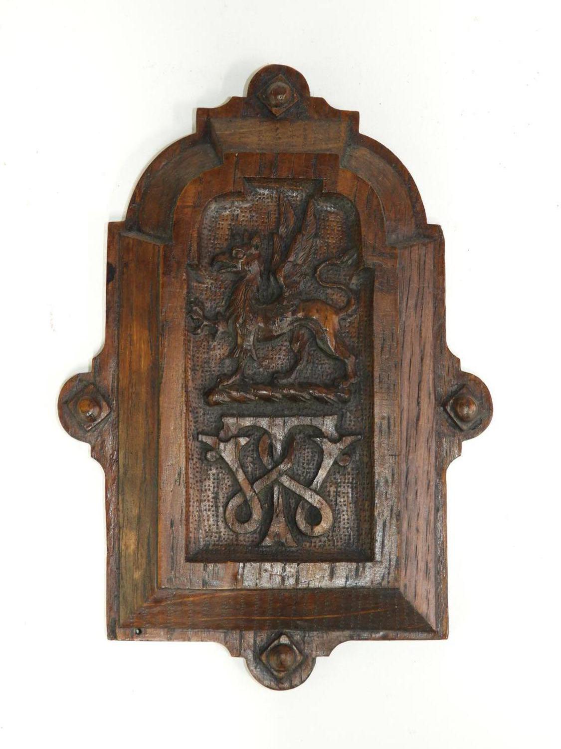 carved oak coat of arms plaque, late 19th century, 7 1/2" x 5"