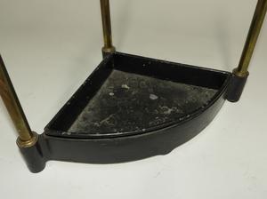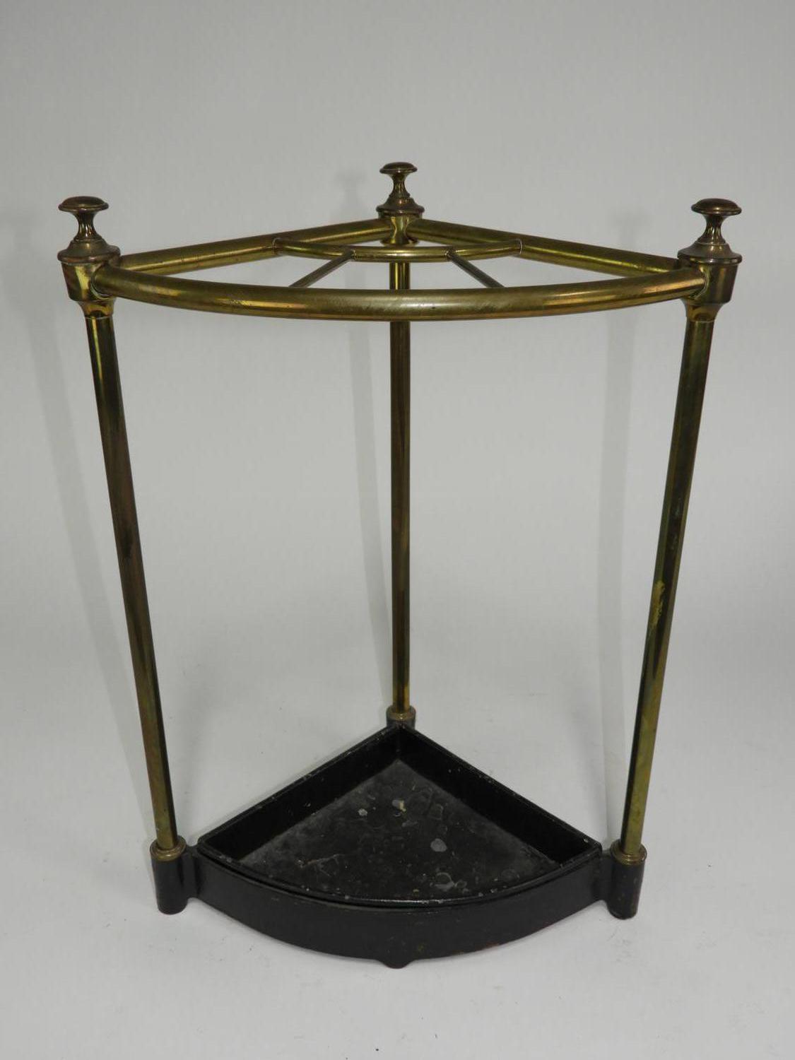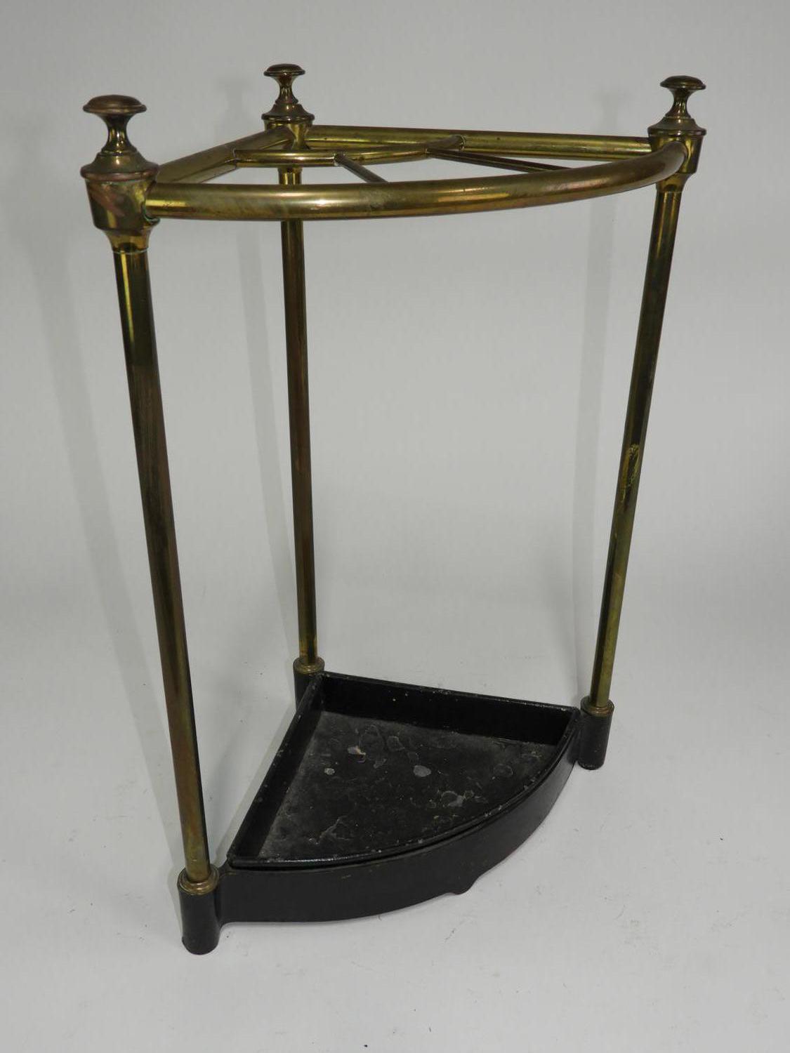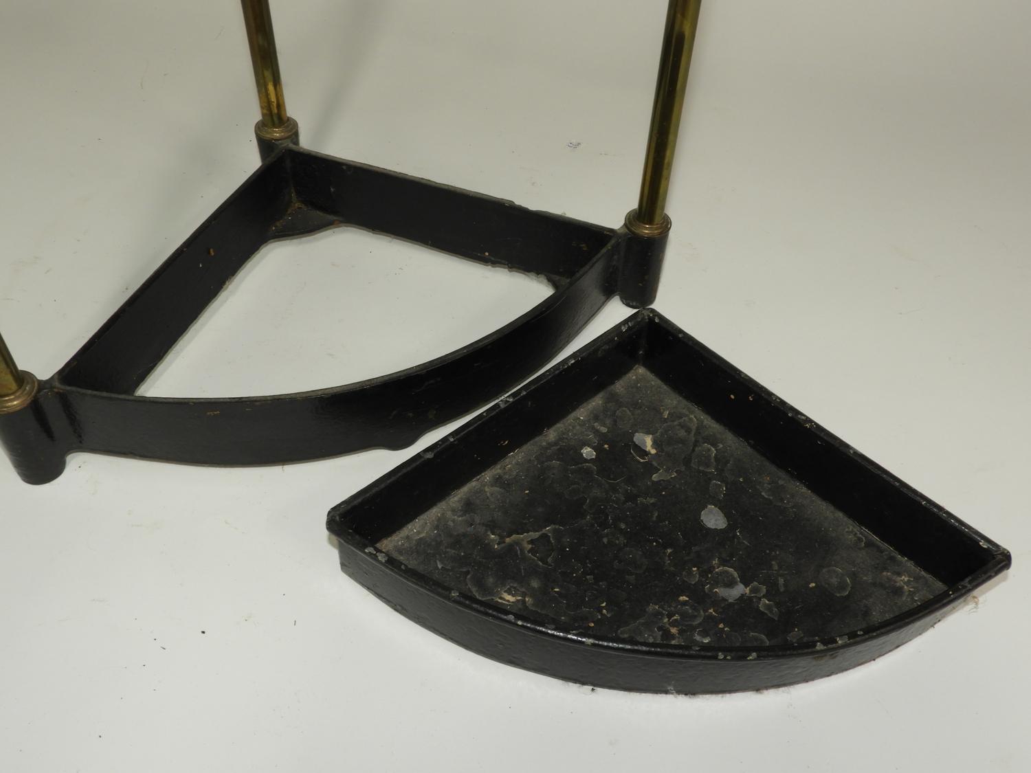 brass corner stick stand with cast iron base, late 19th century, 22" x 16" x 11"