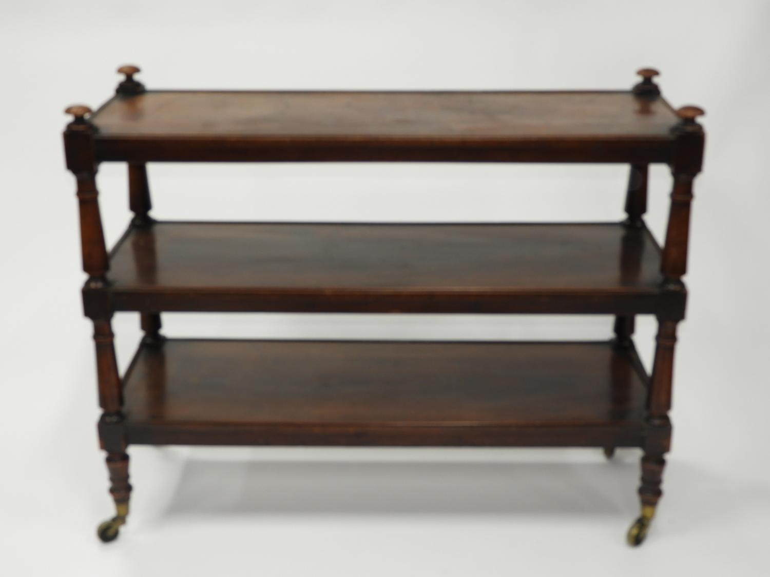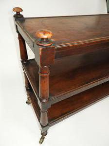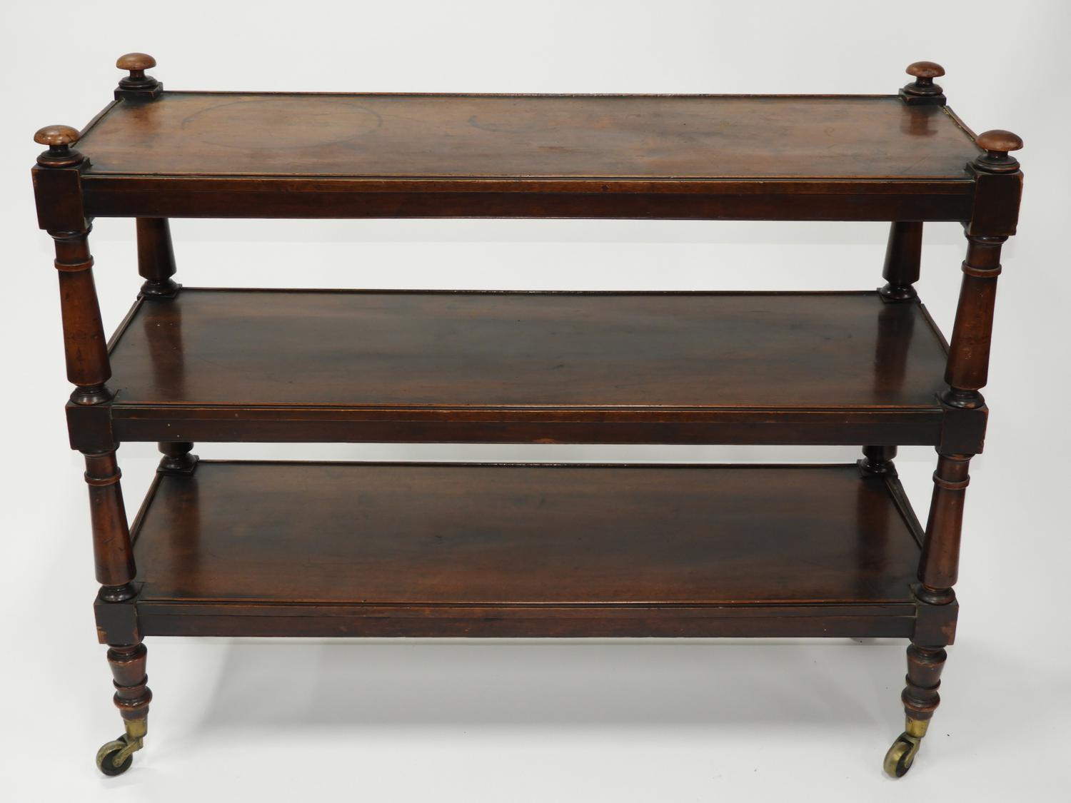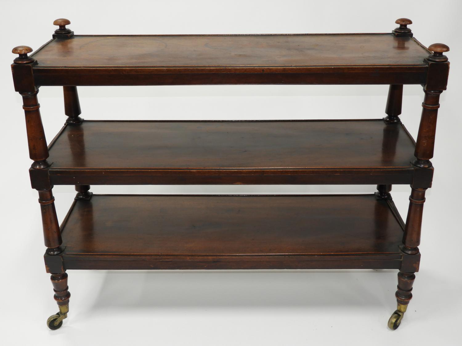 mid 19th century mahogany three tier buffet trolley, 39" x 48" x 18"