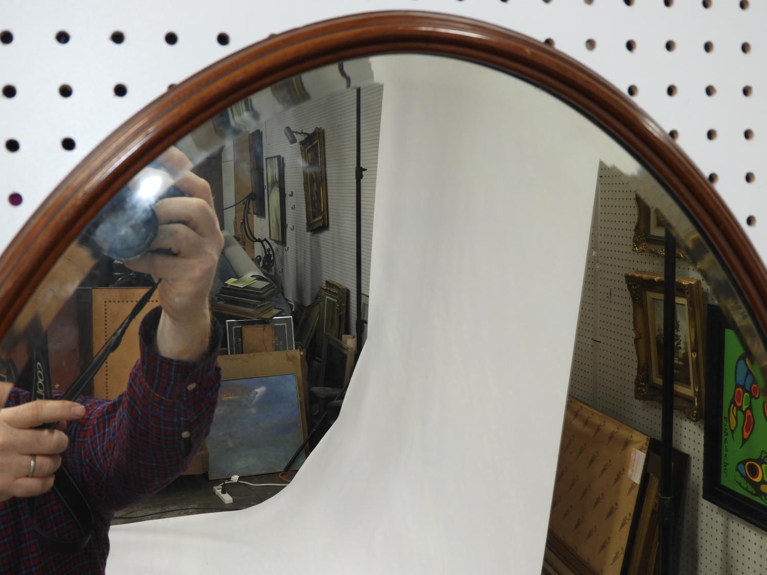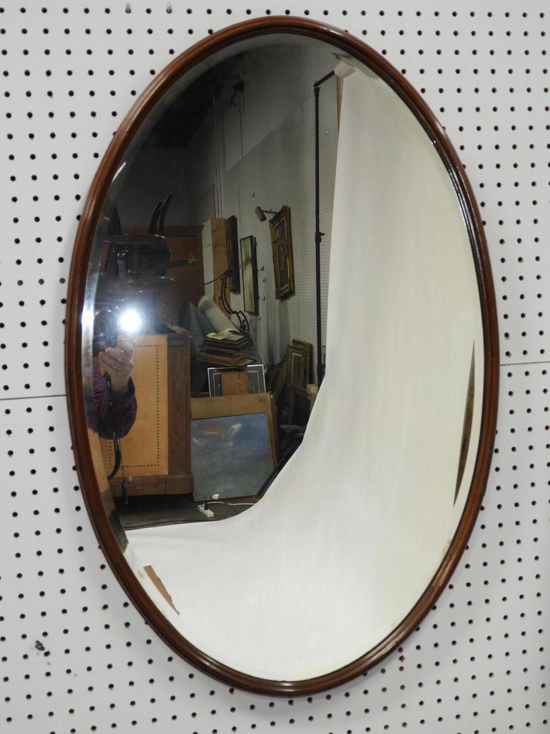 mahogany framed oval bevelled mirror, late 19th century, 34" x 22"