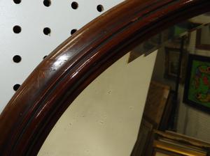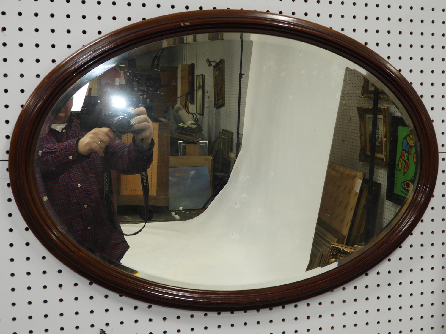 mahogany framed oval bevelled mantle mirror, late 19th century, 22" x 31"
