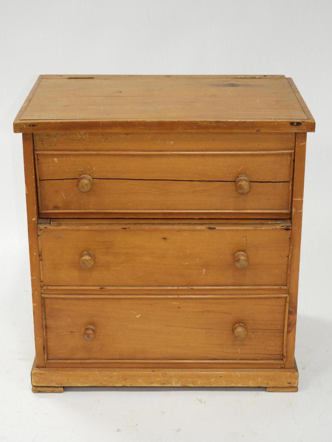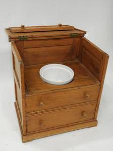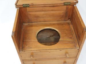 pine lift top commode with fitted liner, canadian, 19th century, 25 3/4" x 24 1/2" x 17"