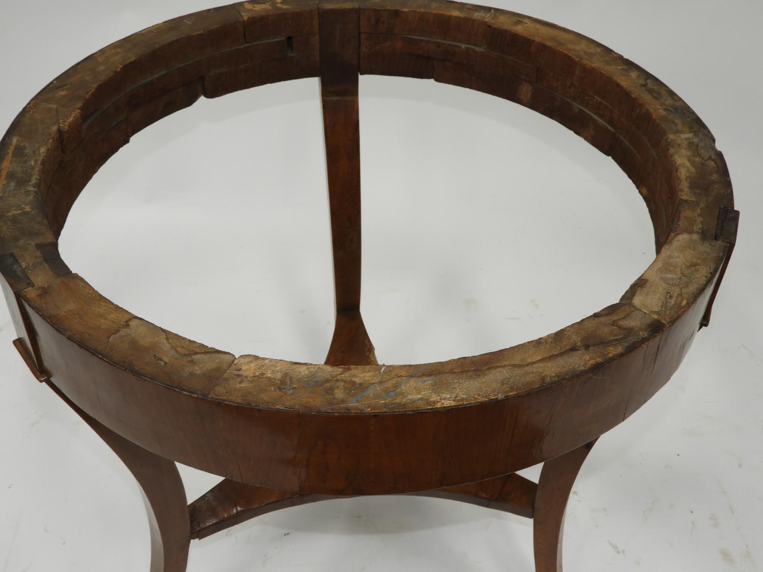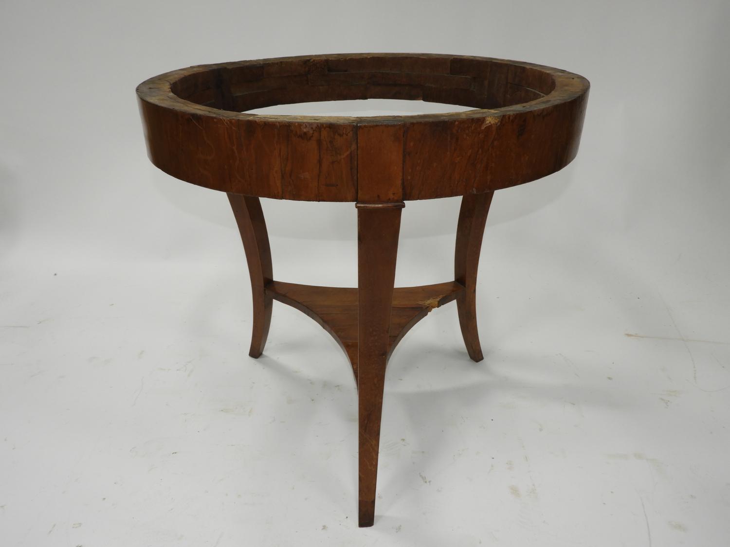 biedermeier walnut table base, 2nd quarter 19th century, 28" x 29"
