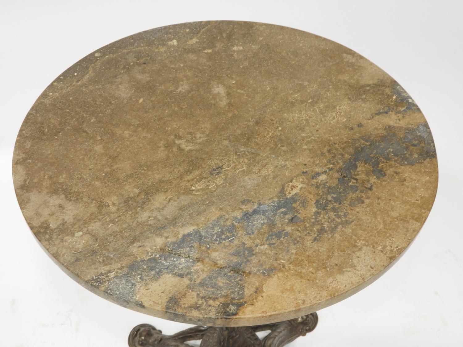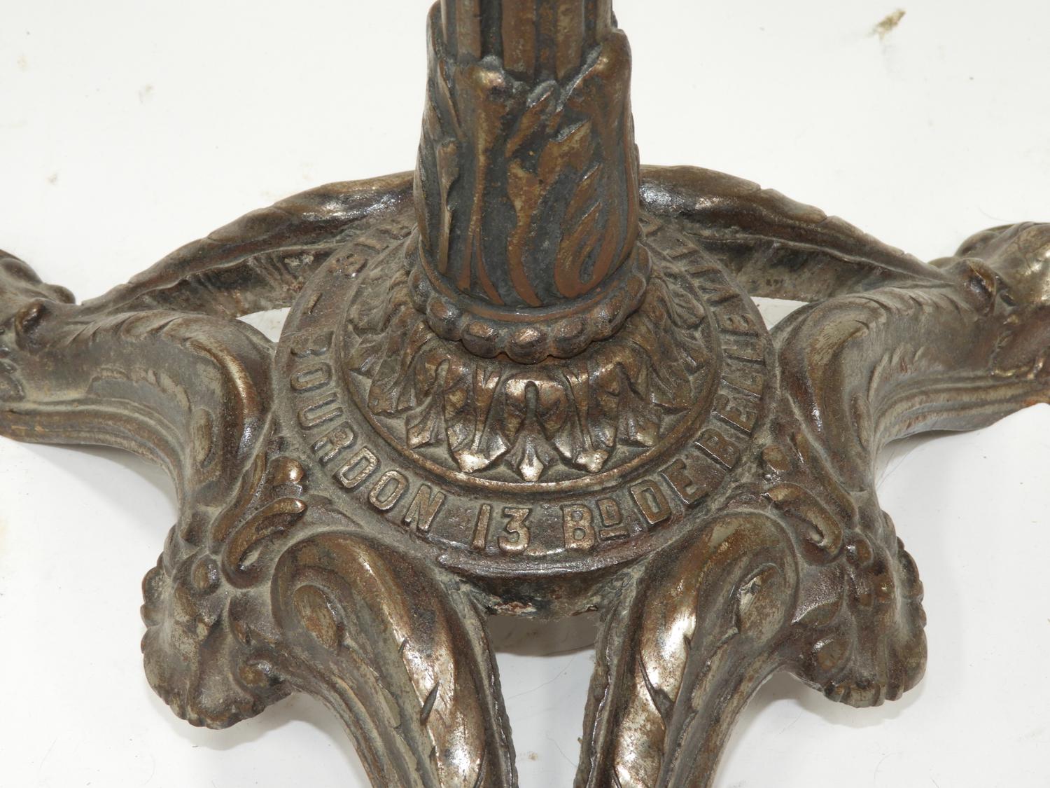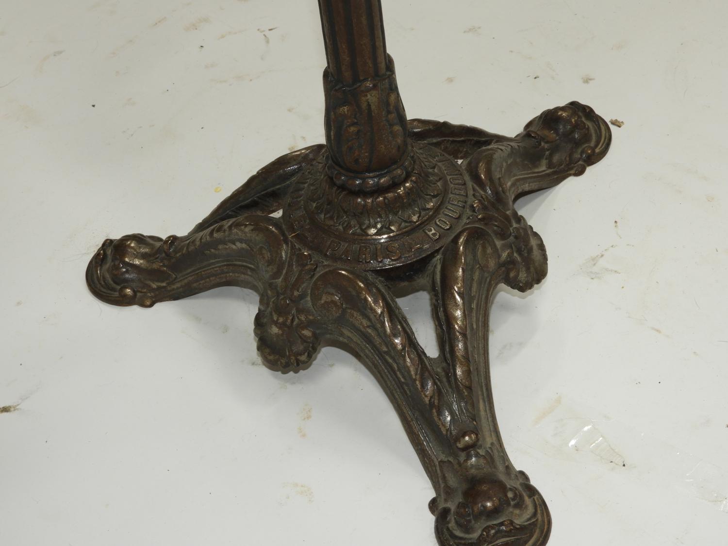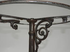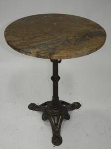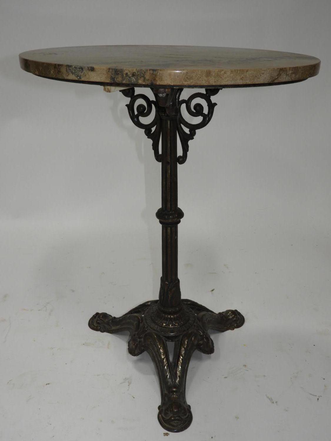 french cast iron marble top bistro table, early 20th century with later top, 27 3/4" x 21"