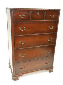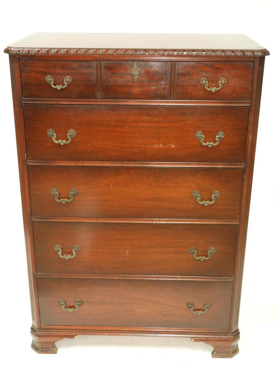 chippendale style mahogany finish highboy chest of drawers, c.1920, 50" x 35" x 19 1/2"