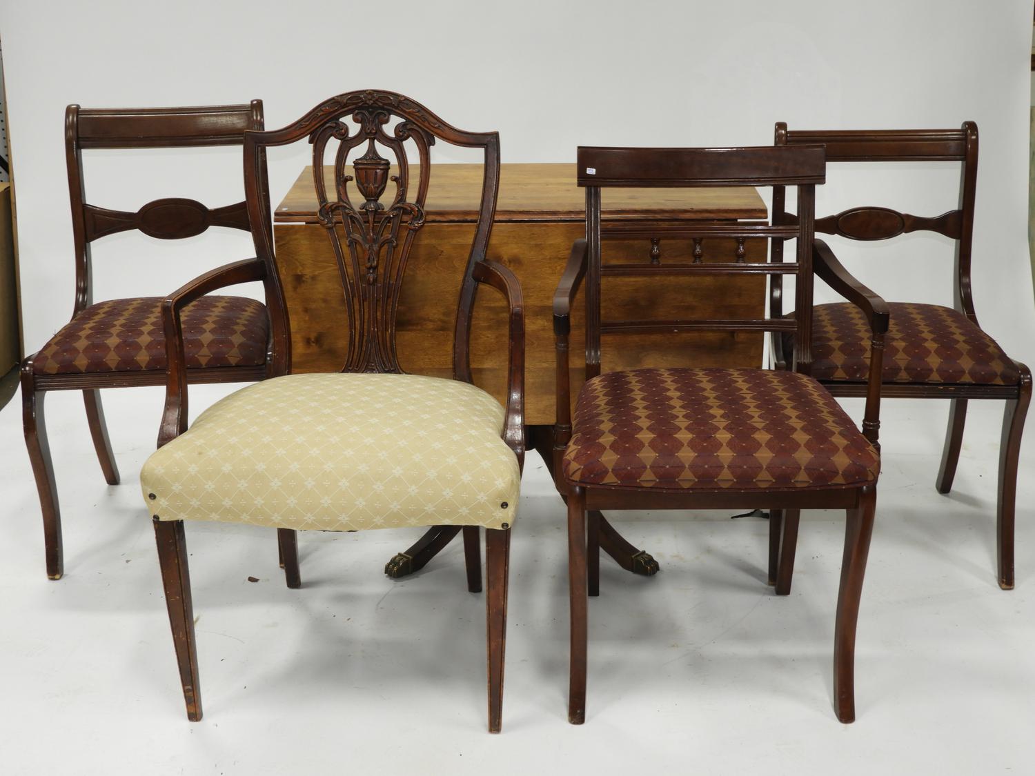 duncan phyfe drop leaf pedestal dining table and four chairs