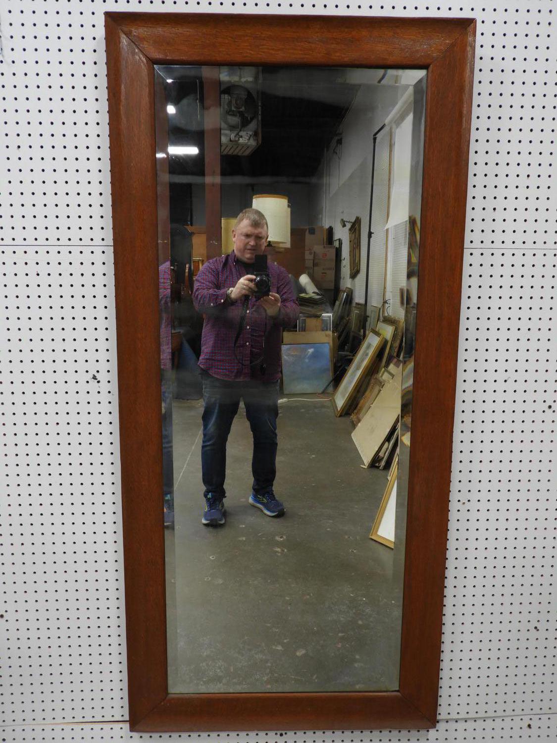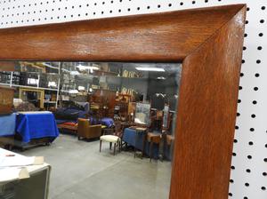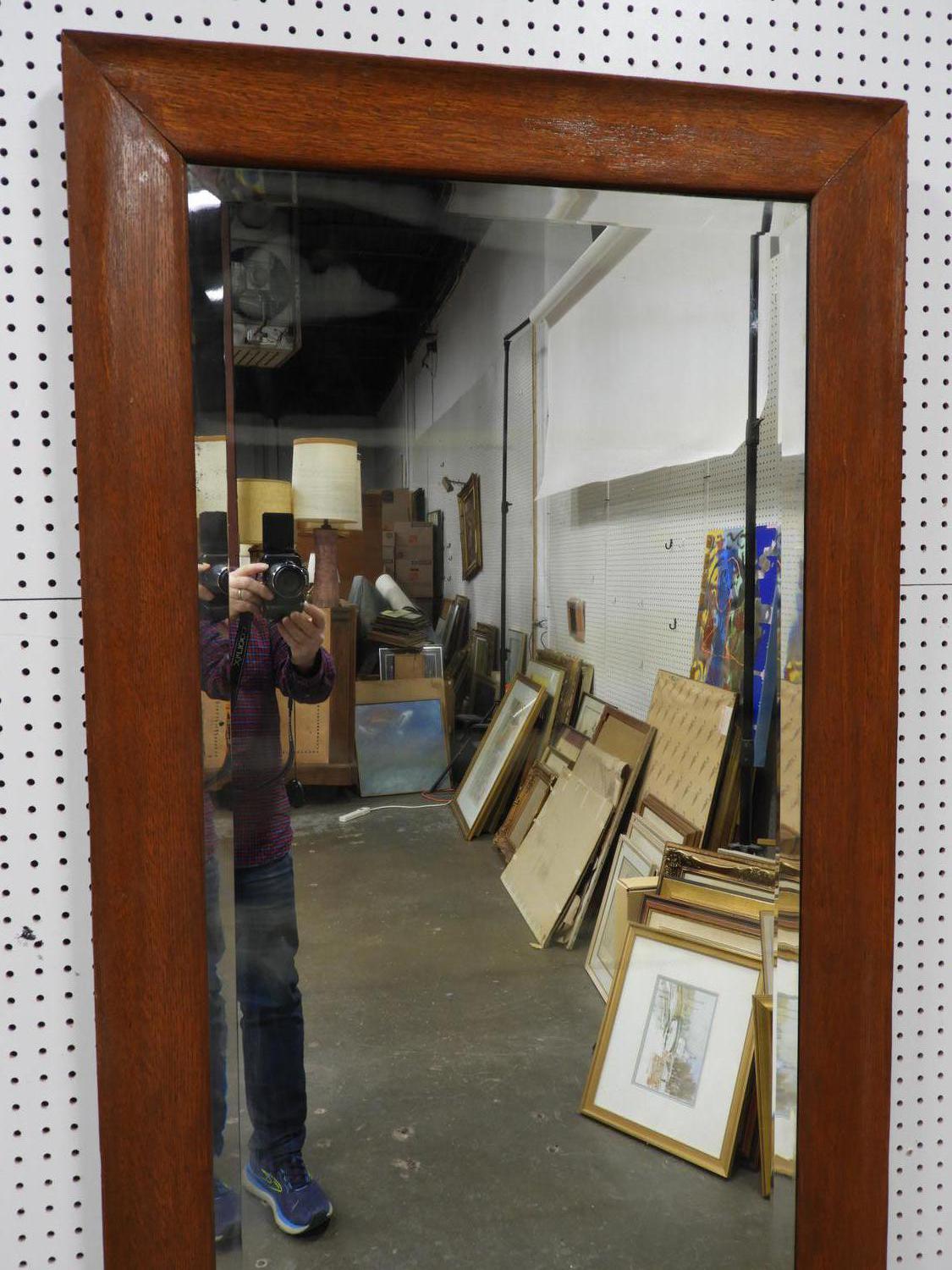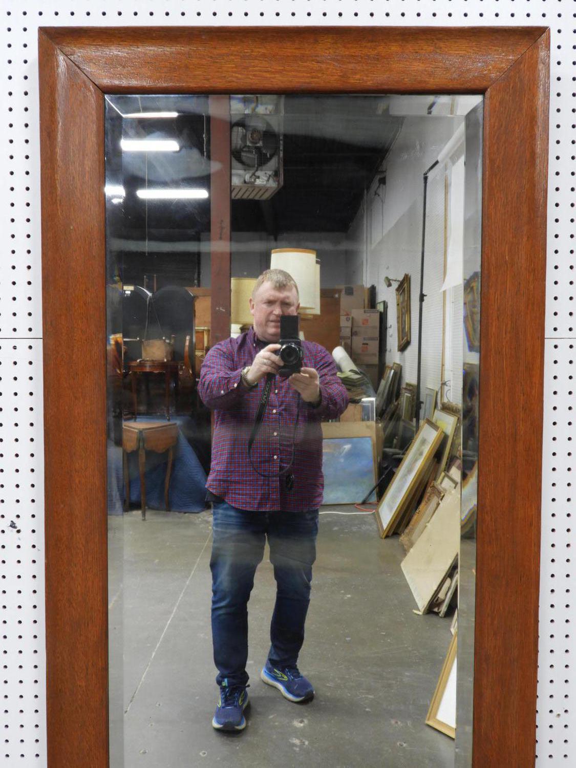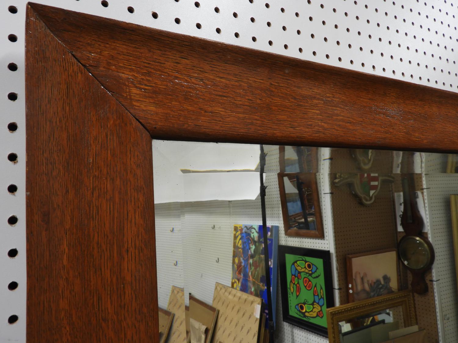 large oak framed bevelled glass mirror, early 20th century, 67 1/2" x 31 1/2"