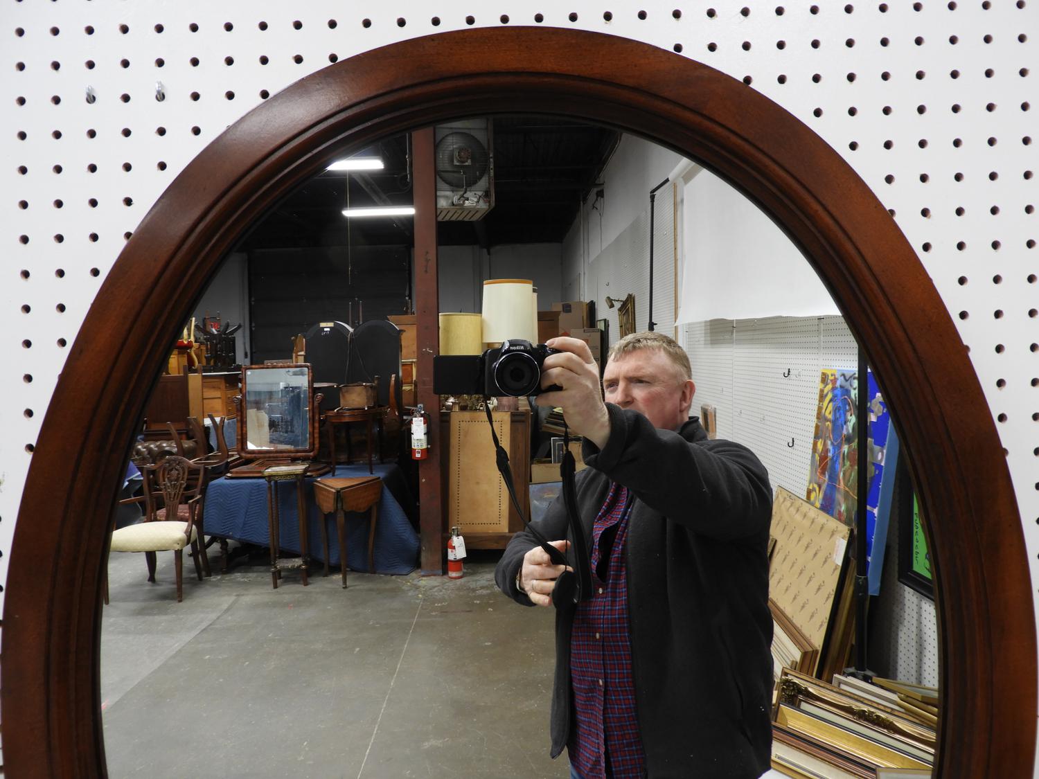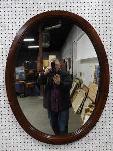 cherry finish oval mirror, late 20th century, 35" x 27 1/4"