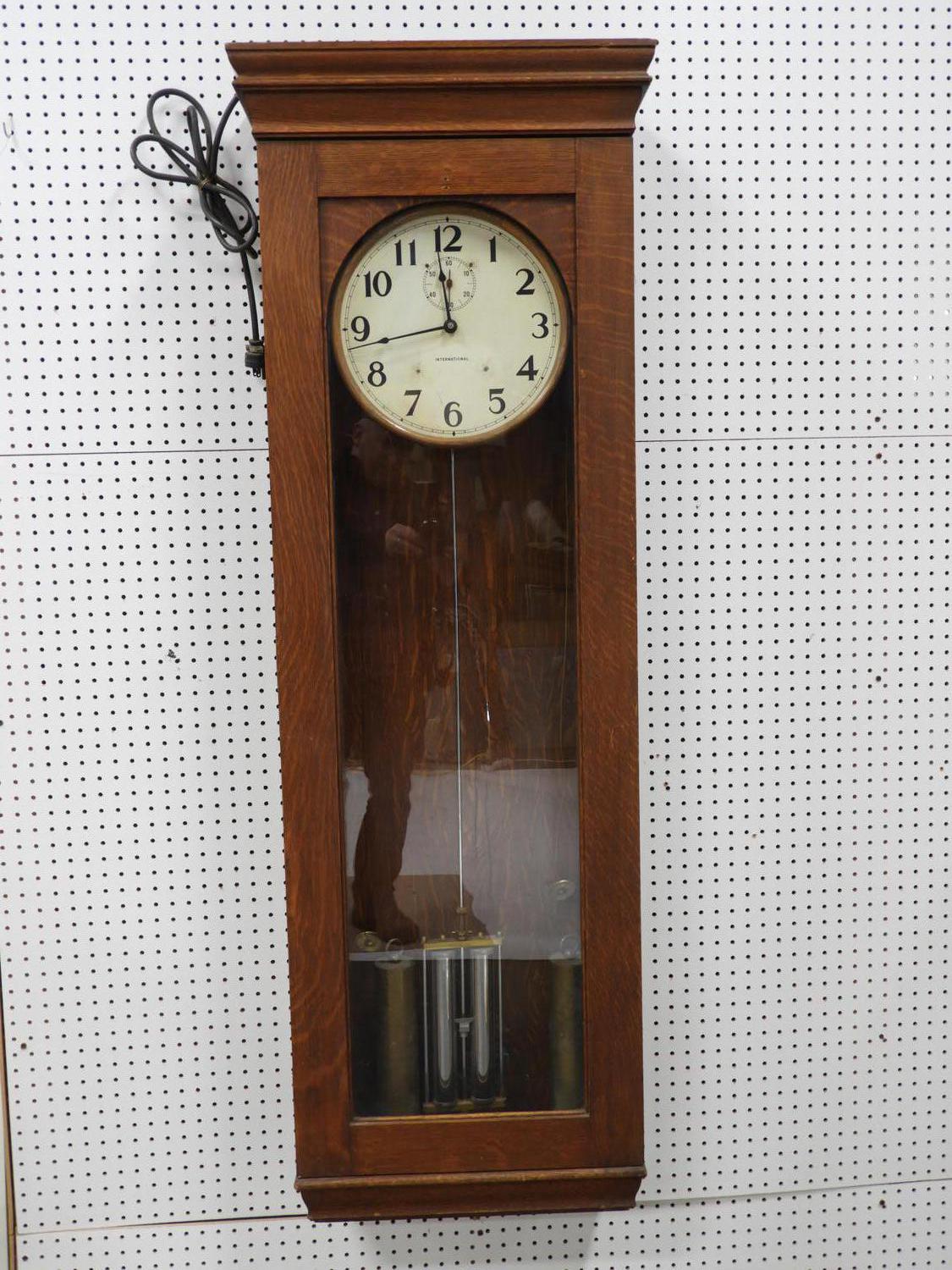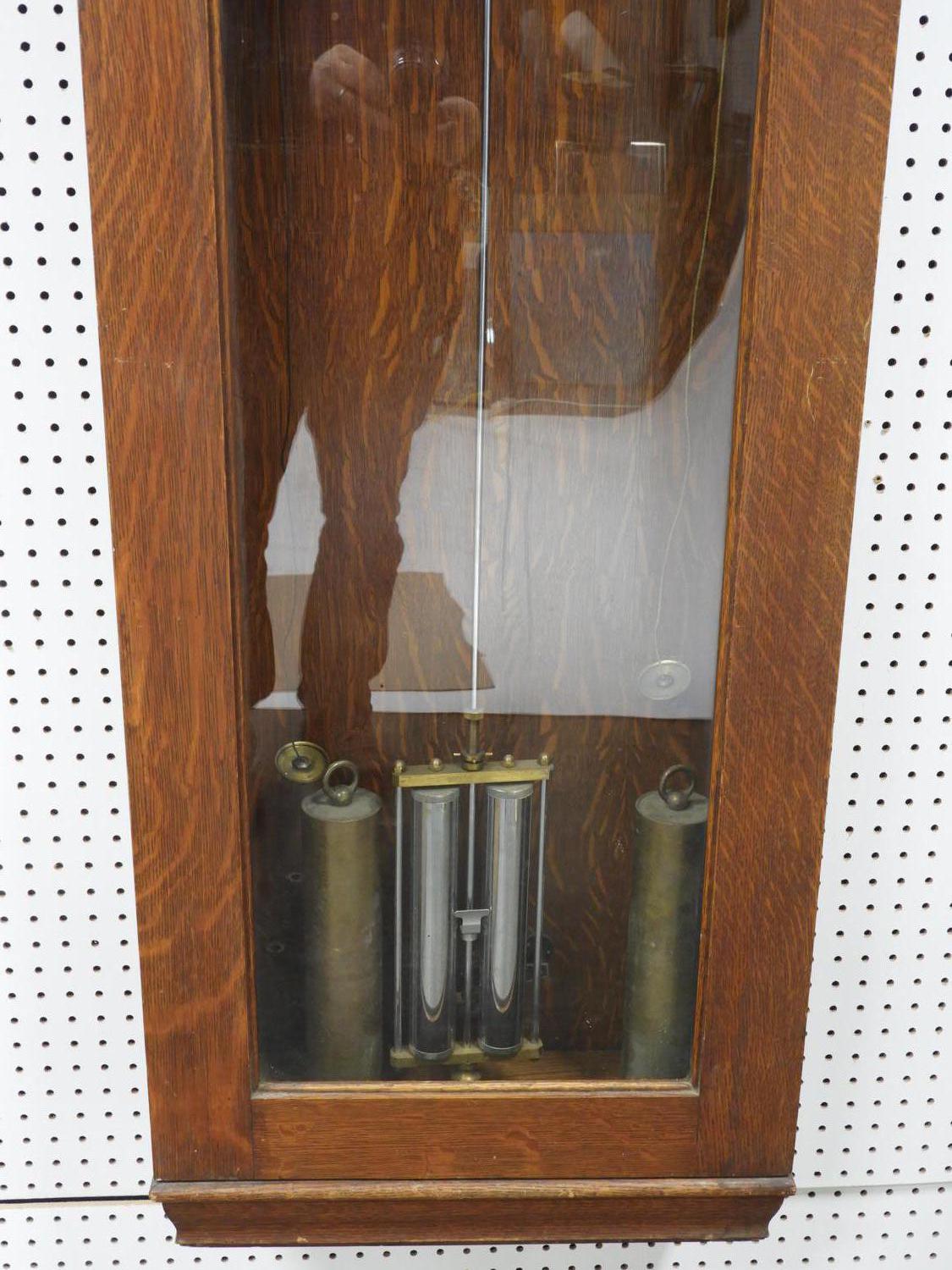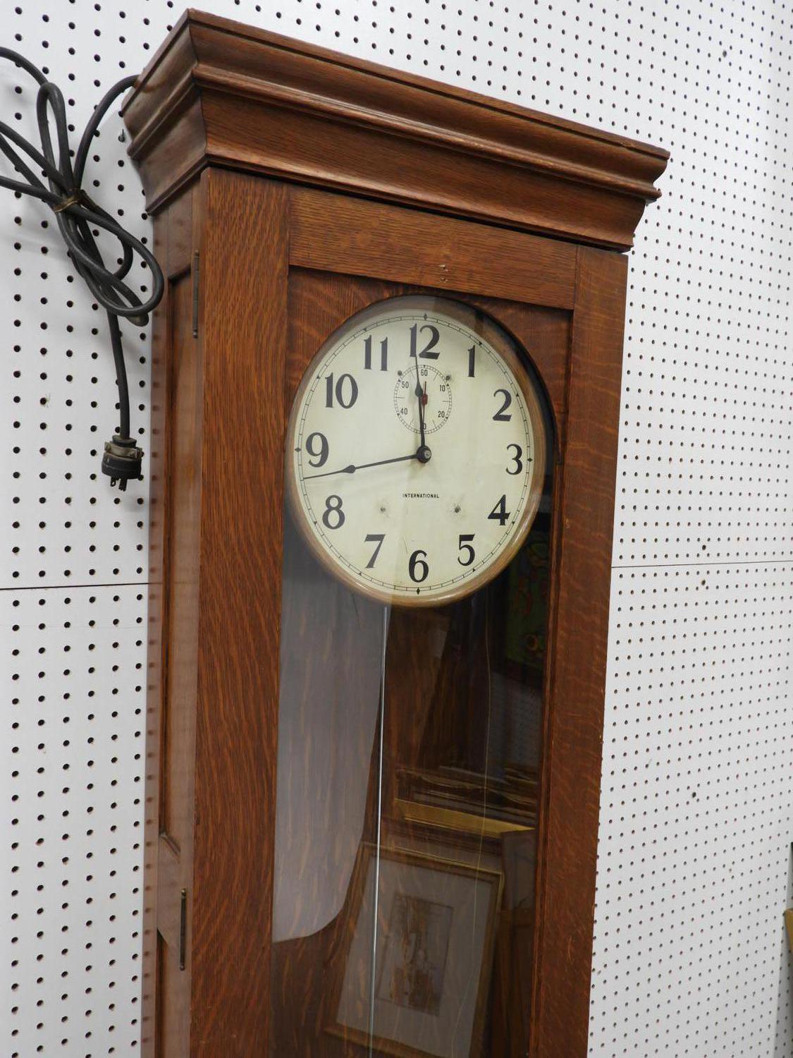 arts & crafts oak cased international business machines master clock, early 20th century, 65" x 22" x 9"