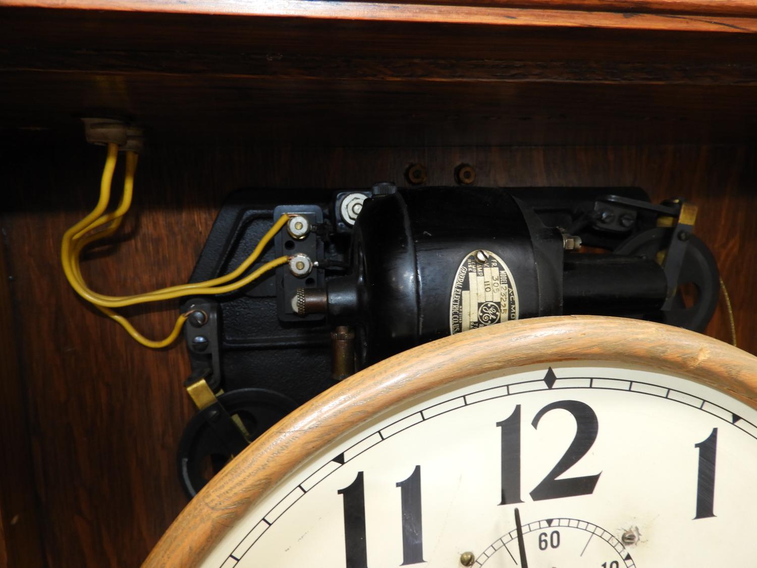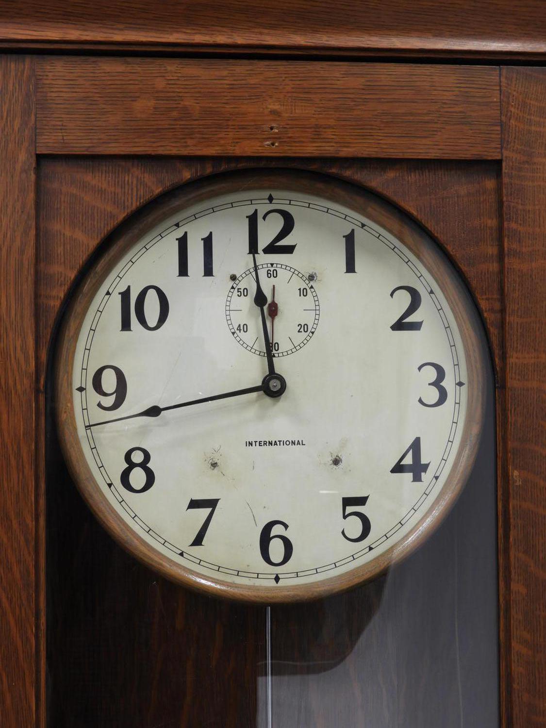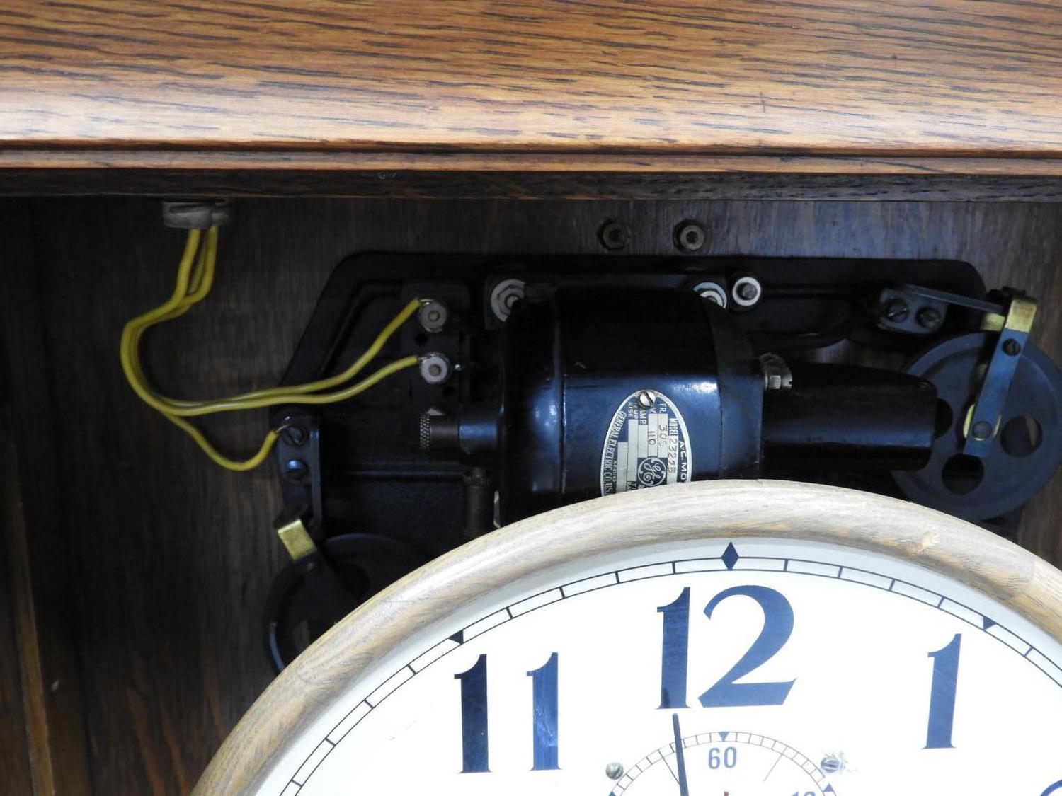 arts & crafts oak cased international business machines master clock, early 20th century, 65" x 22" x 9"