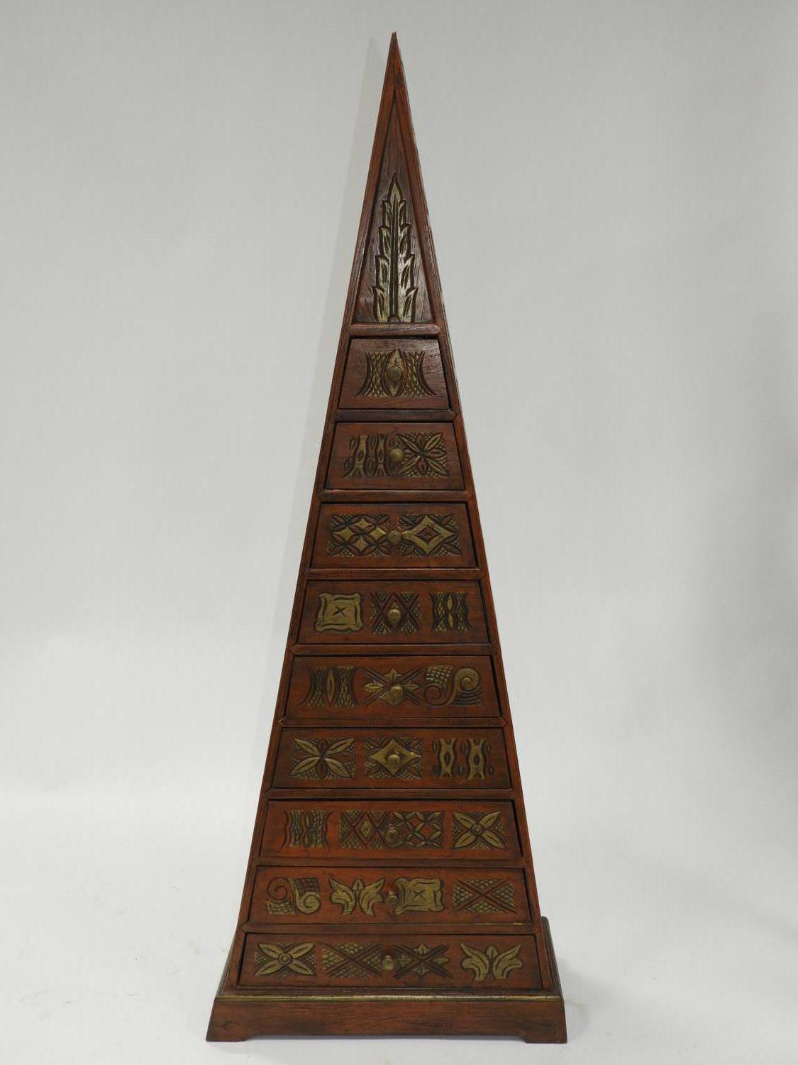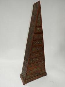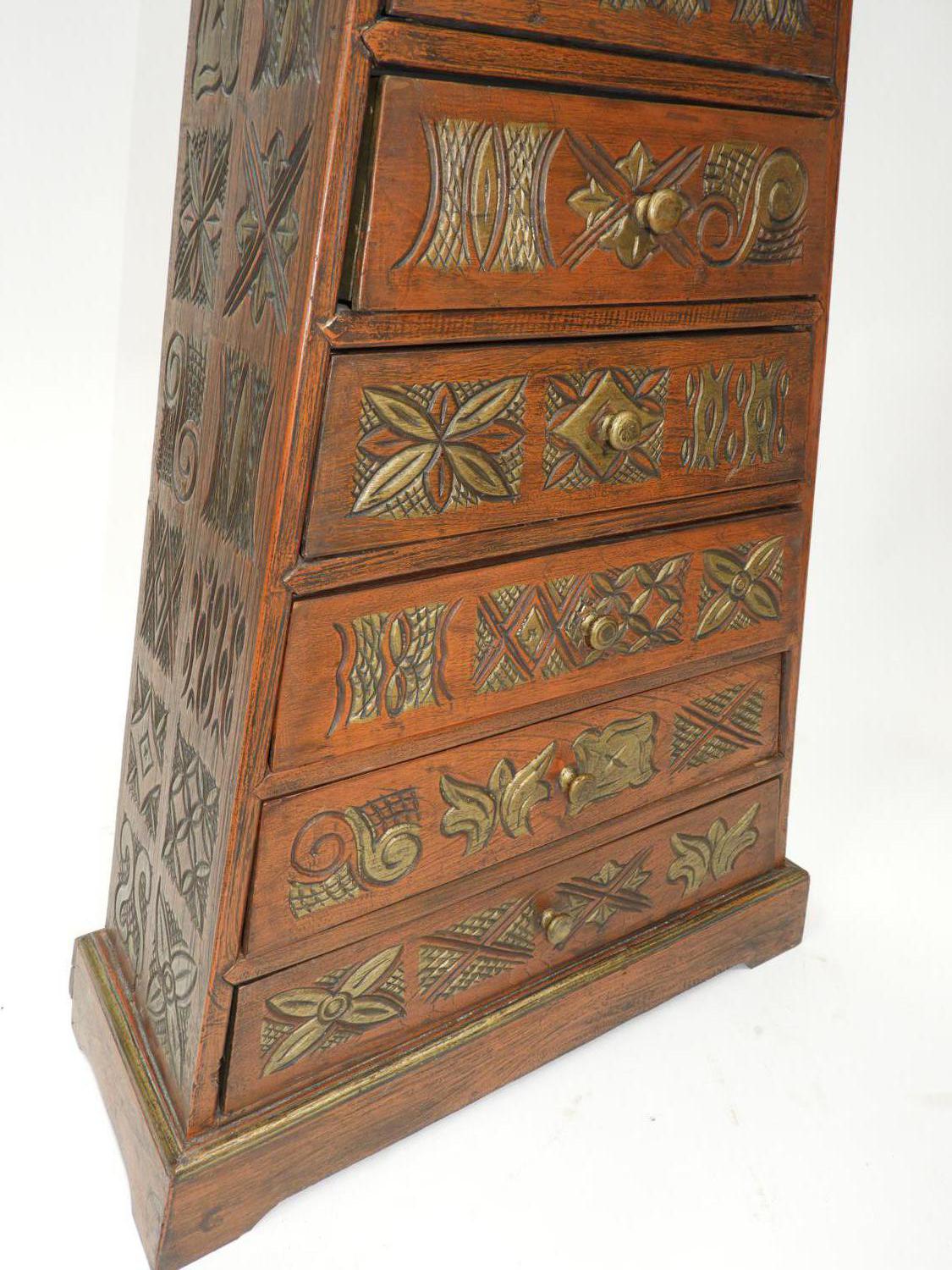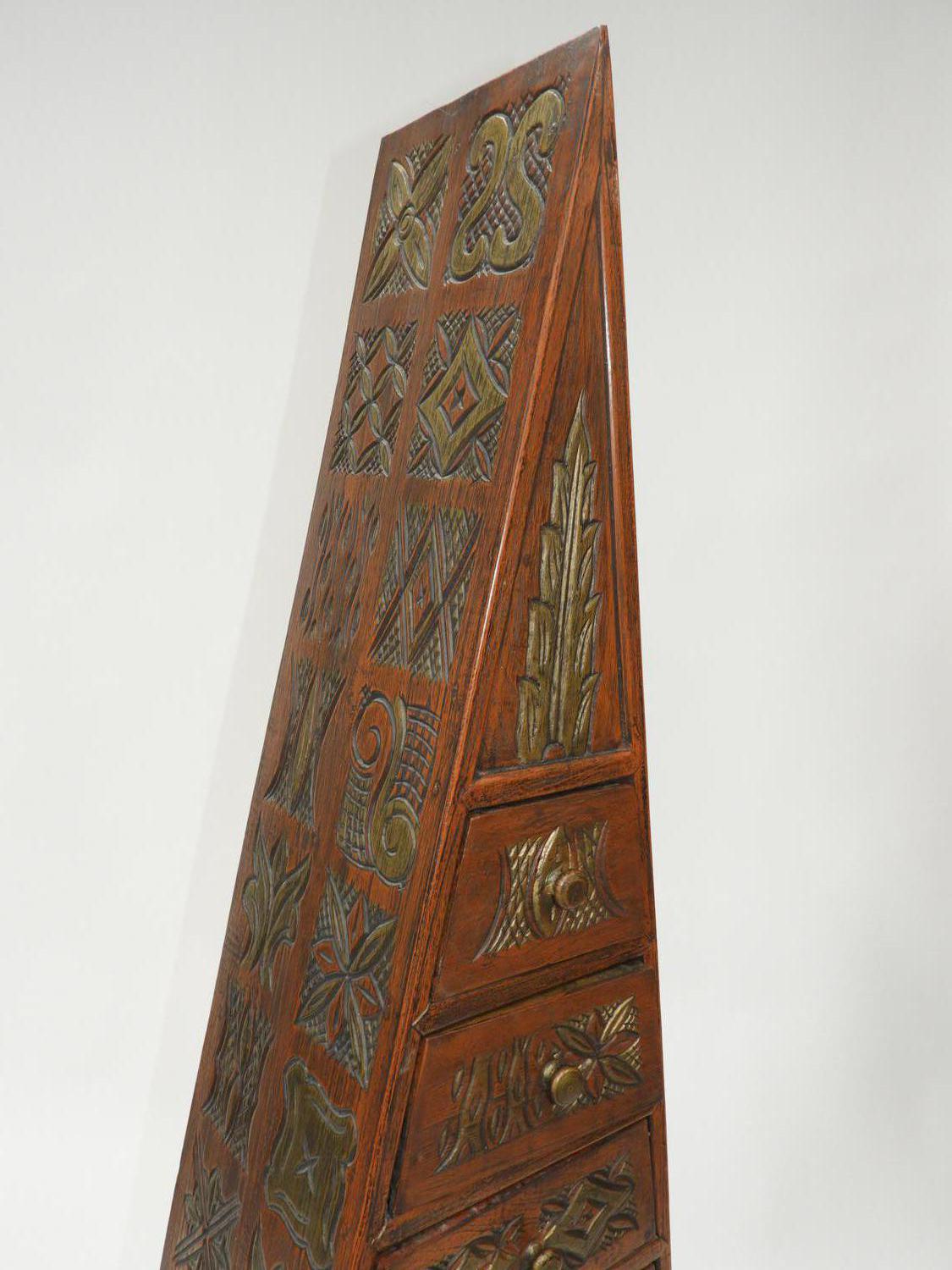 decorative parcel gilt carved triangular chest of drawers, asian, late 20th century, 66" x 26" x 11"
