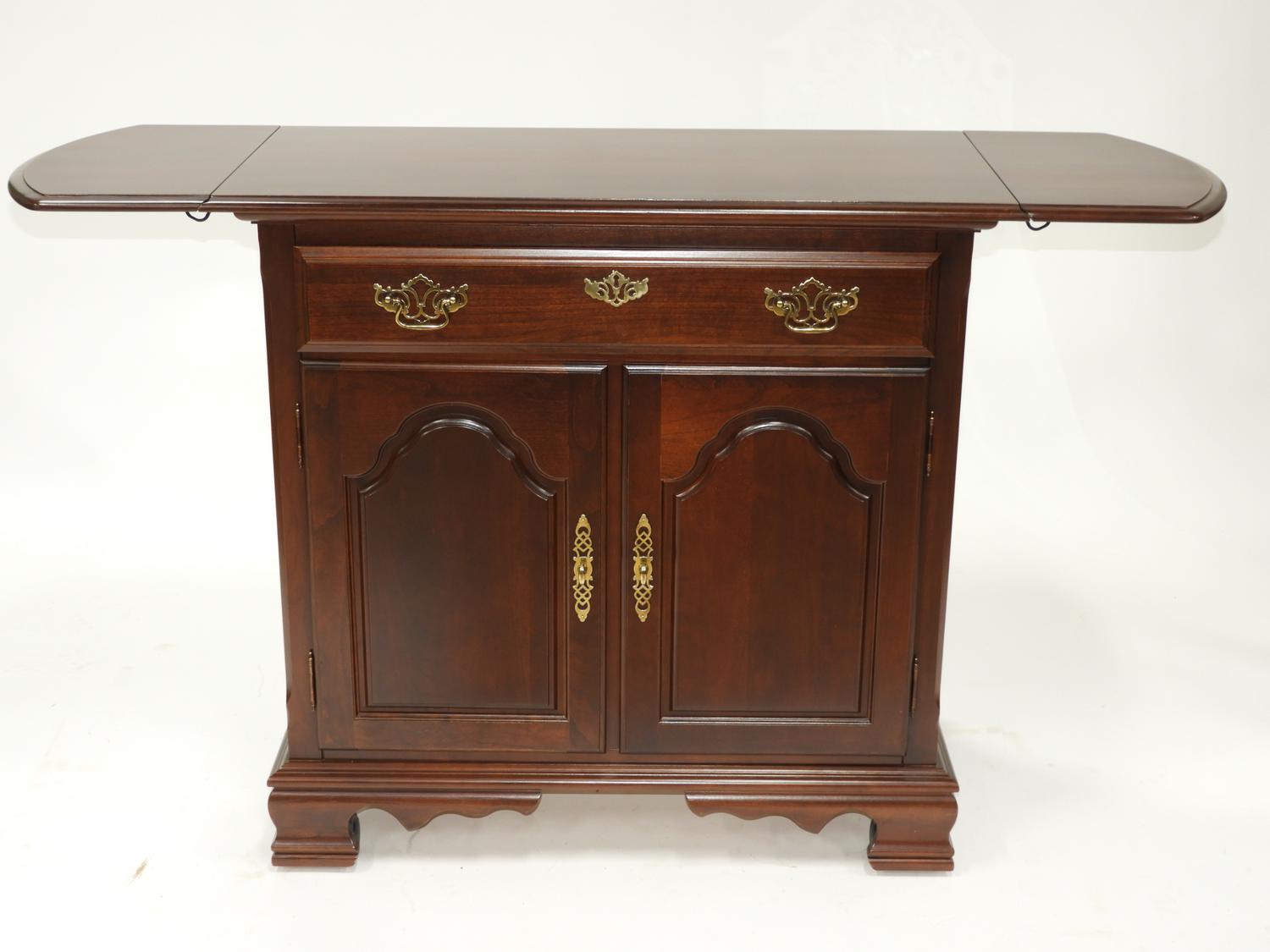mahogany finish drop leaf side cabinet server, by roxton, 35" x 57" x 19"