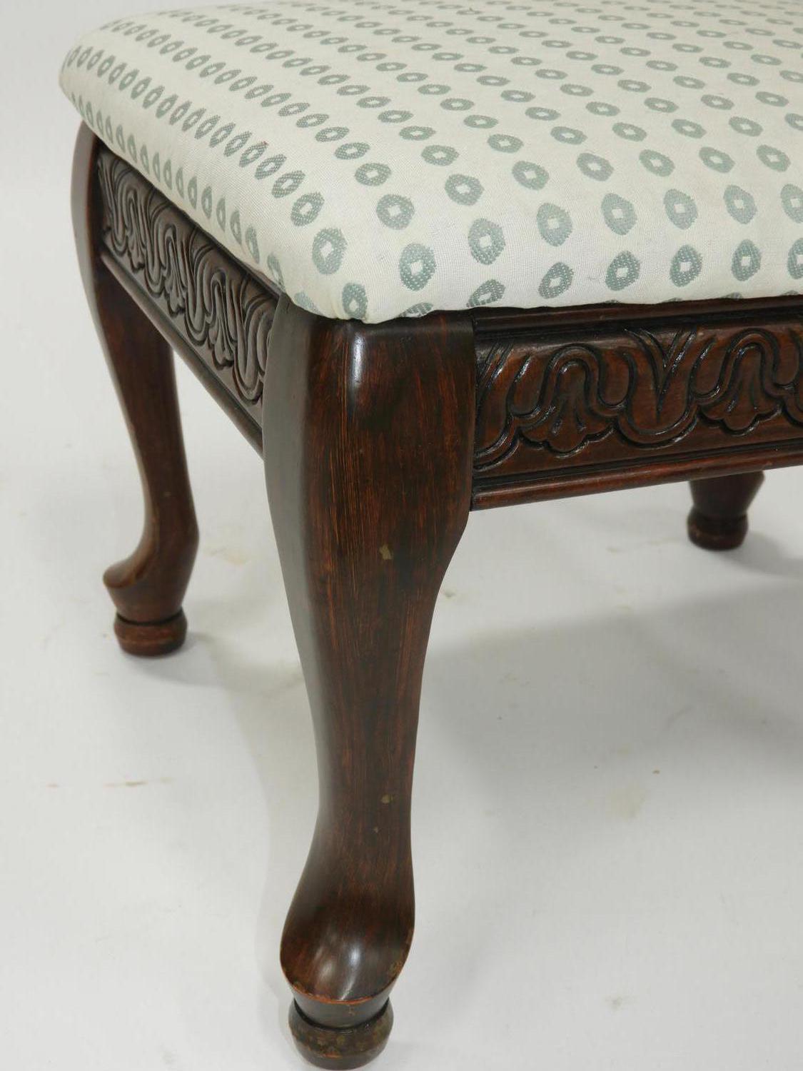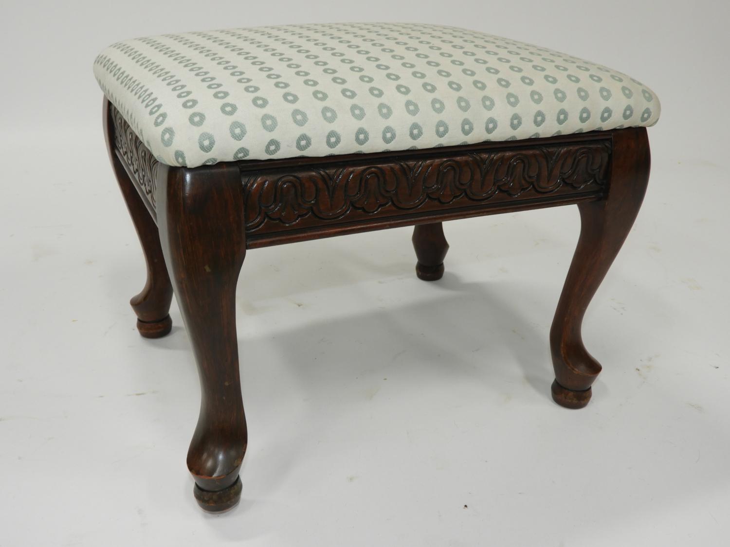 walnut finish upholstered footstool, late 20th century, 11" x 14" x 12"