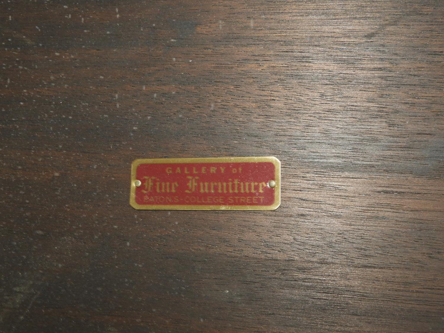 inlaid mahogany side table, eaton's fine furniture gallery, college st., mid 20th century