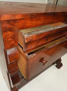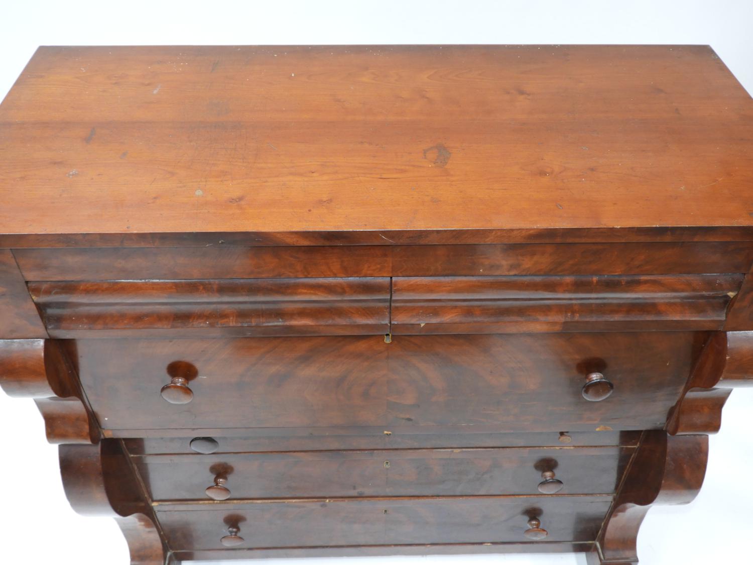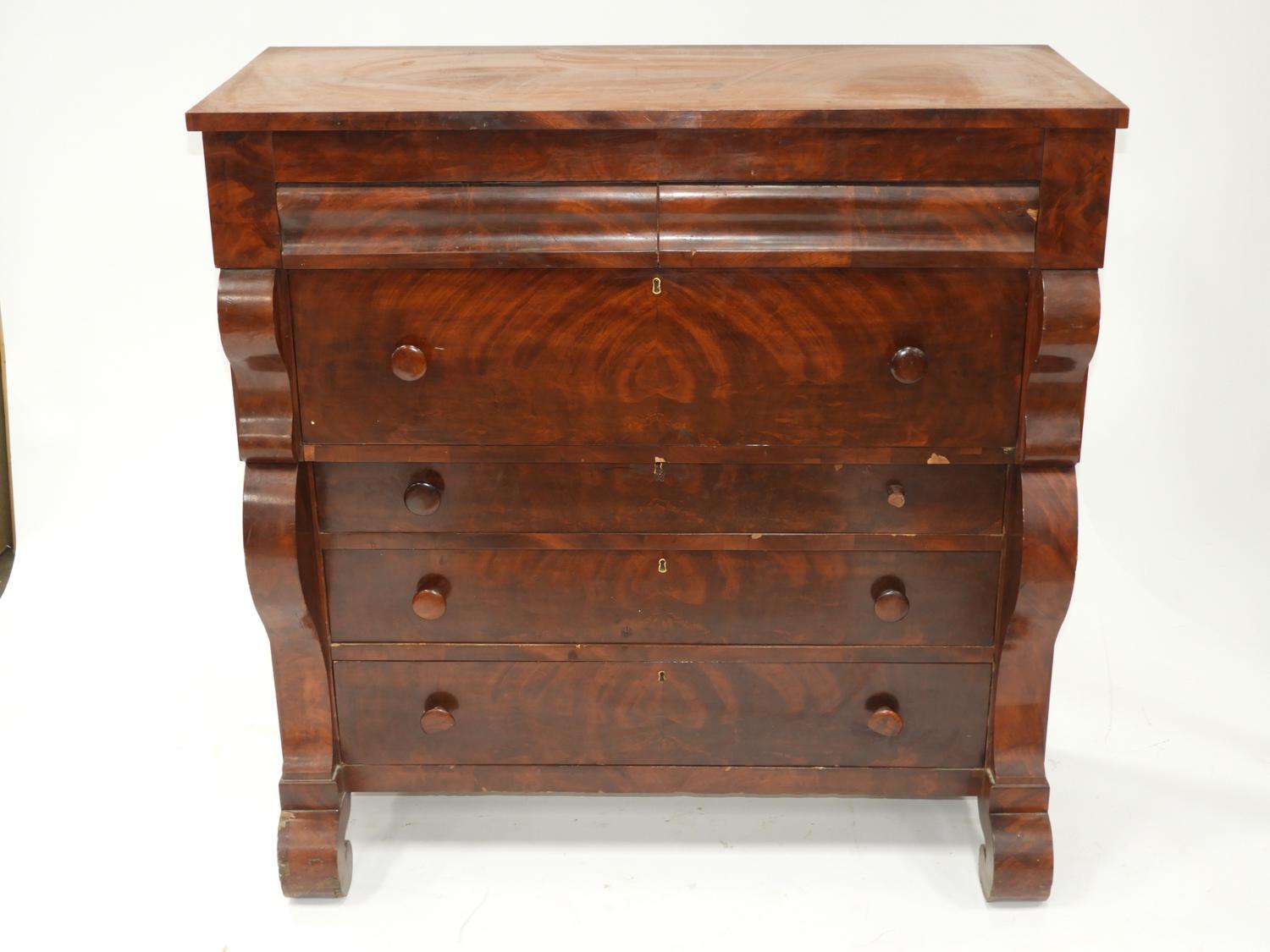 19th century canadian flame mahogany chest of drawers, 47 1/2" x 46" x 21 1/4"