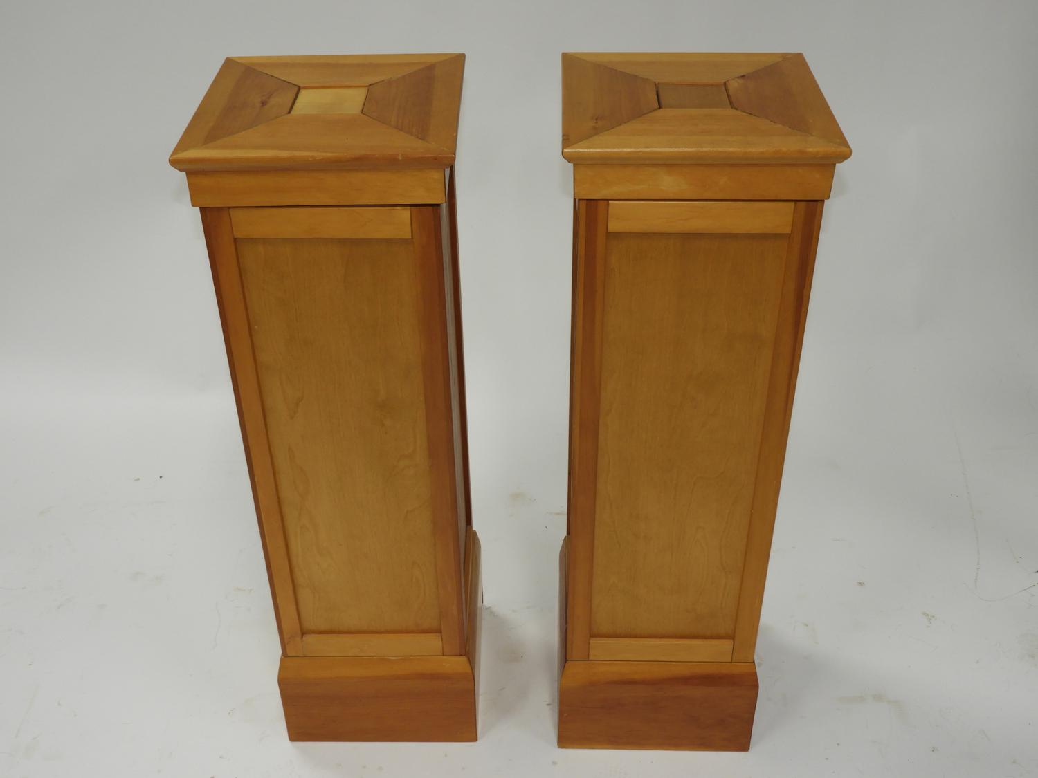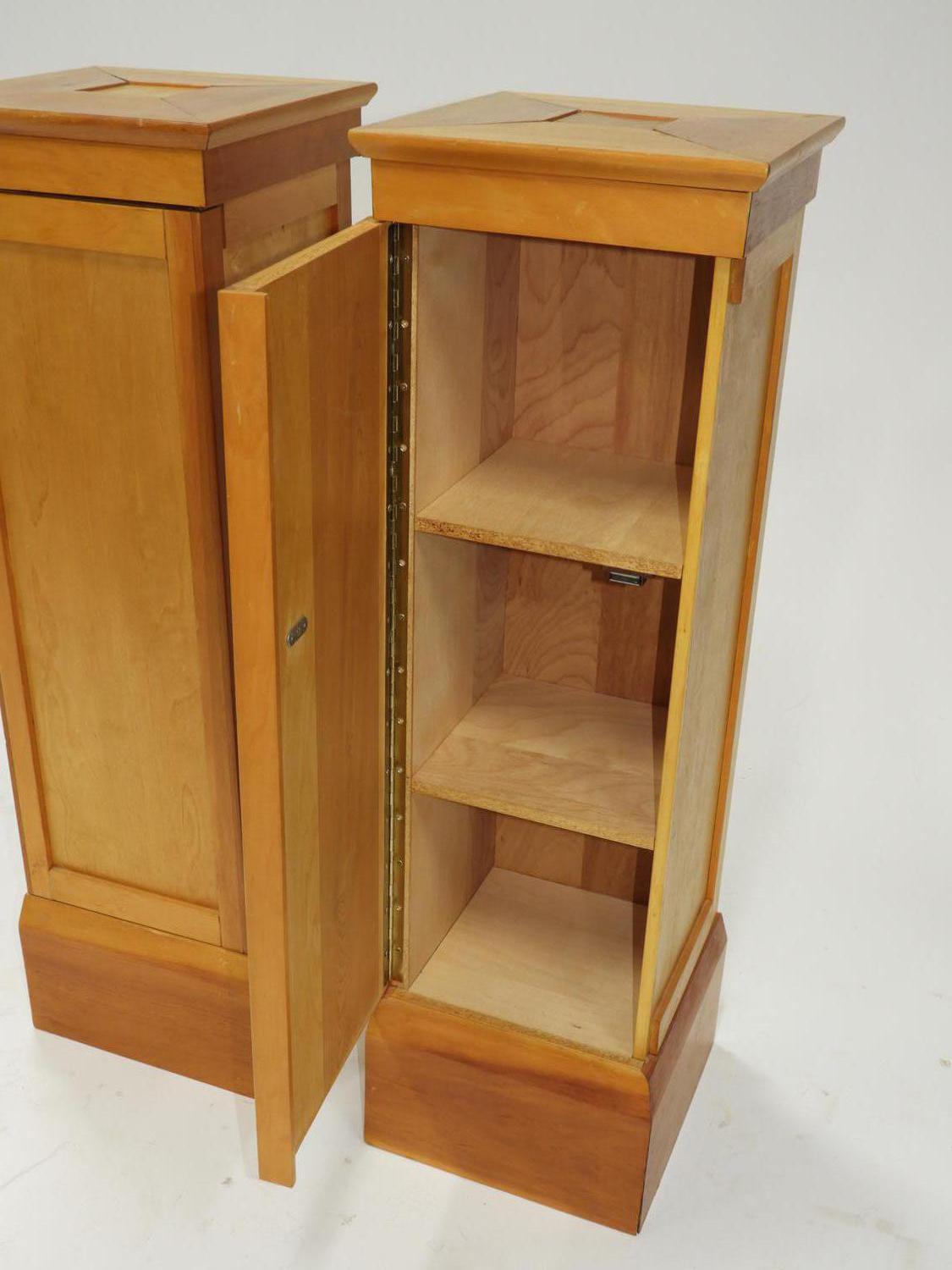 pair of maple finish pedestal cupboards, late 20th century, 39" x 12" x 12"