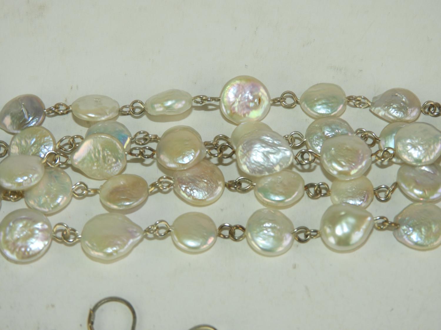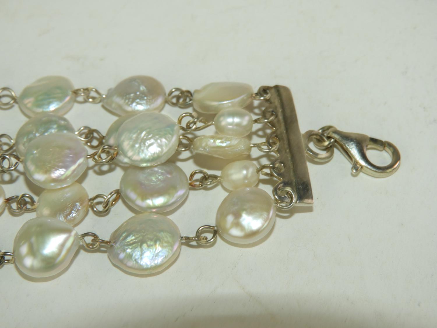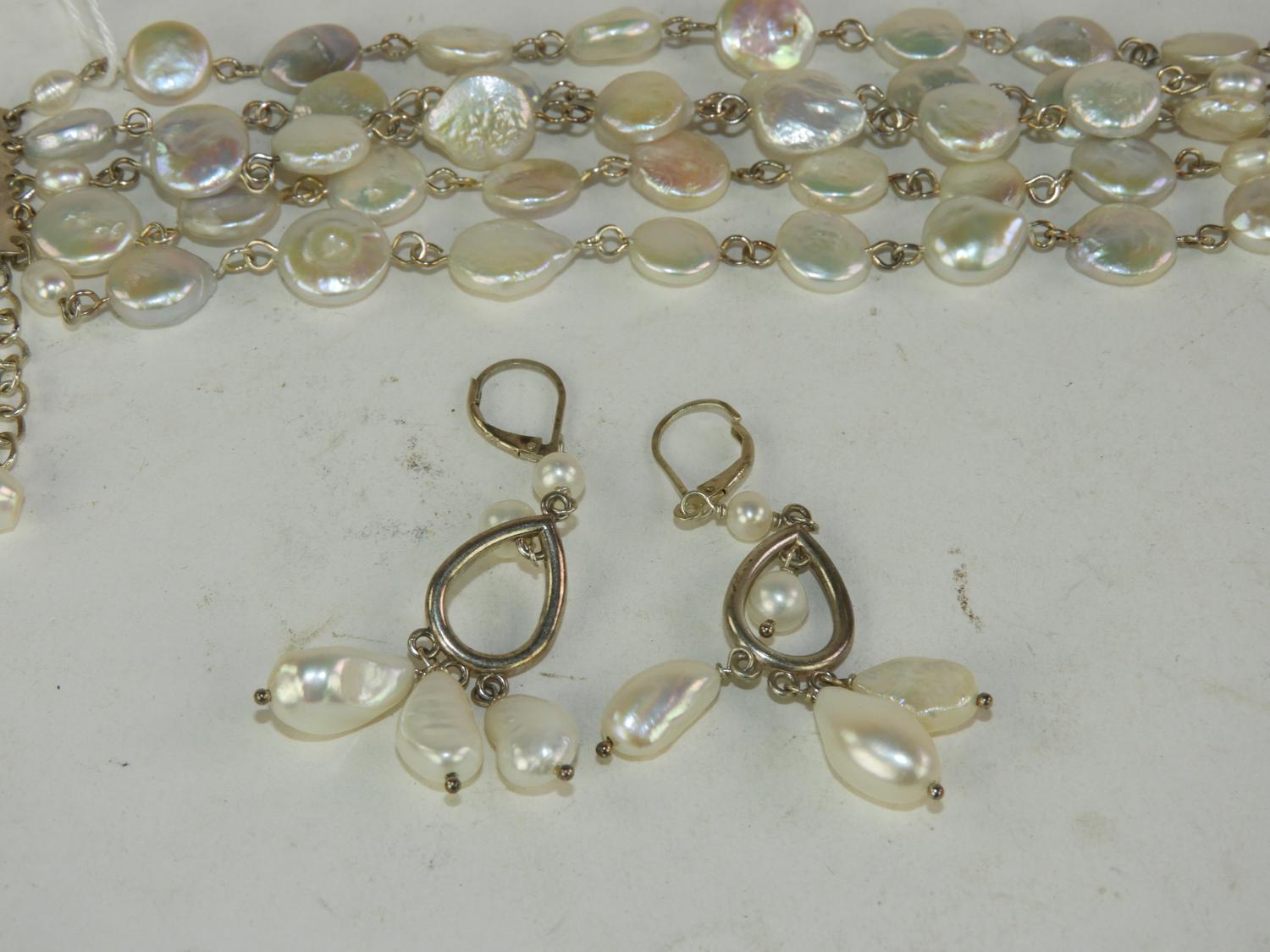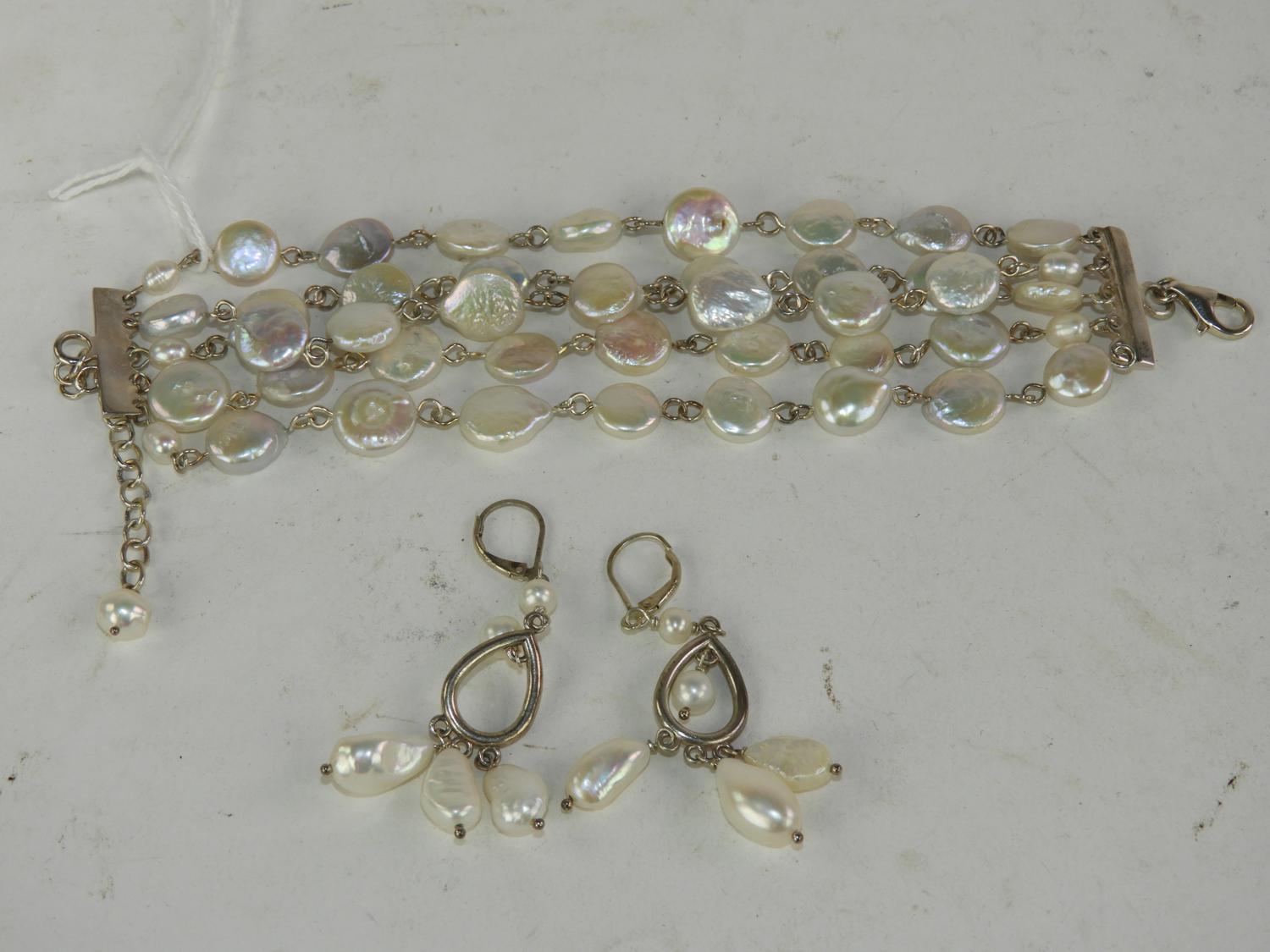 sterling silver and freshwater pearl bracelet and earrings