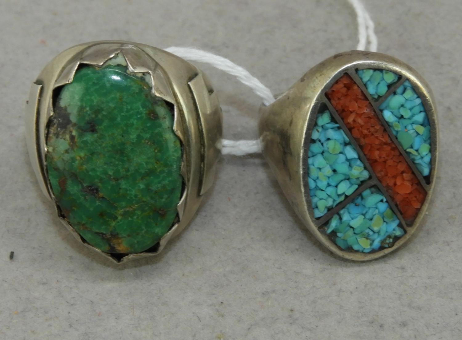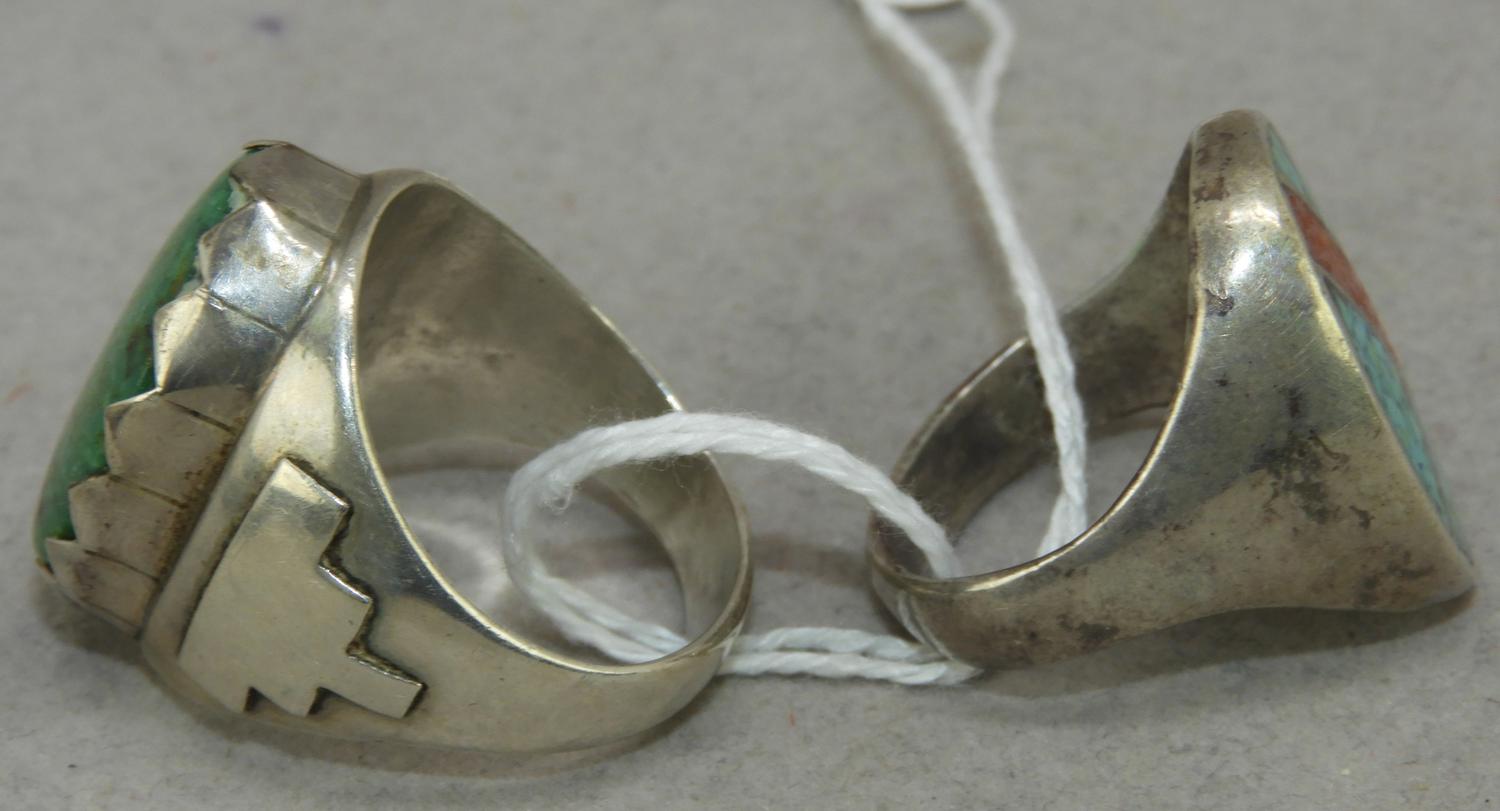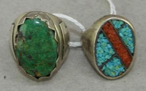 2 gents turquoise sterling rings, size 11 1/2 and 10